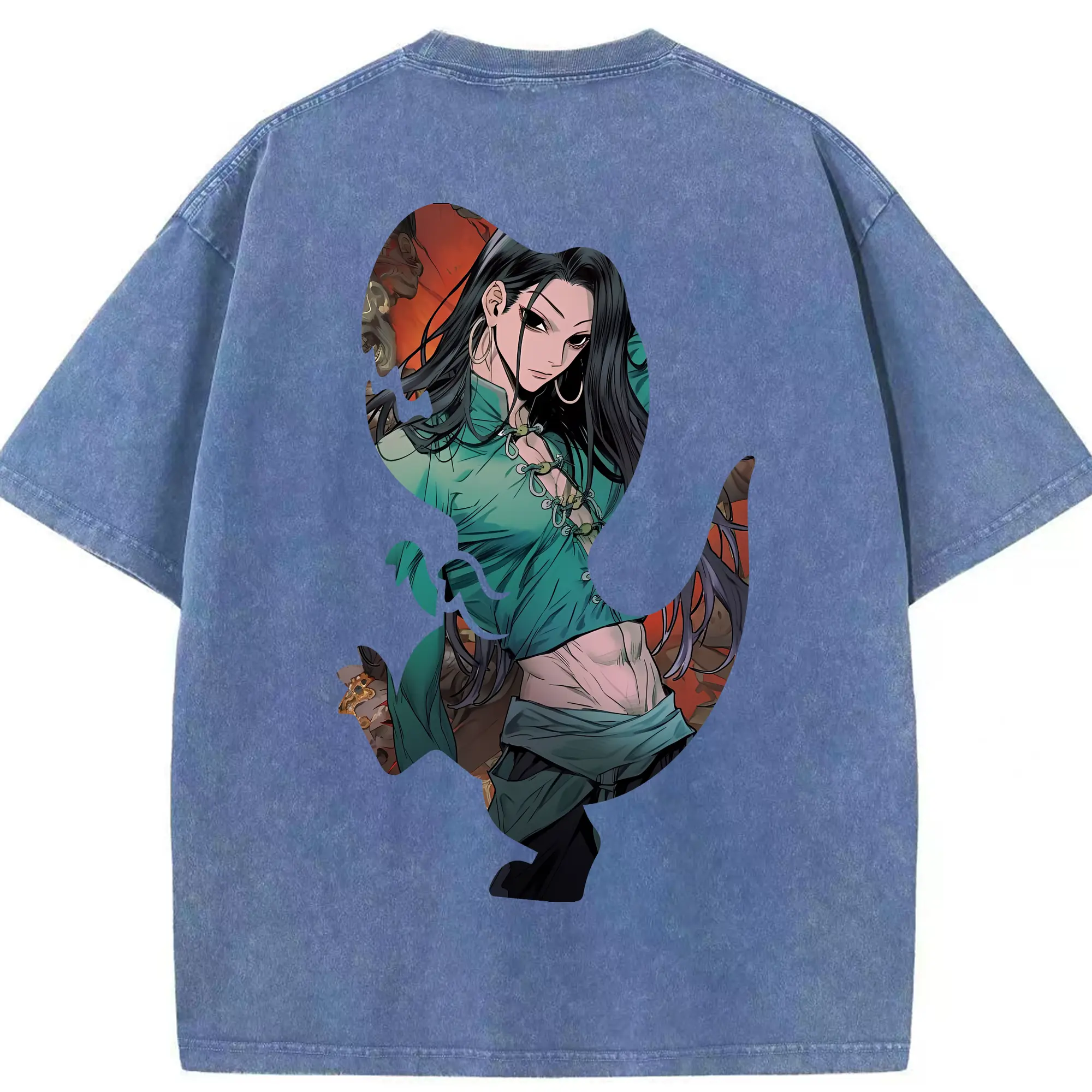 ハンター×ハンター グッズ イルミ=ゾルディック - 綿100% ヴィンテージ風 半袖Tシャツ ・ フロントプリント ・ 柔らか肌触り ・ 通気性 快適 ・ スポーツ カジュアル 外出用