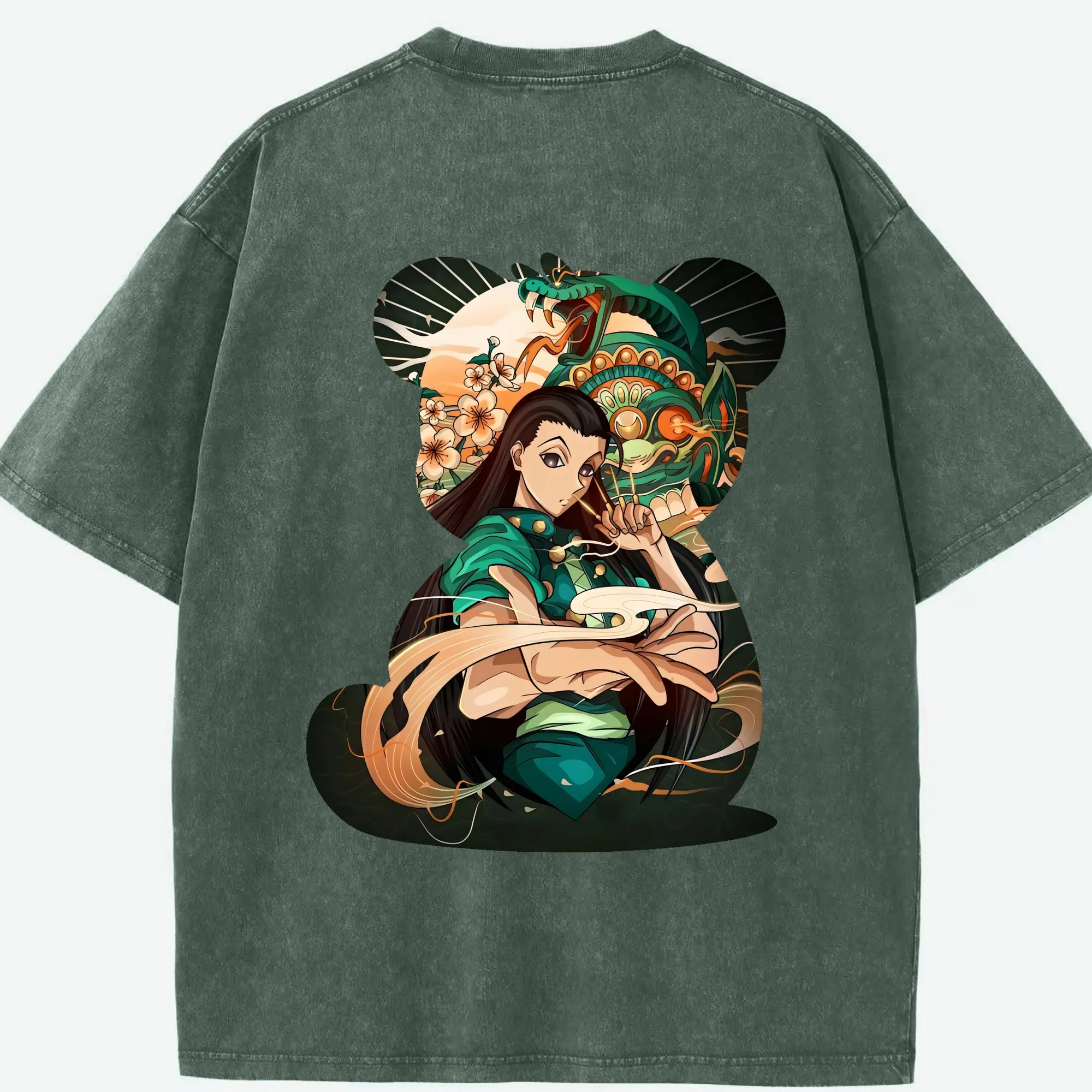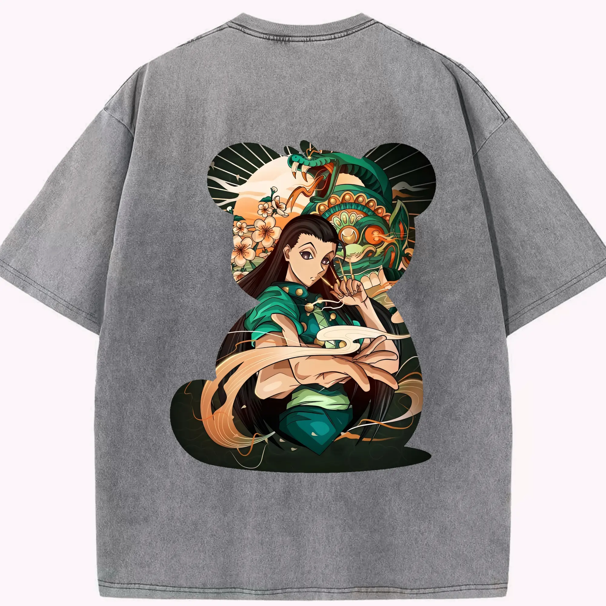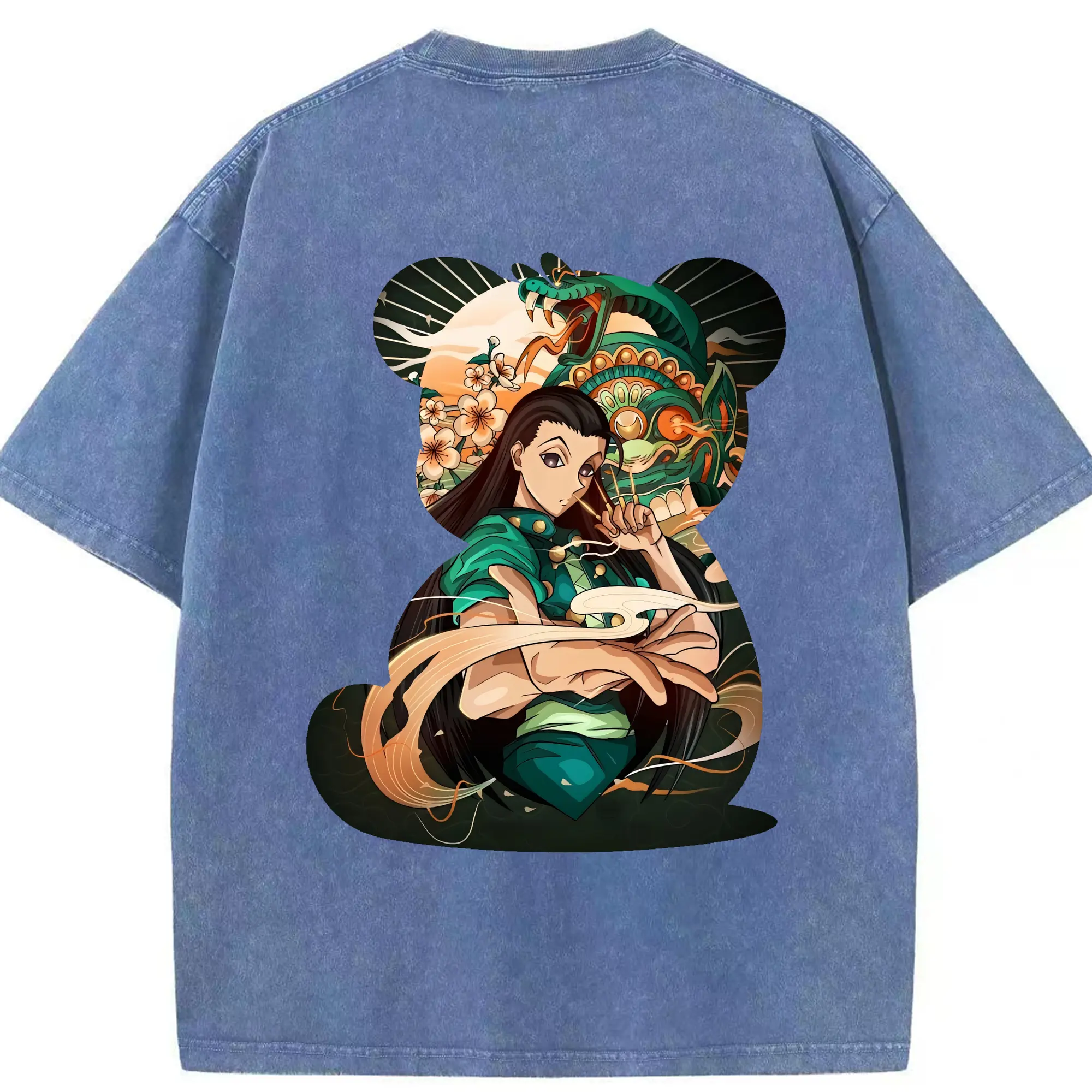 ハンター×ハンター グッズ イルミ=ゾルディック - 綿100% ヴィンテージ風 半袖Tシャツ ・ フロントプリント ・ 柔らか肌触り ・ 通気性 快適 ・ スポーツ カジュアル 外出用