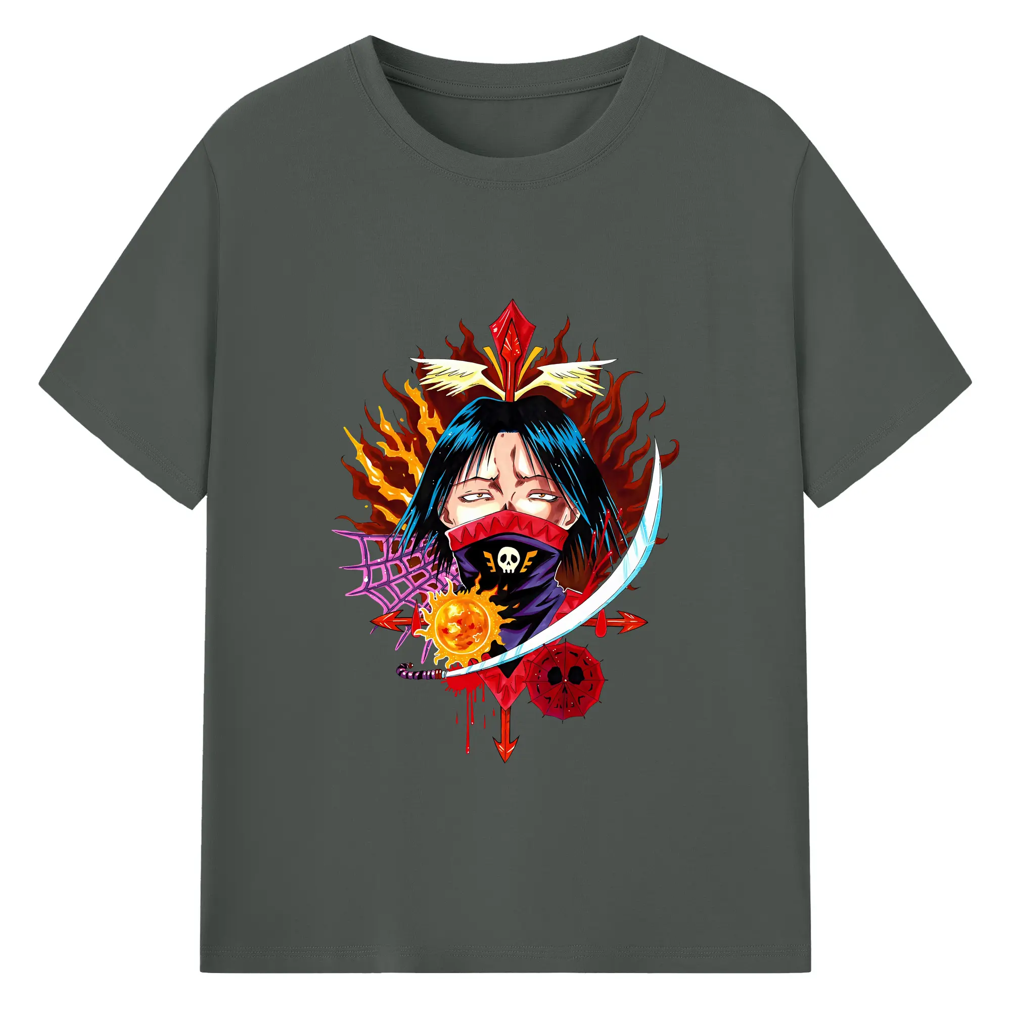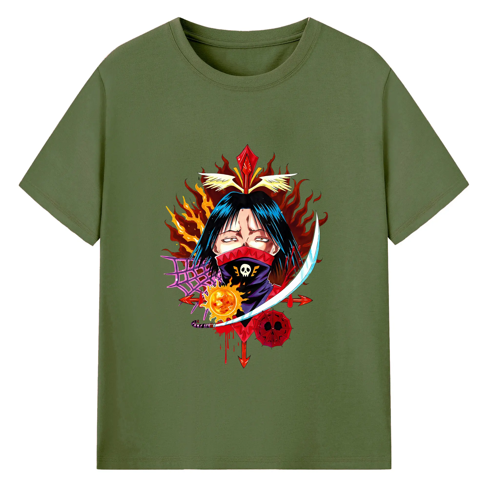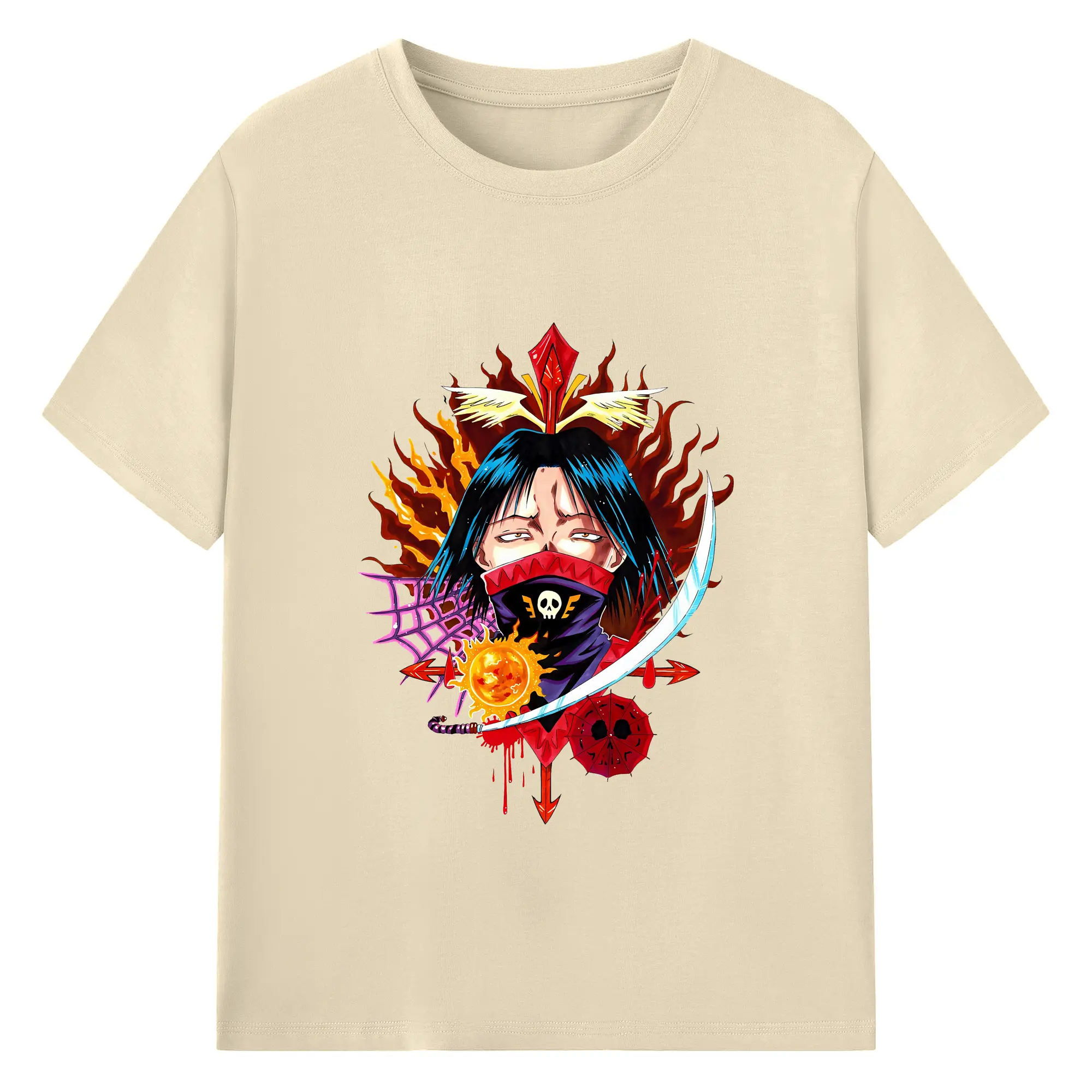 ハンター×ハンター グッズ フェイタン=ポートオ - 綿100% ヴィンテージ風 半袖Tシャツ ・ フロントプリント ・ 柔らか肌触り ・ 通気性 快適 ・ スポーツ カジュアル 外出用