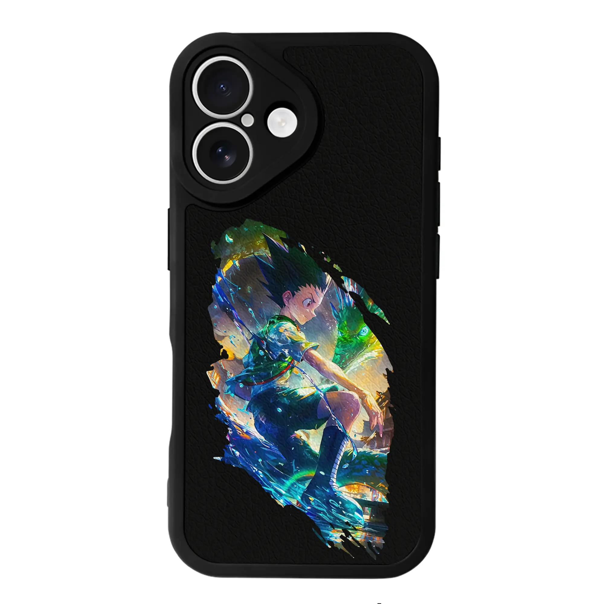 ハンター×ハンター グッズ ゴン=フリークス - IPhone 16シリーズ対応 ・ シリコンスマホケース ・ レザー調 ・ 高精度フィット ・ 耐衝撃 ・ ワイヤレス充電対応 ・ 精密カット