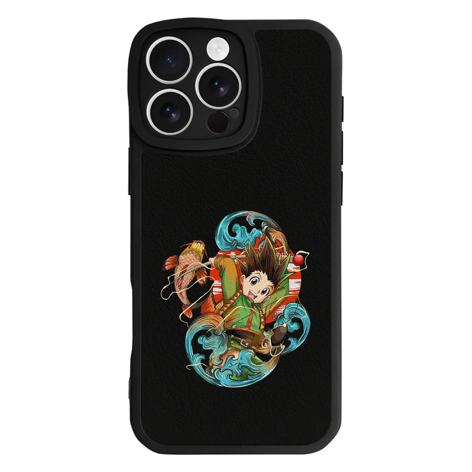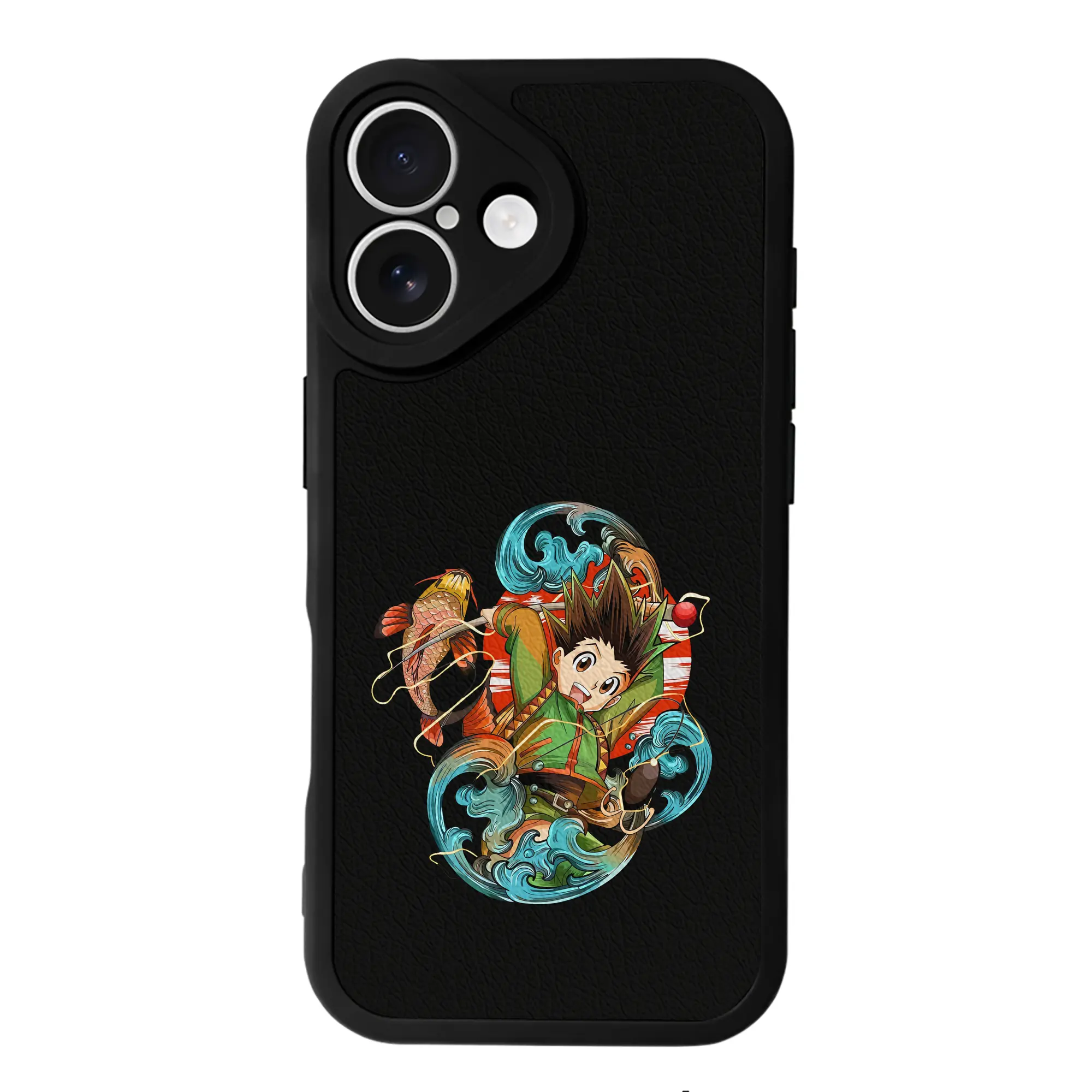 ハンター×ハンター グッズ ゴン=フリークス - IPhone 16シリーズ対応 ・ シリコンスマホケース ・ レザー調 ・ 高精度フィット ・ 耐衝撃 ・ ワイヤレス充電対応 ・ 精密カット