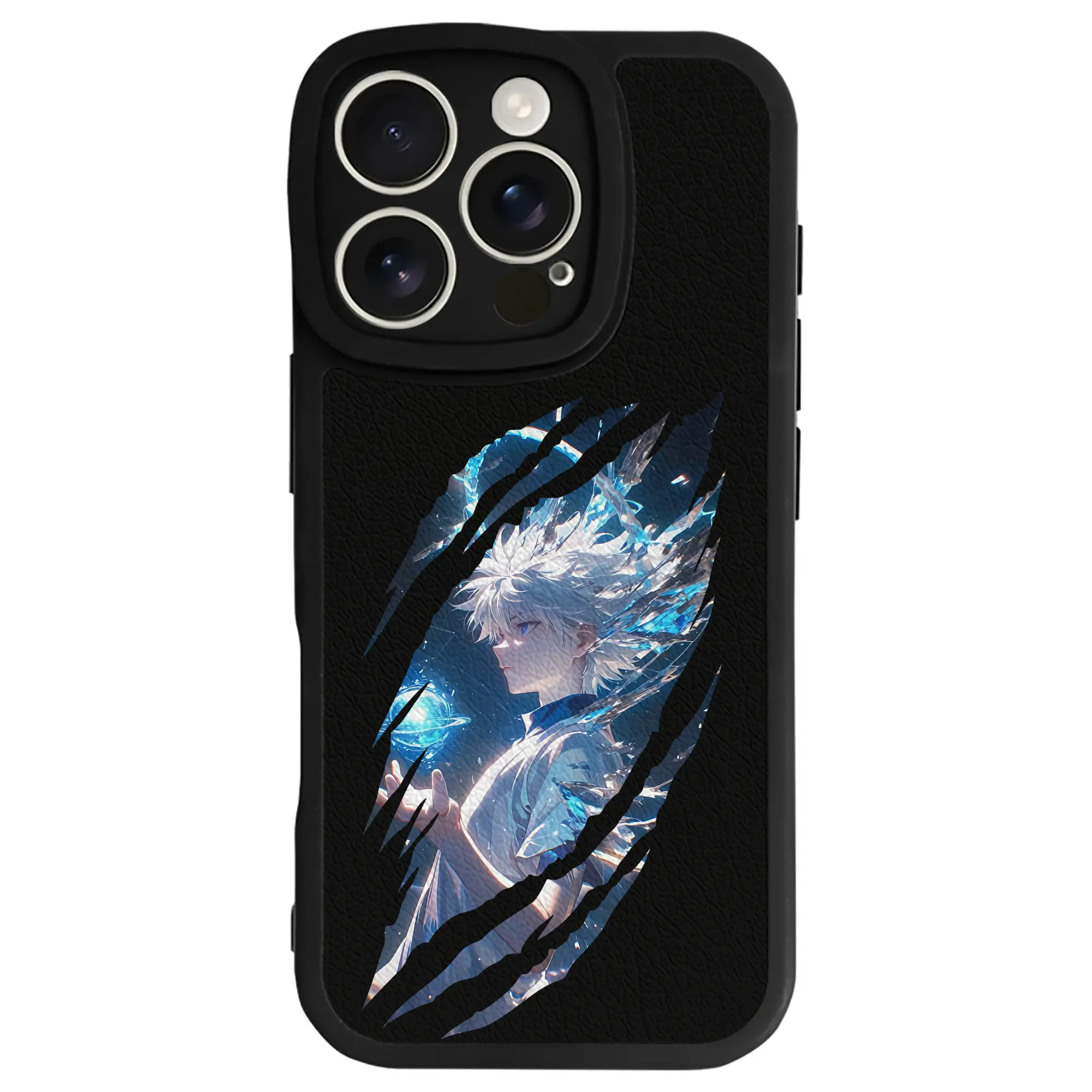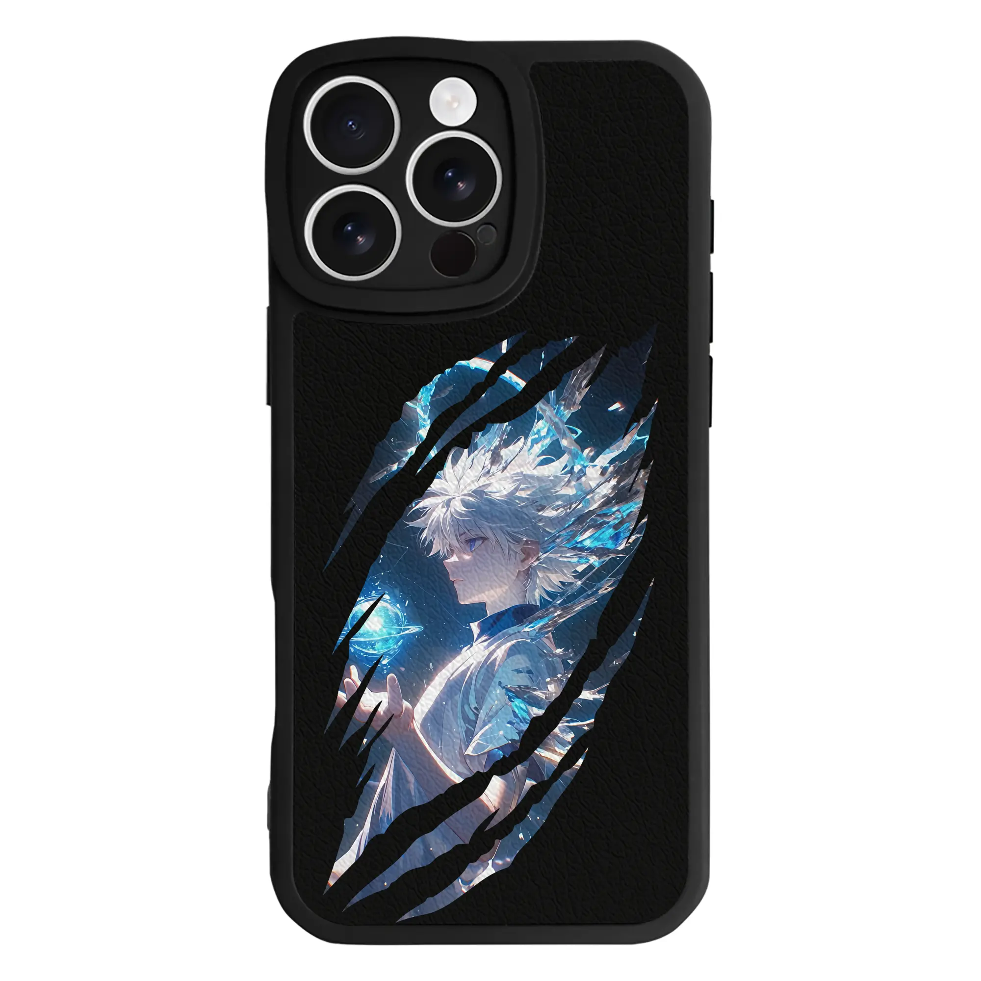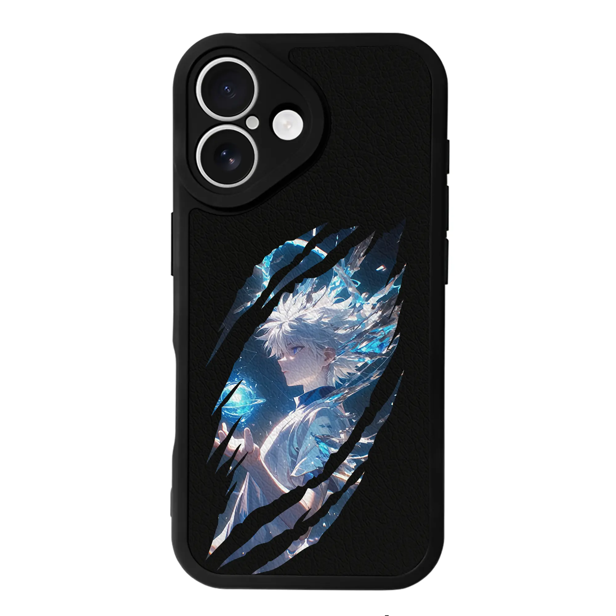 ハンター×ハンター グッズ キルア=ゾルディック - IPhone 16シリーズ対応 ・ シリコンスマホケース ・ レザー調 ・ 高精度フィット ・ 耐衝撃 ・ ワイヤレス充電対応 ・ 精密カット
