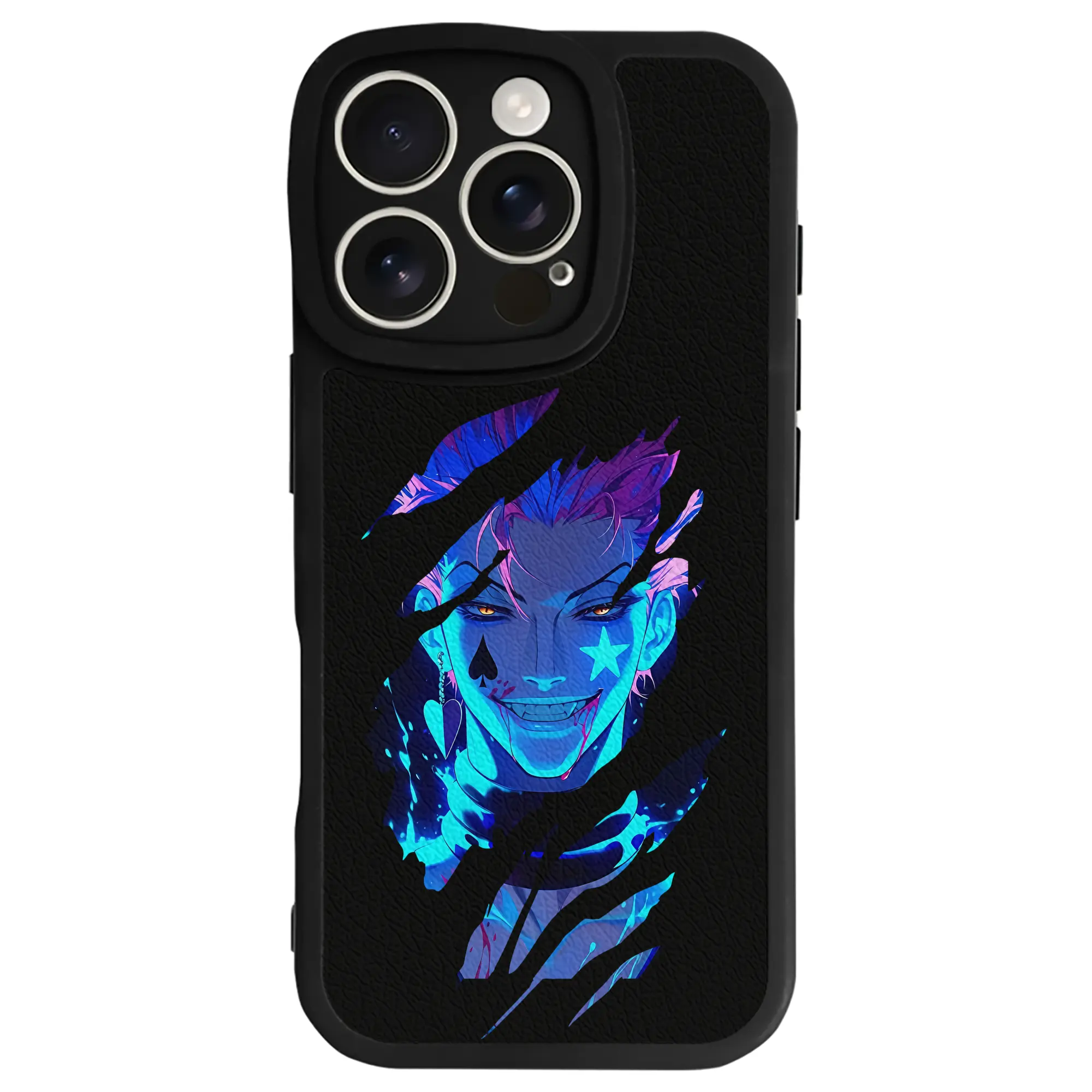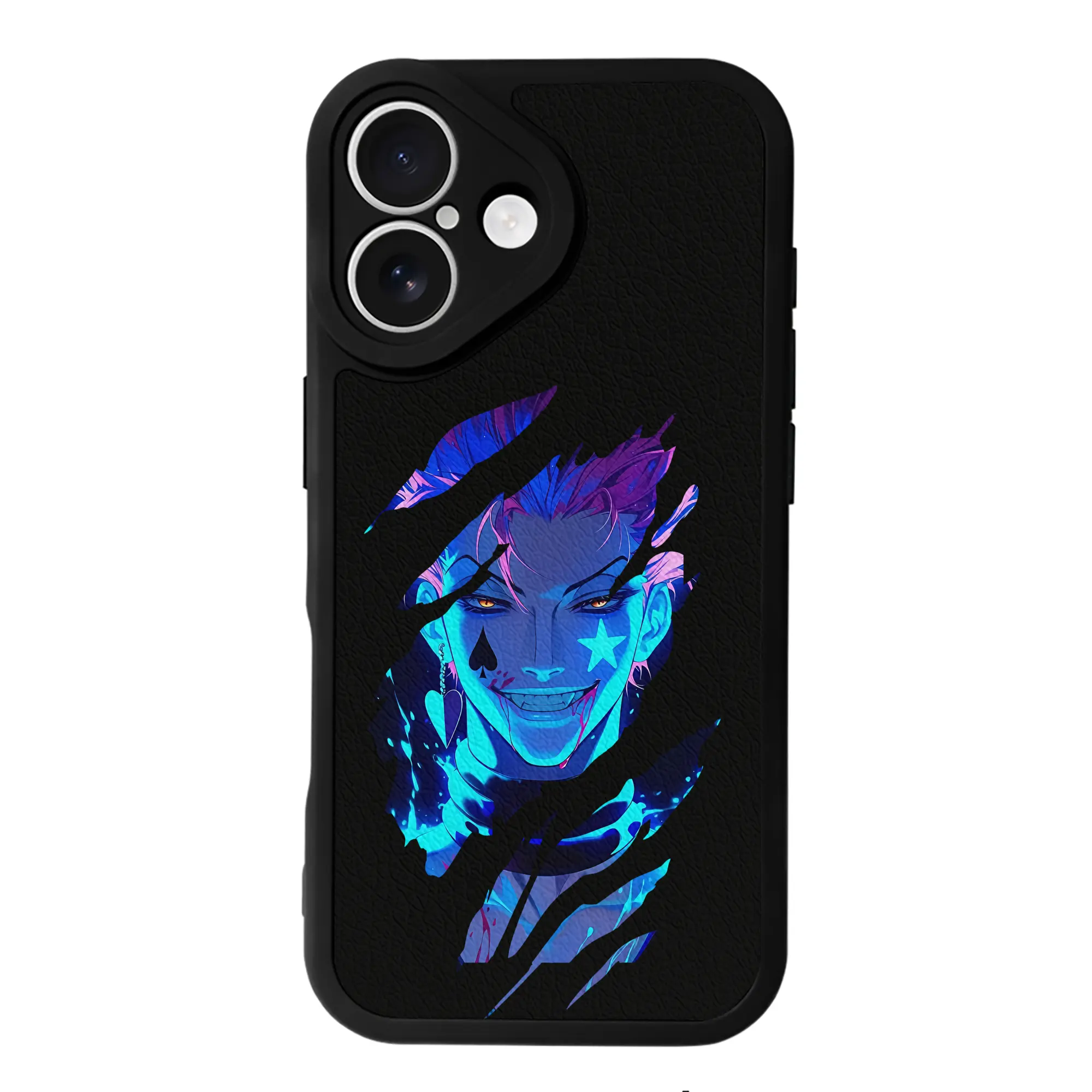ハンター×ハンター グッズ ヒソカ=モロウ - IPhone 16シリーズ対応 ・ シリコンスマホケース ・ レザー調 ・ 高精度フィット ・ 耐衝撃 ・ ワイヤレス充電対応 ・ 精密カット