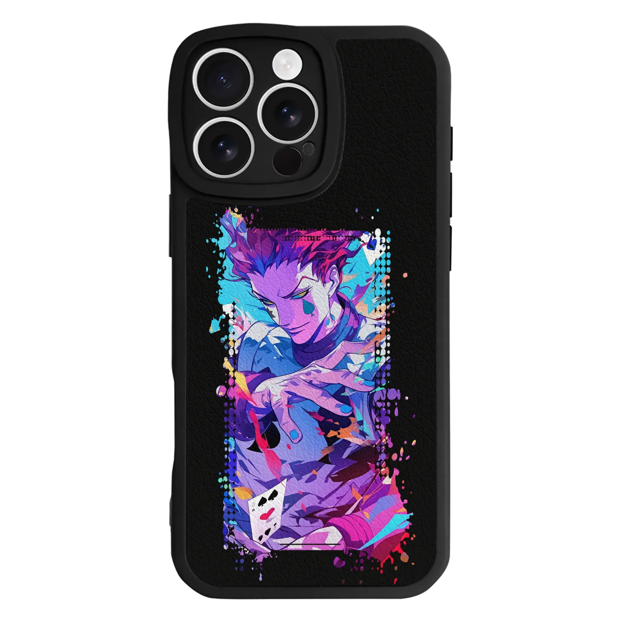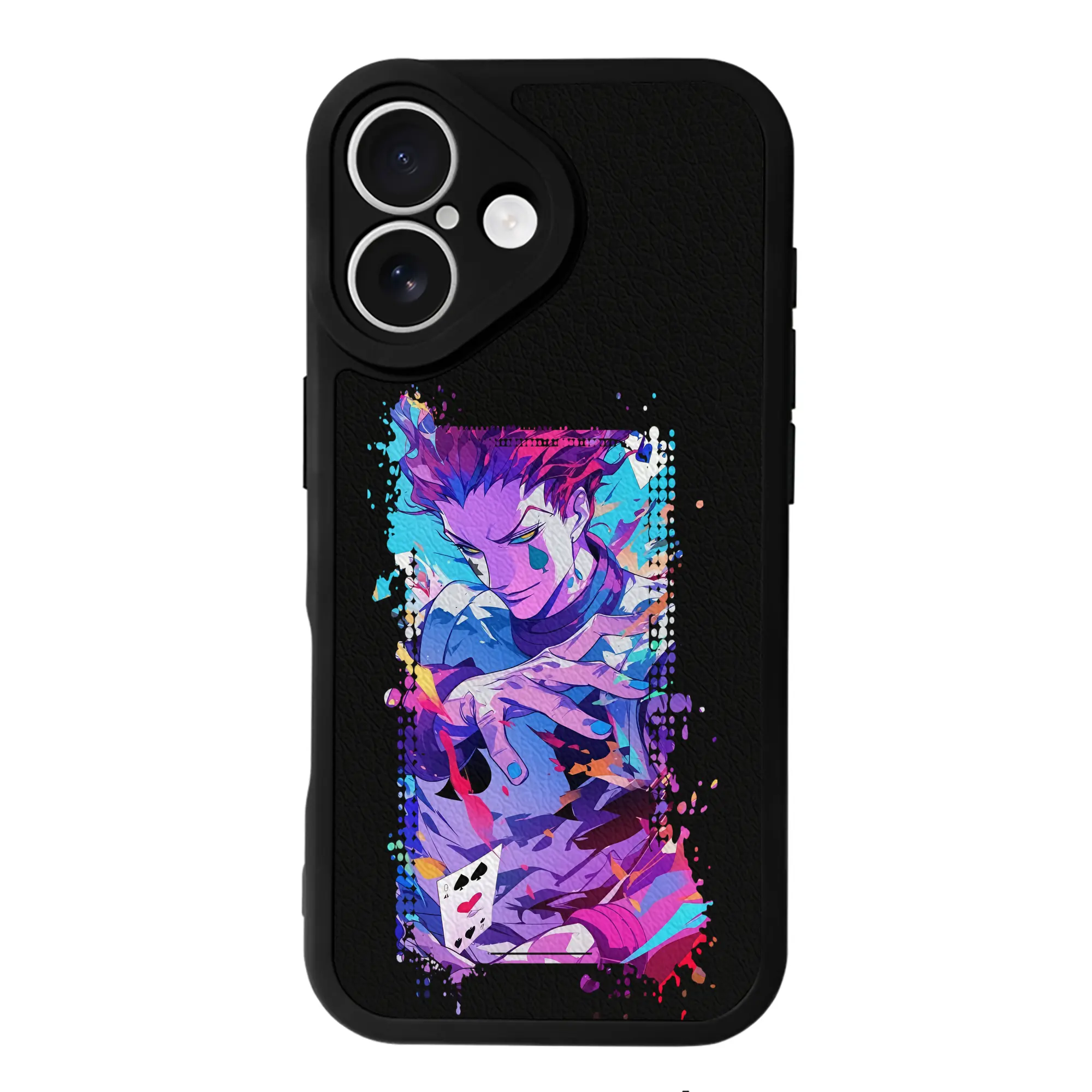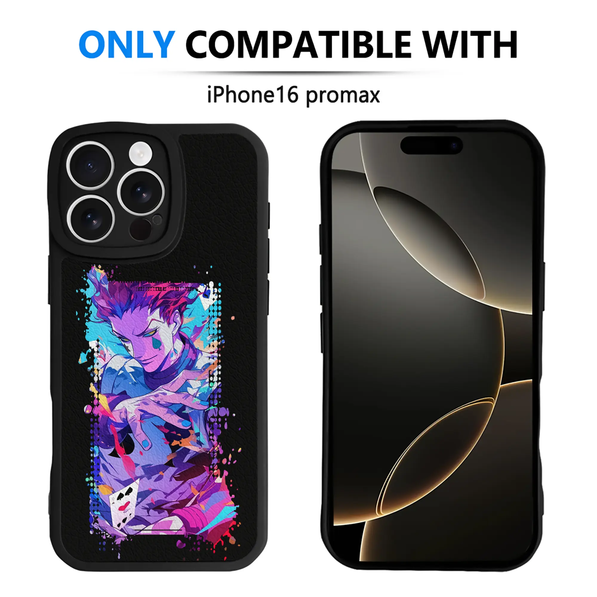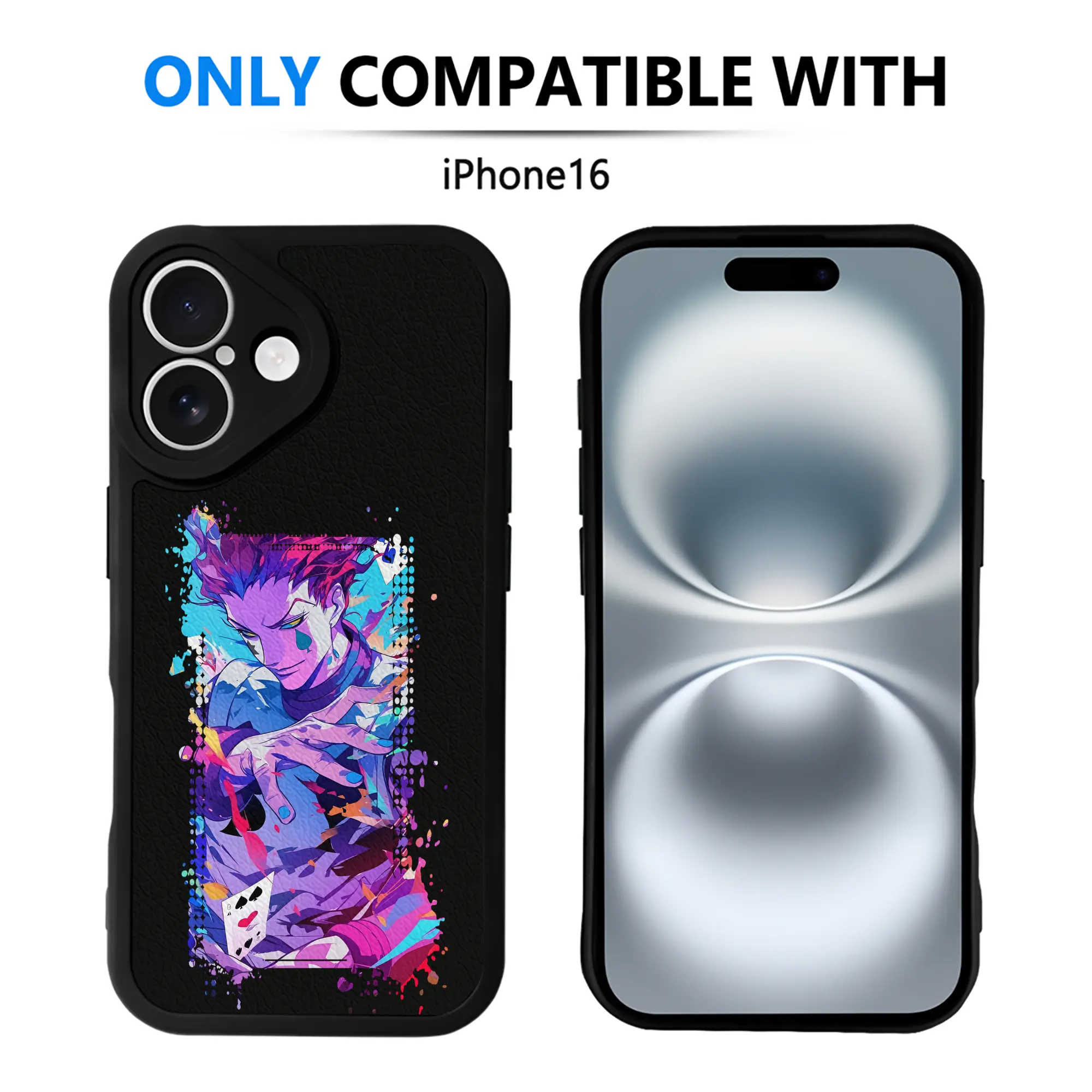 ハンター×ハンター グッズ ヒソカ=モロウ - IPhone 16シリーズ対応 ・ シリコンスマホケース ・ レザー調 ・ 高精度フィット ・ 耐衝撃 ・ ワイヤレス充電対応 ・ 精密カット