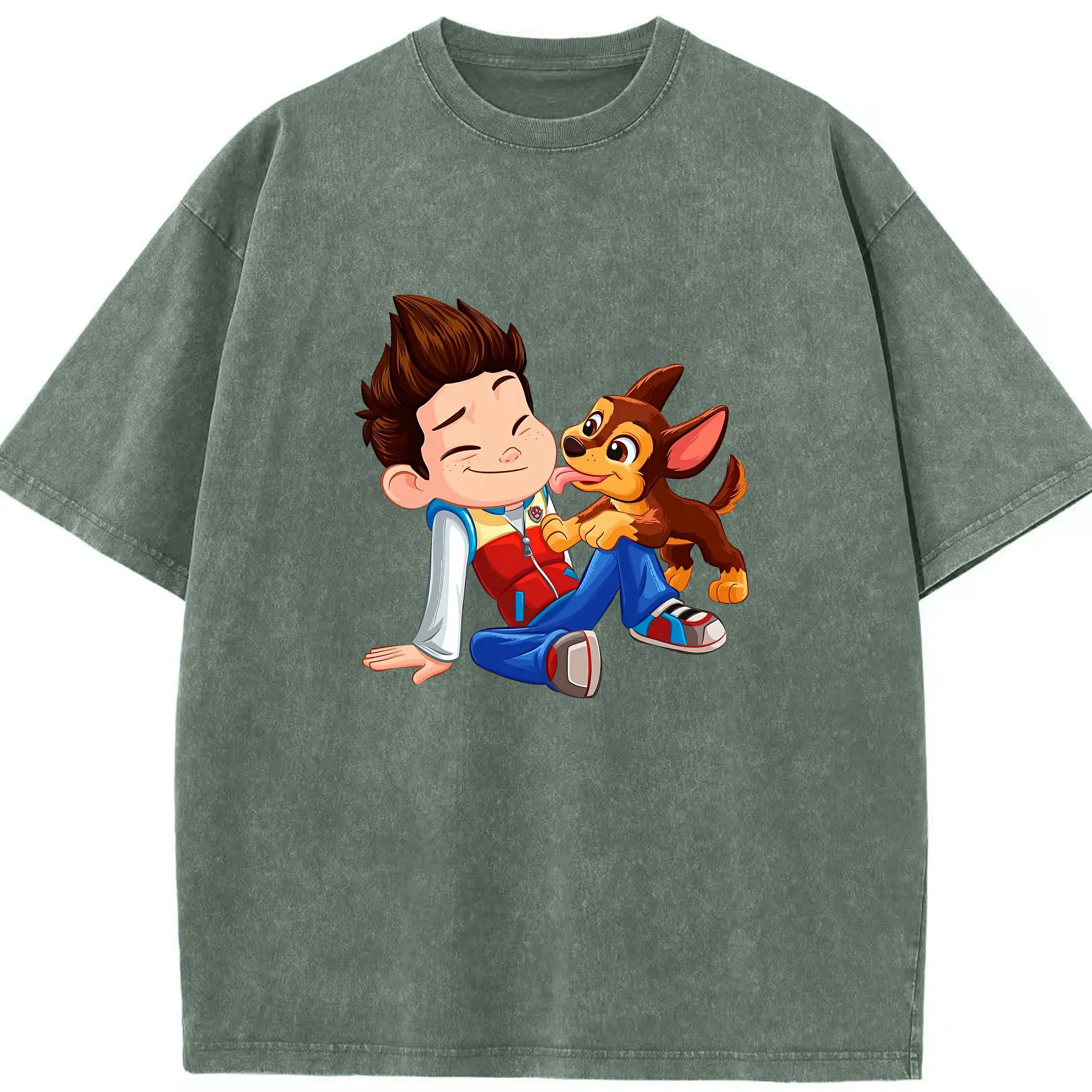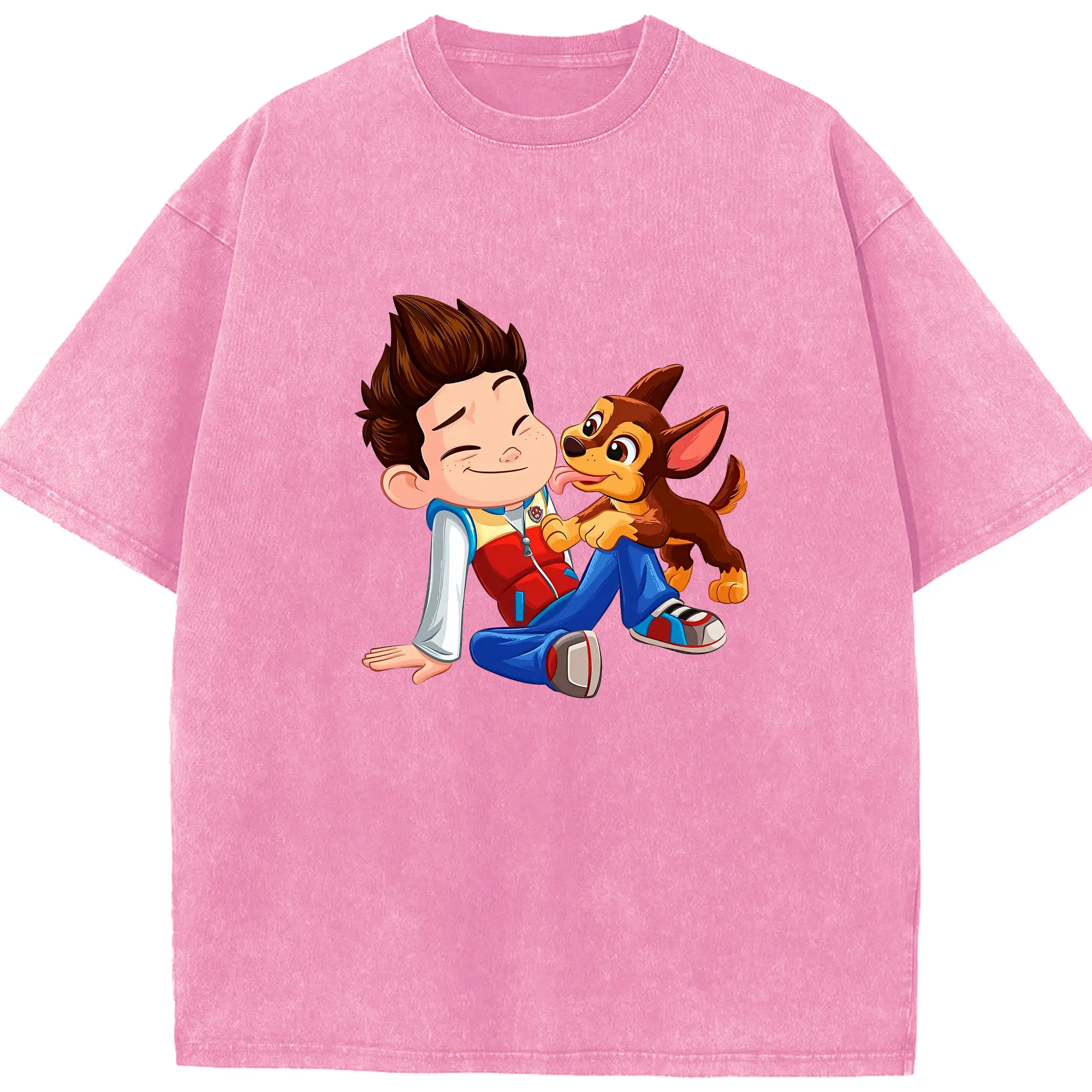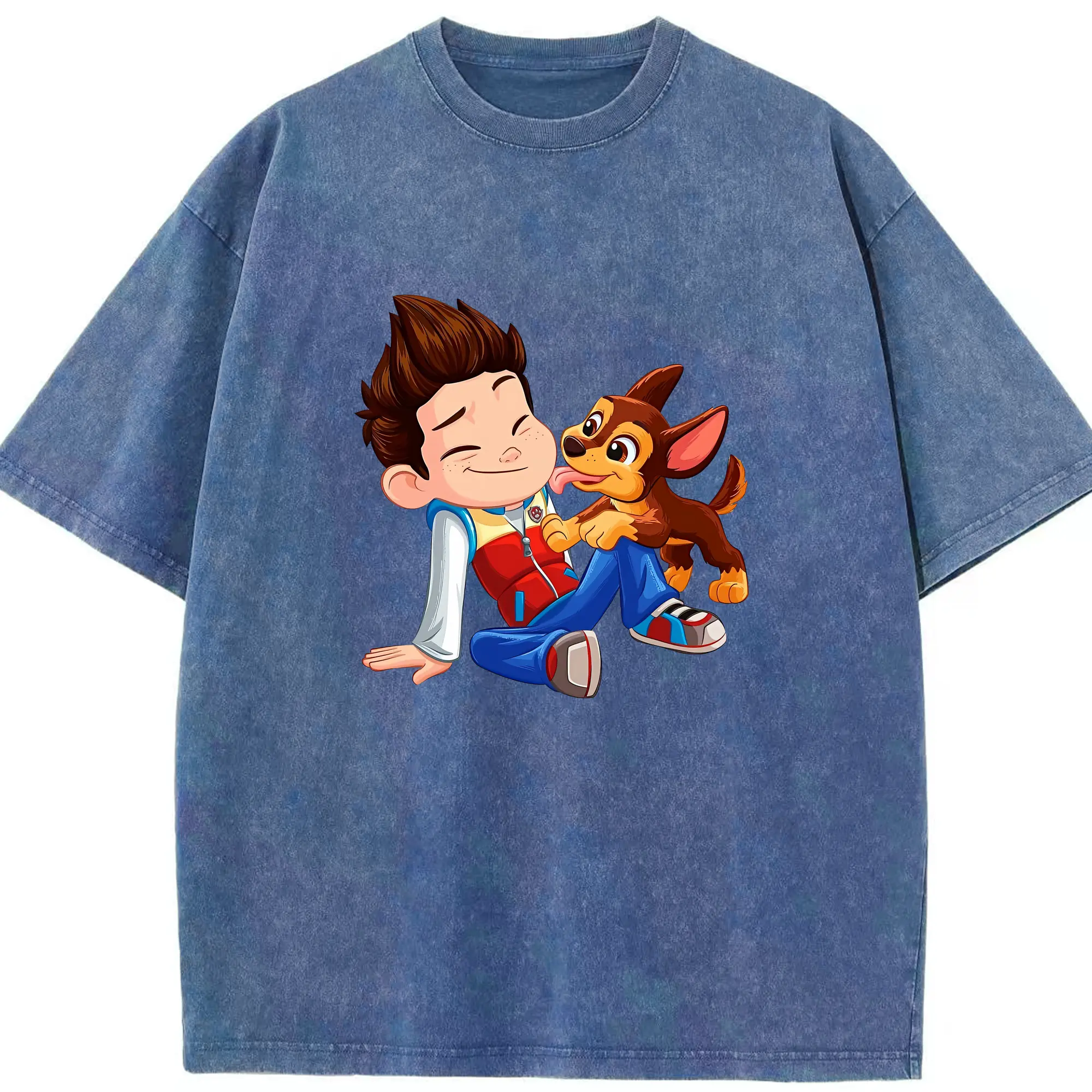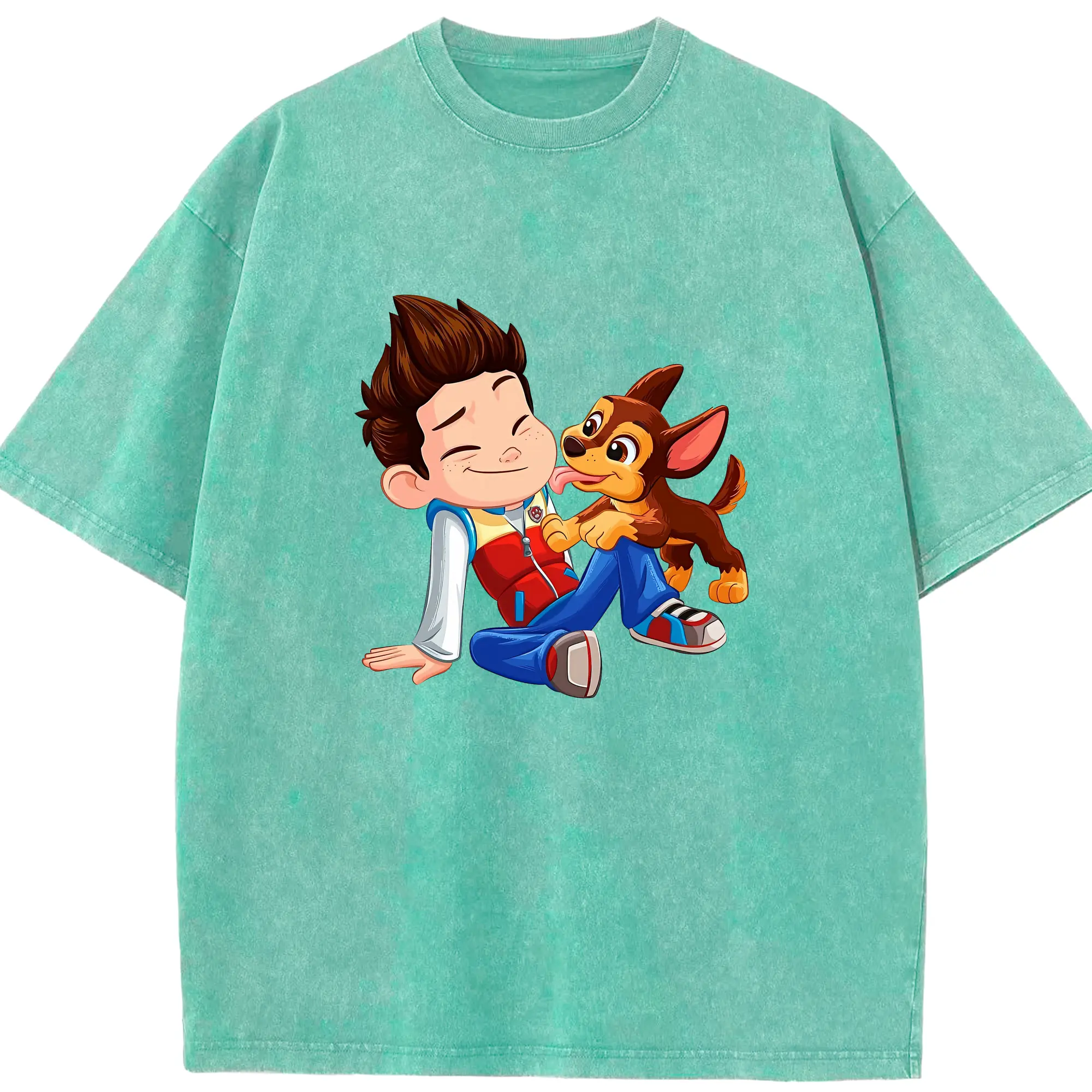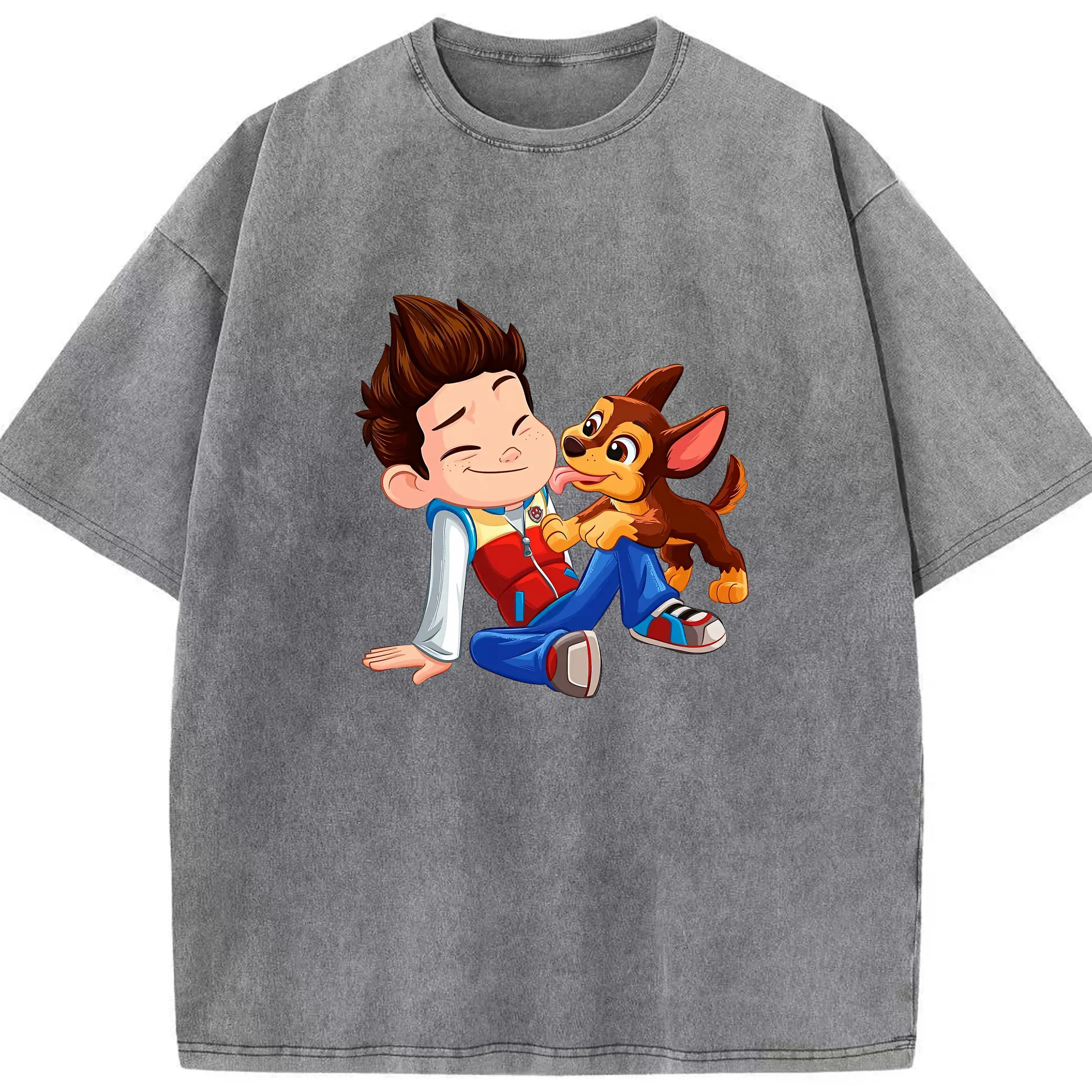 パウ・パトロール グッズ ライダー - 綿100% ヴィンテージ風 半袖Tシャツ ・ 背面プリント ・ 柔らか肌触り ・ 通気性 快適 ・ スポーツ カジュアル 外出用