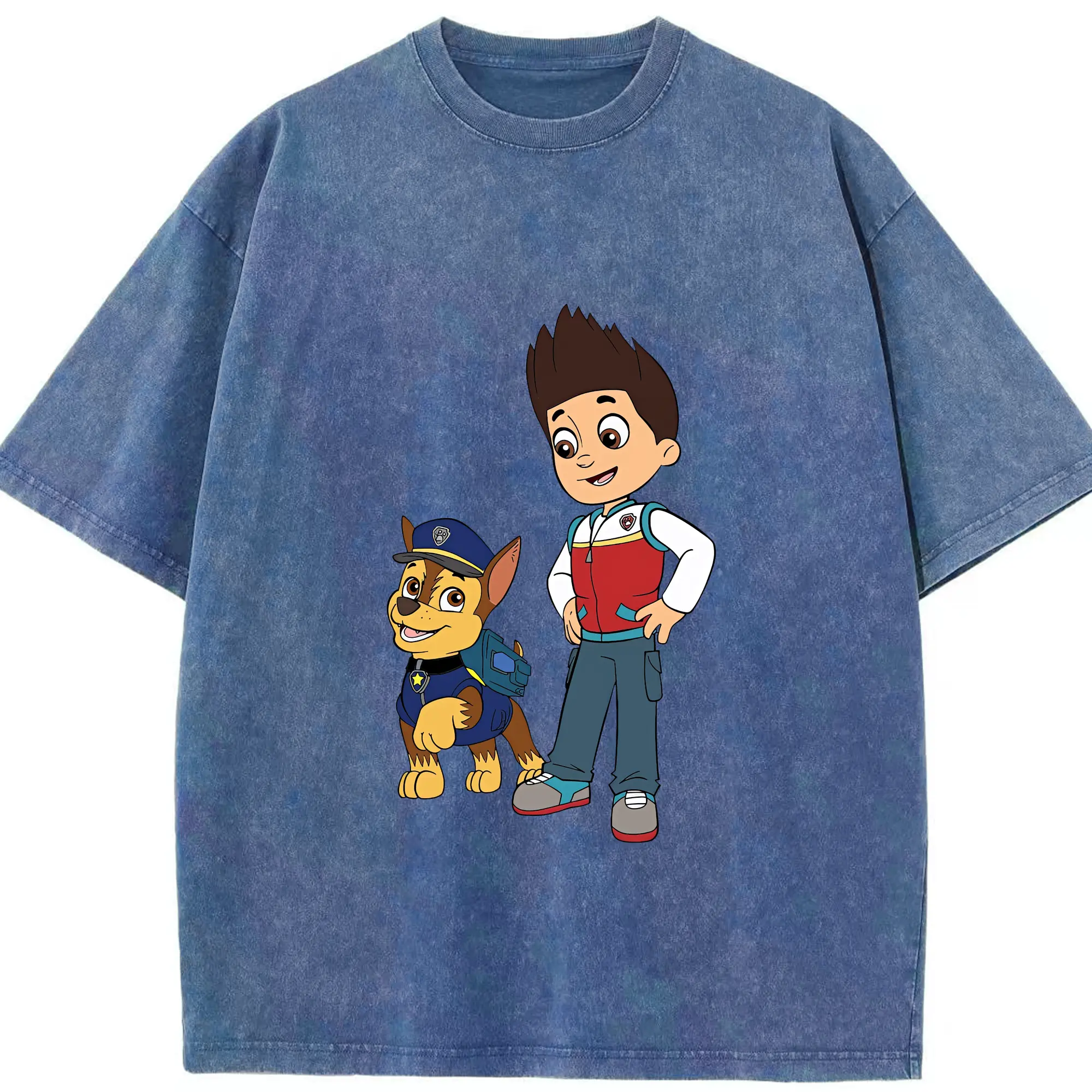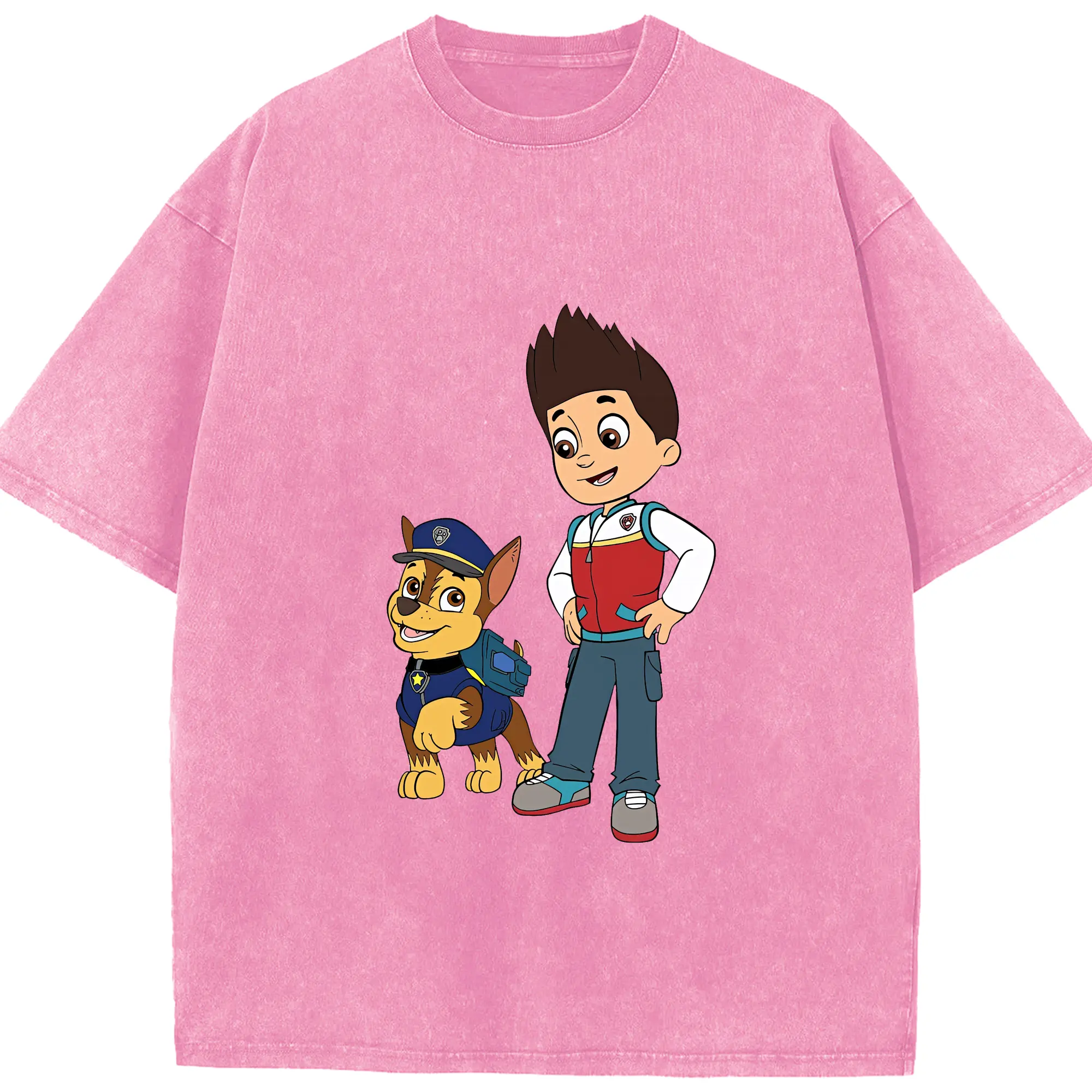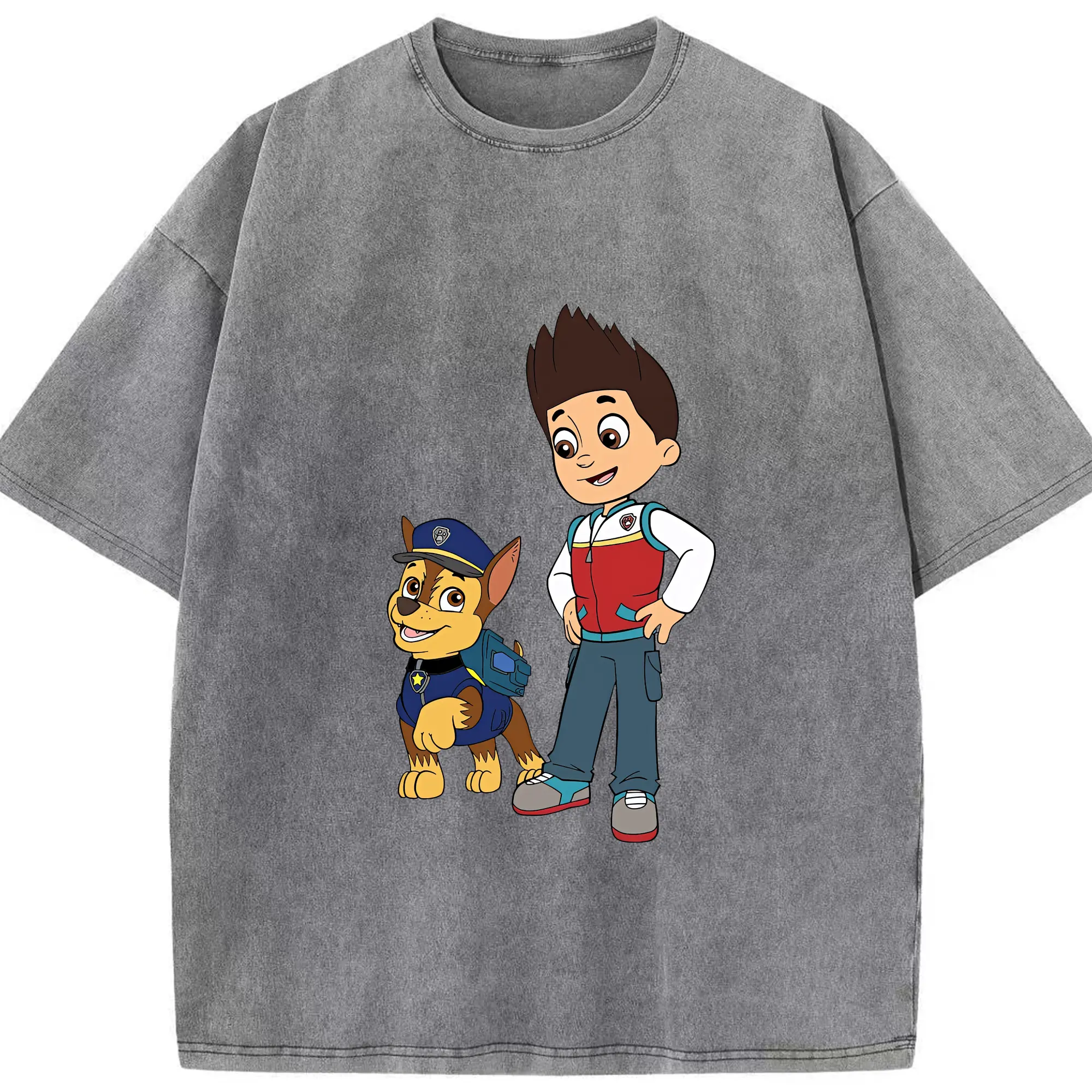 パウ・パトロール グッズ ライダー - 綿100% ヴィンテージ風 半袖Tシャツ ・ 背面プリント ・ 柔らか肌触り ・ 通気性 快適 ・ スポーツ カジュアル 外出用