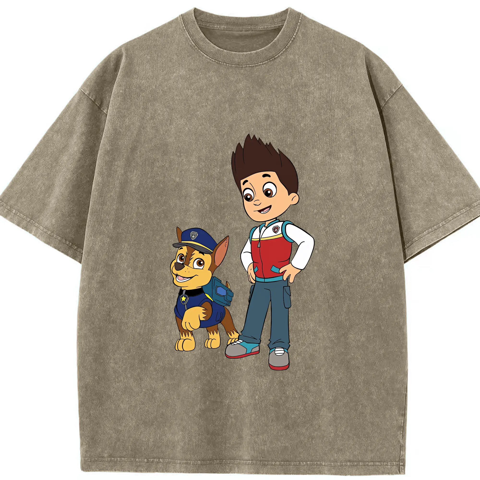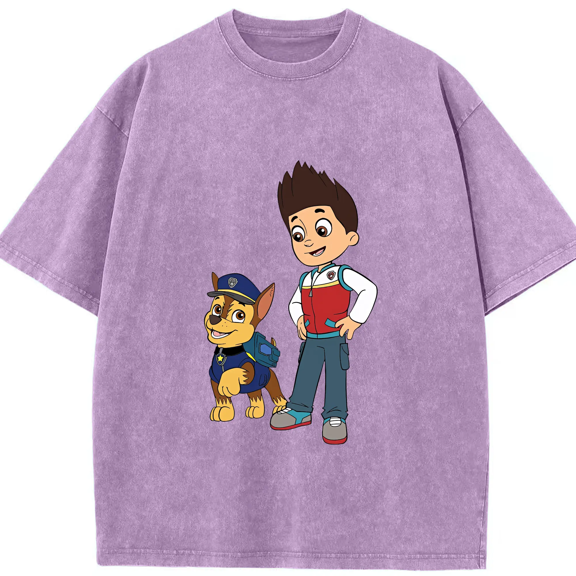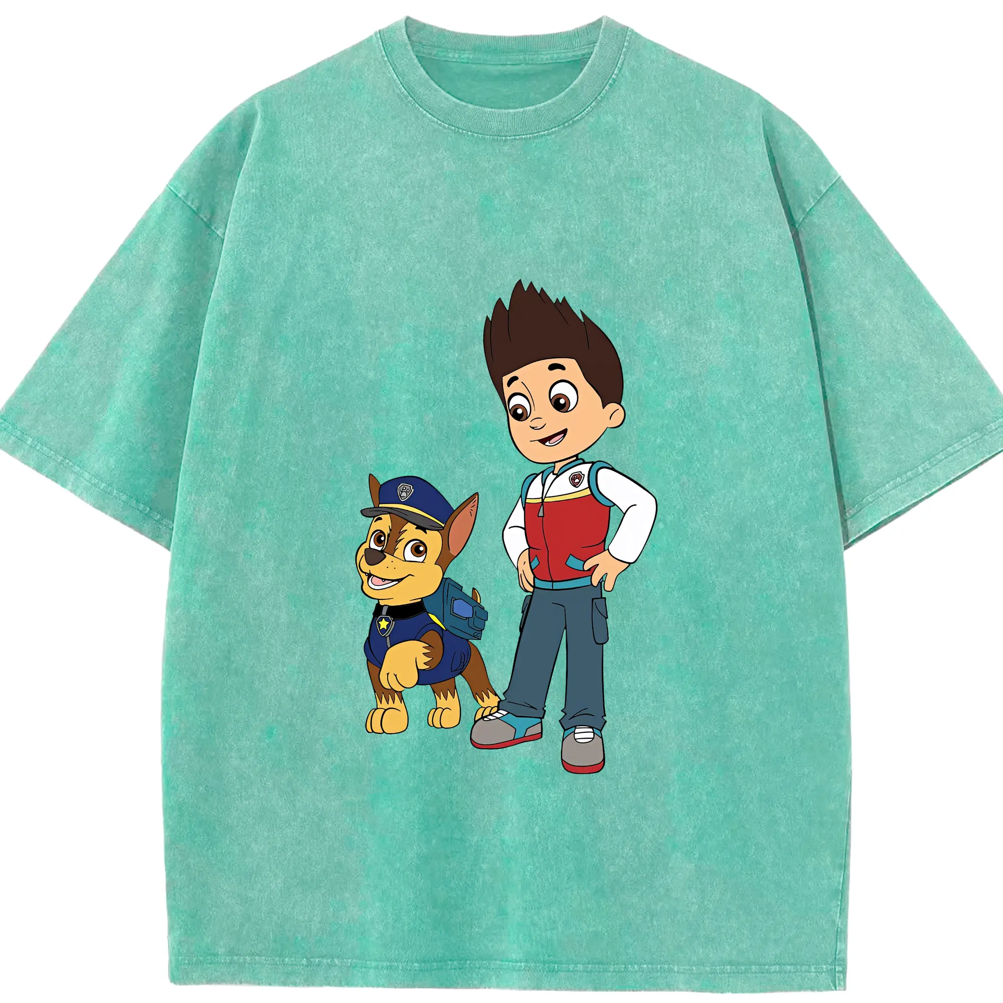 パウ・パトロール グッズ ライダー - 綿100% ヴィンテージ風 半袖Tシャツ ・ 背面プリント ・ 柔らか肌触り ・ 通気性 快適 ・ スポーツ カジュアル 外出用