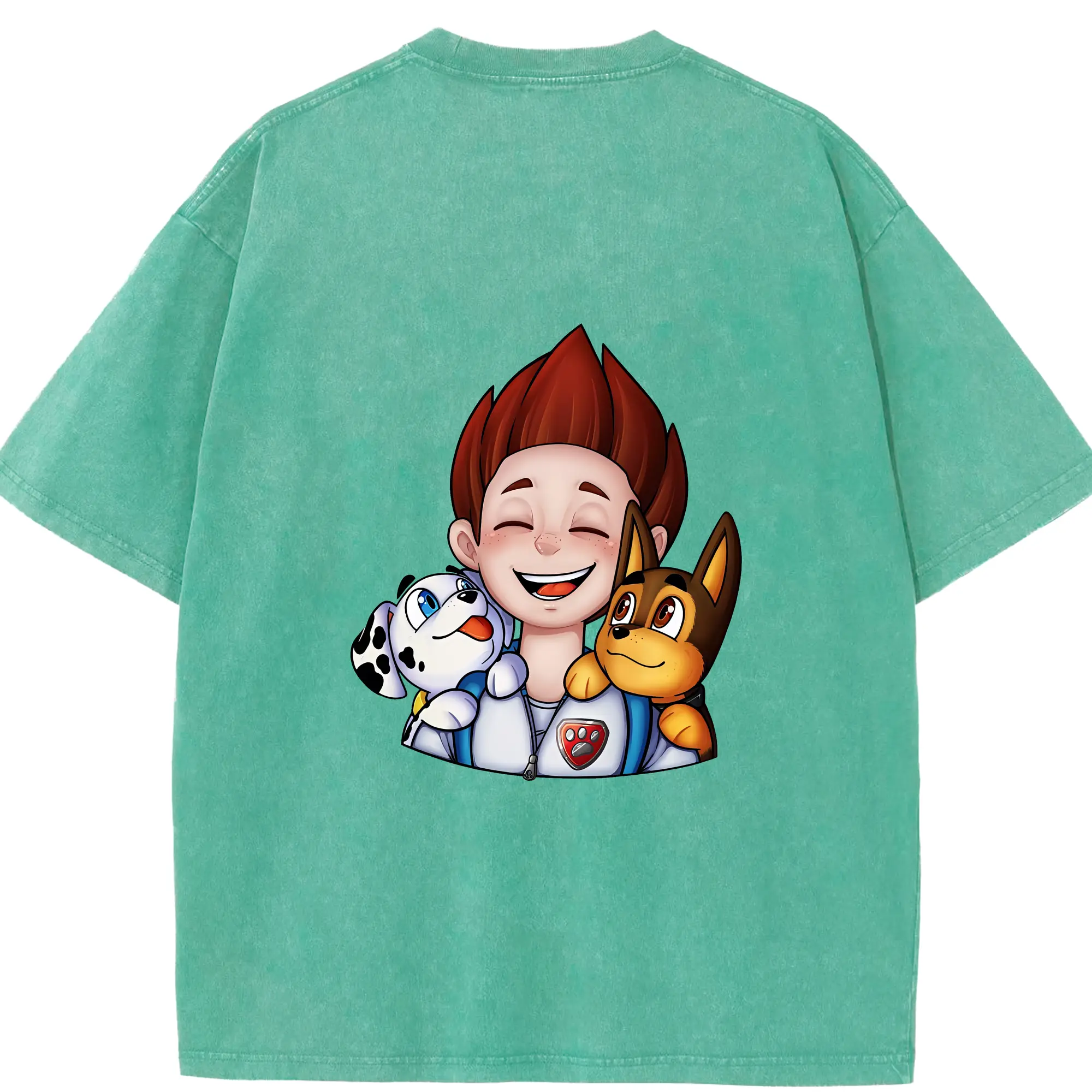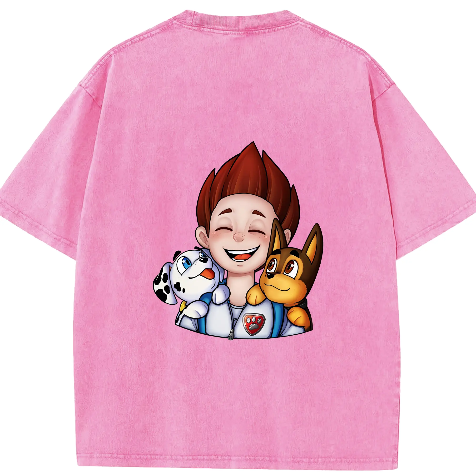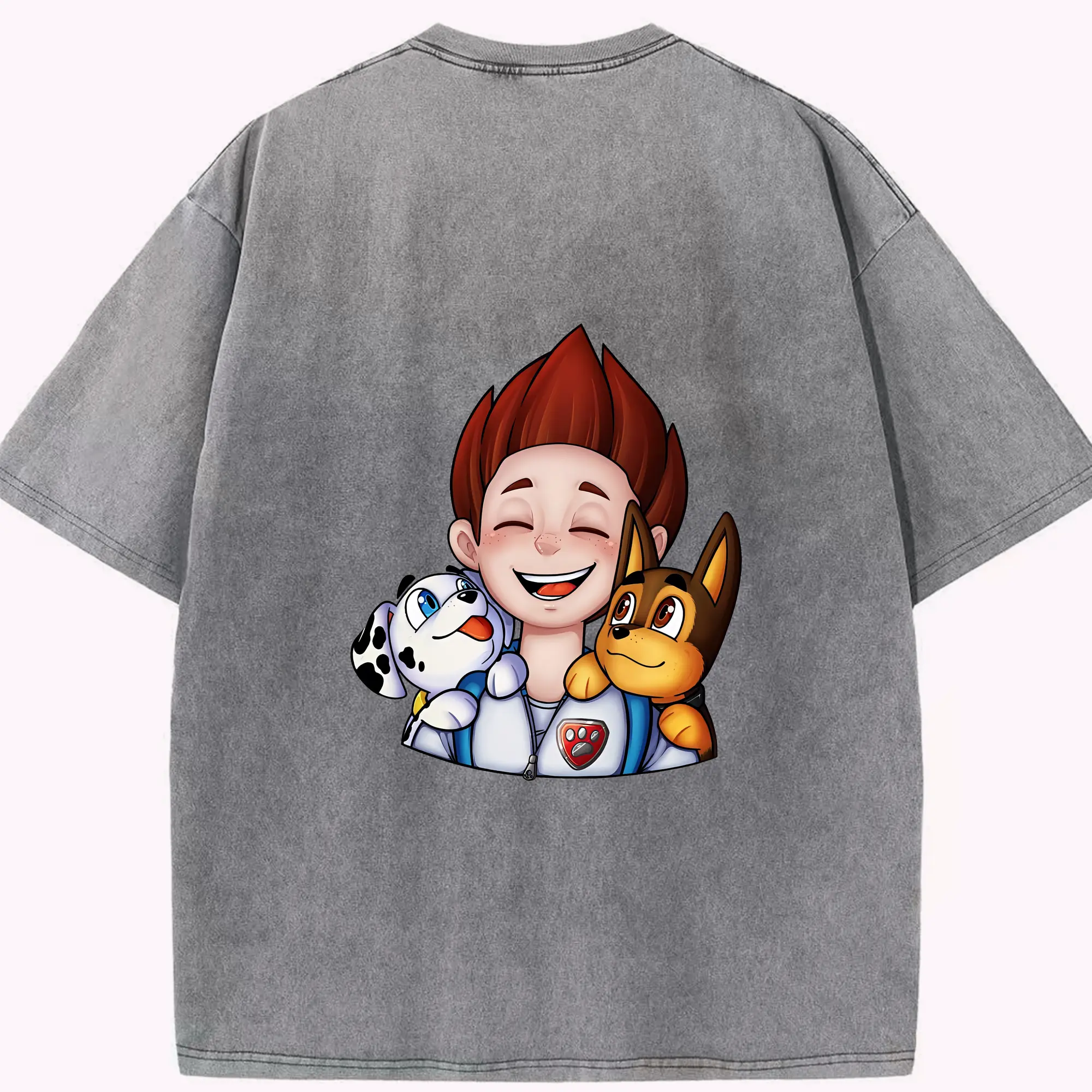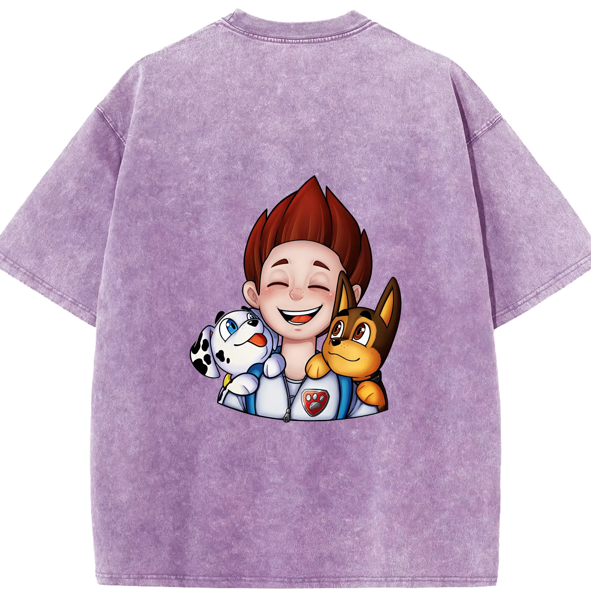 パウ・パトロール グッズ ライダー - 綿100% ヴィンテージ風 半袖Tシャツ ・ フロントプリント ・ 柔らか肌触り ・ 通気性 快適 ・ スポーツ カジュアル 外出用