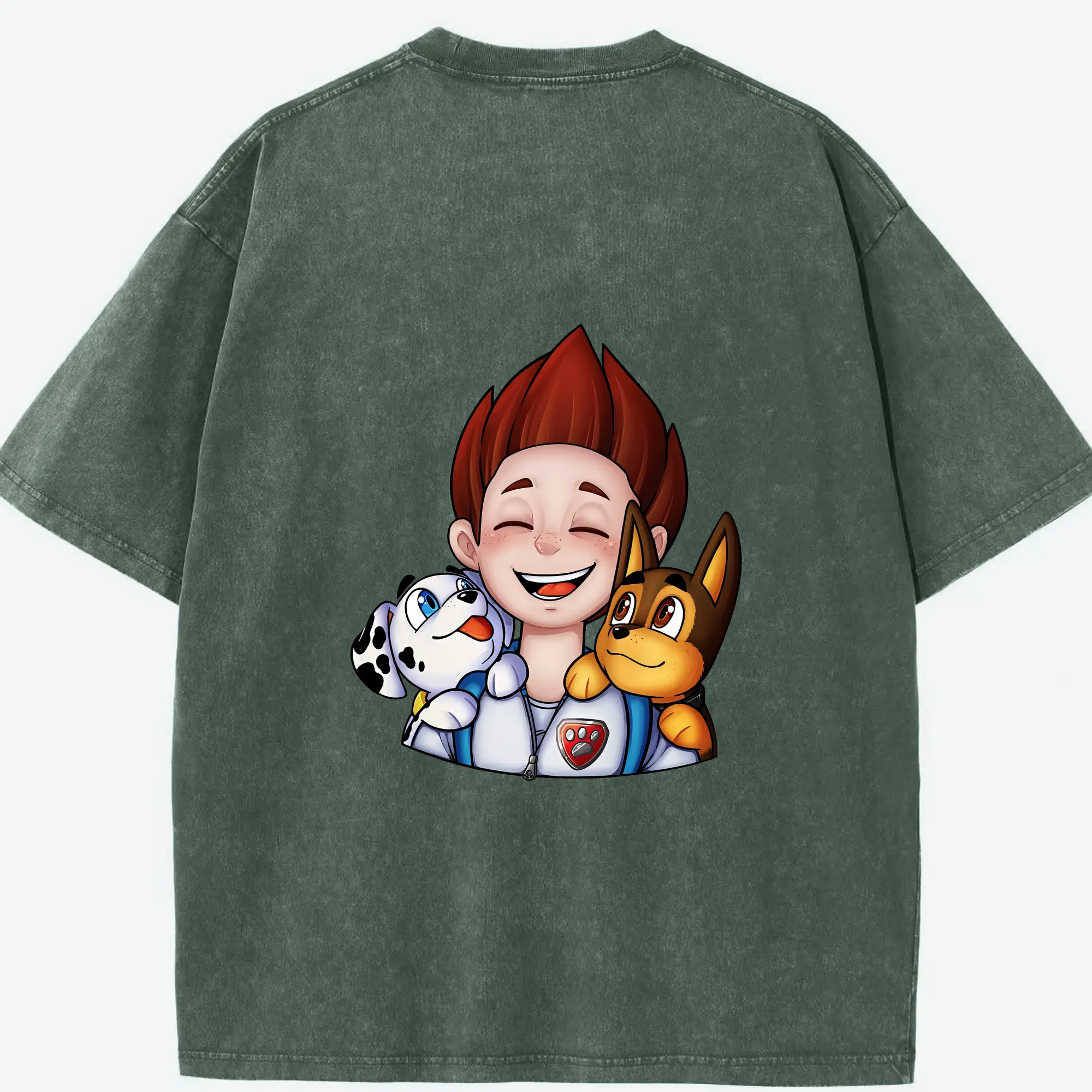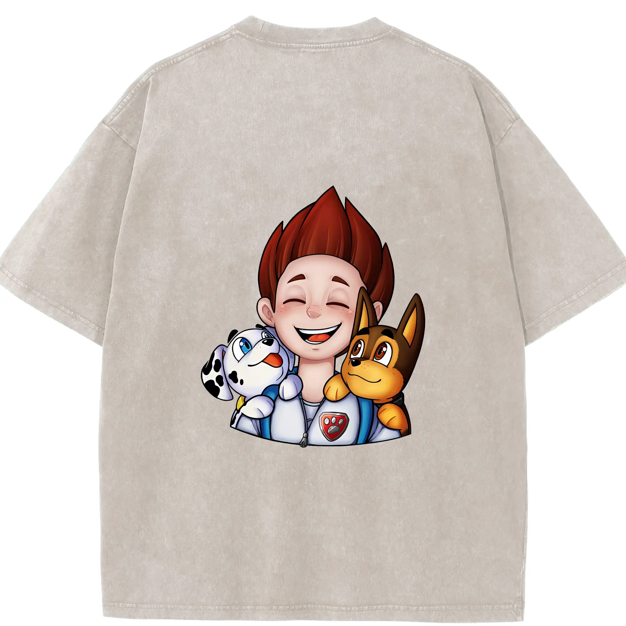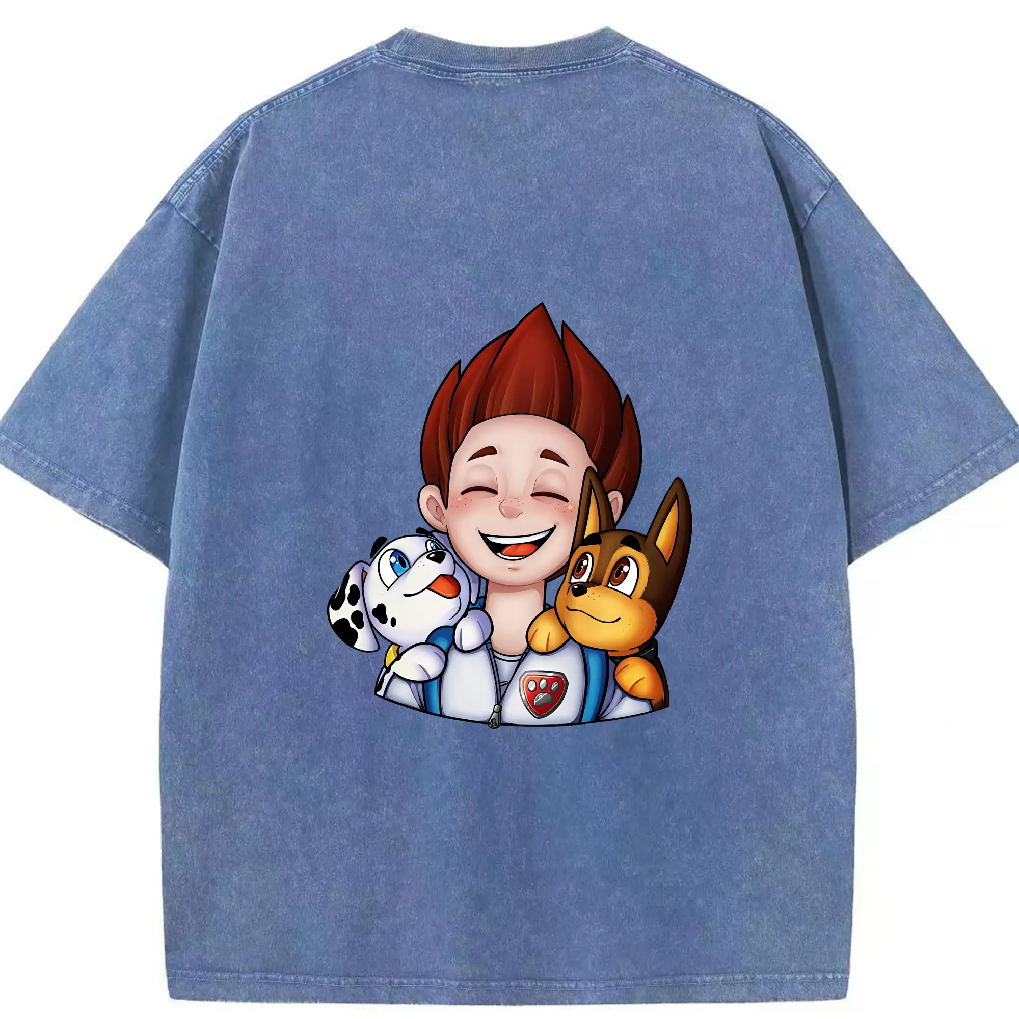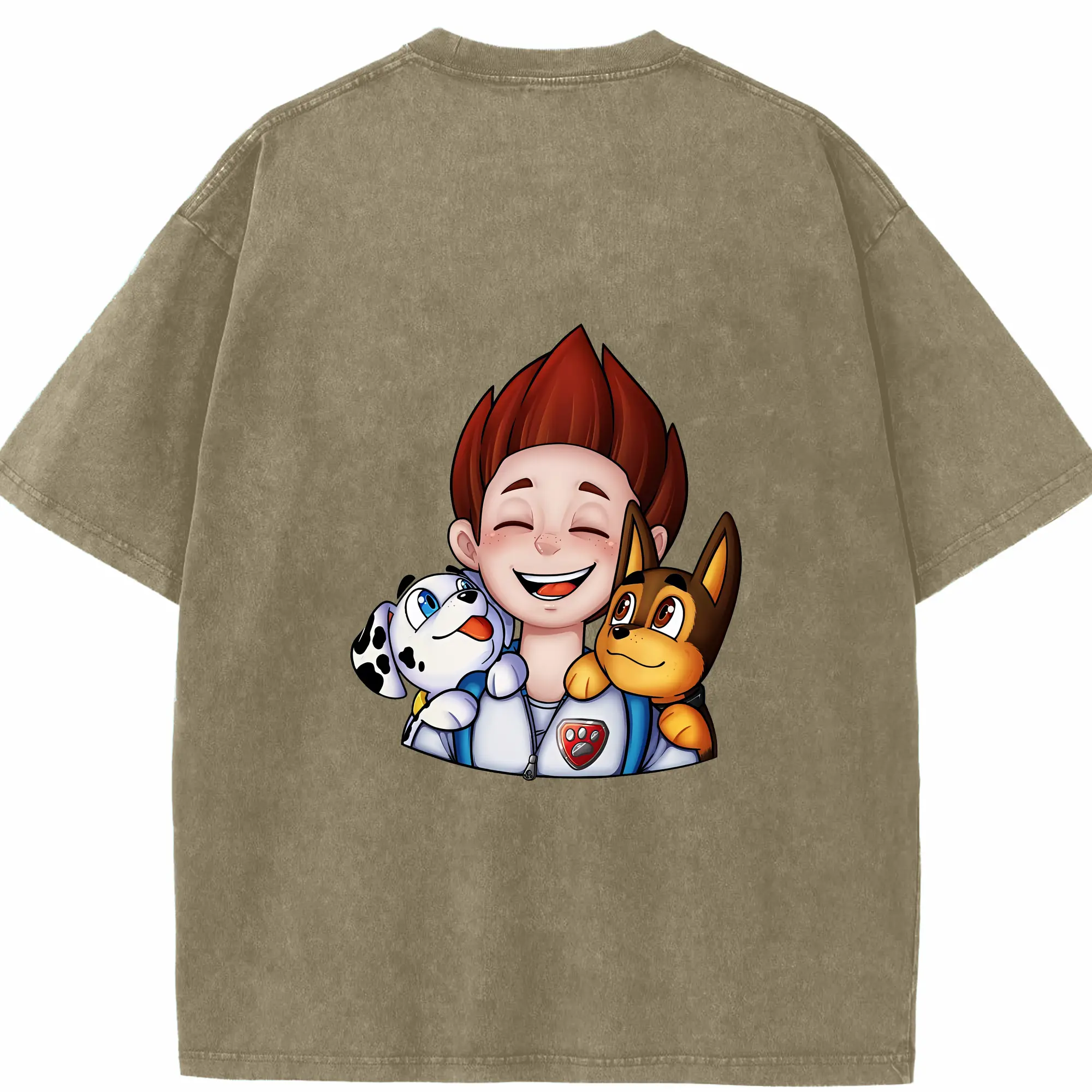 パウ・パトロール グッズ ライダー - 綿100% ヴィンテージ風 半袖Tシャツ ・ フロントプリント ・ 柔らか肌触り ・ 通気性 快適 ・ スポーツ カジュアル 外出用