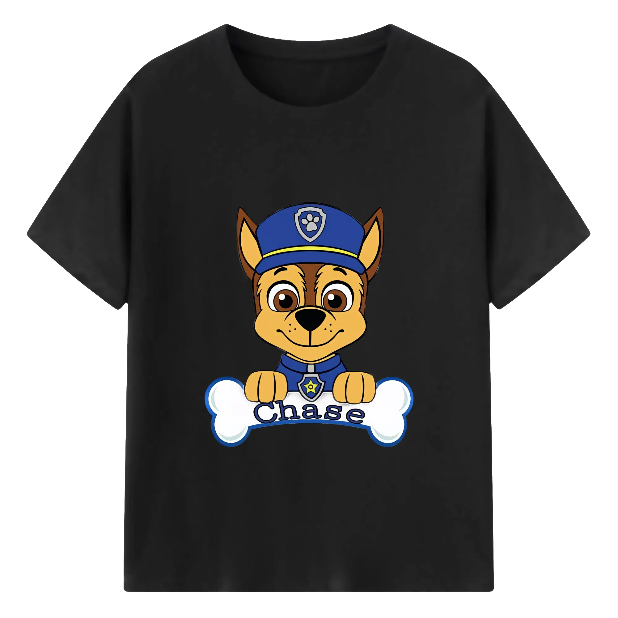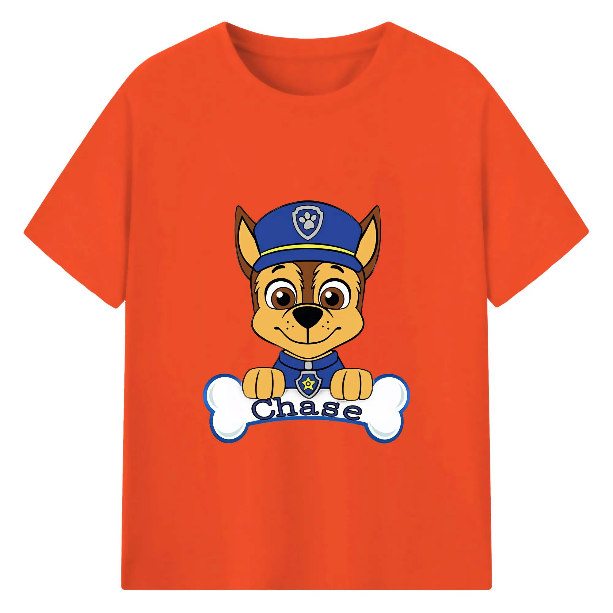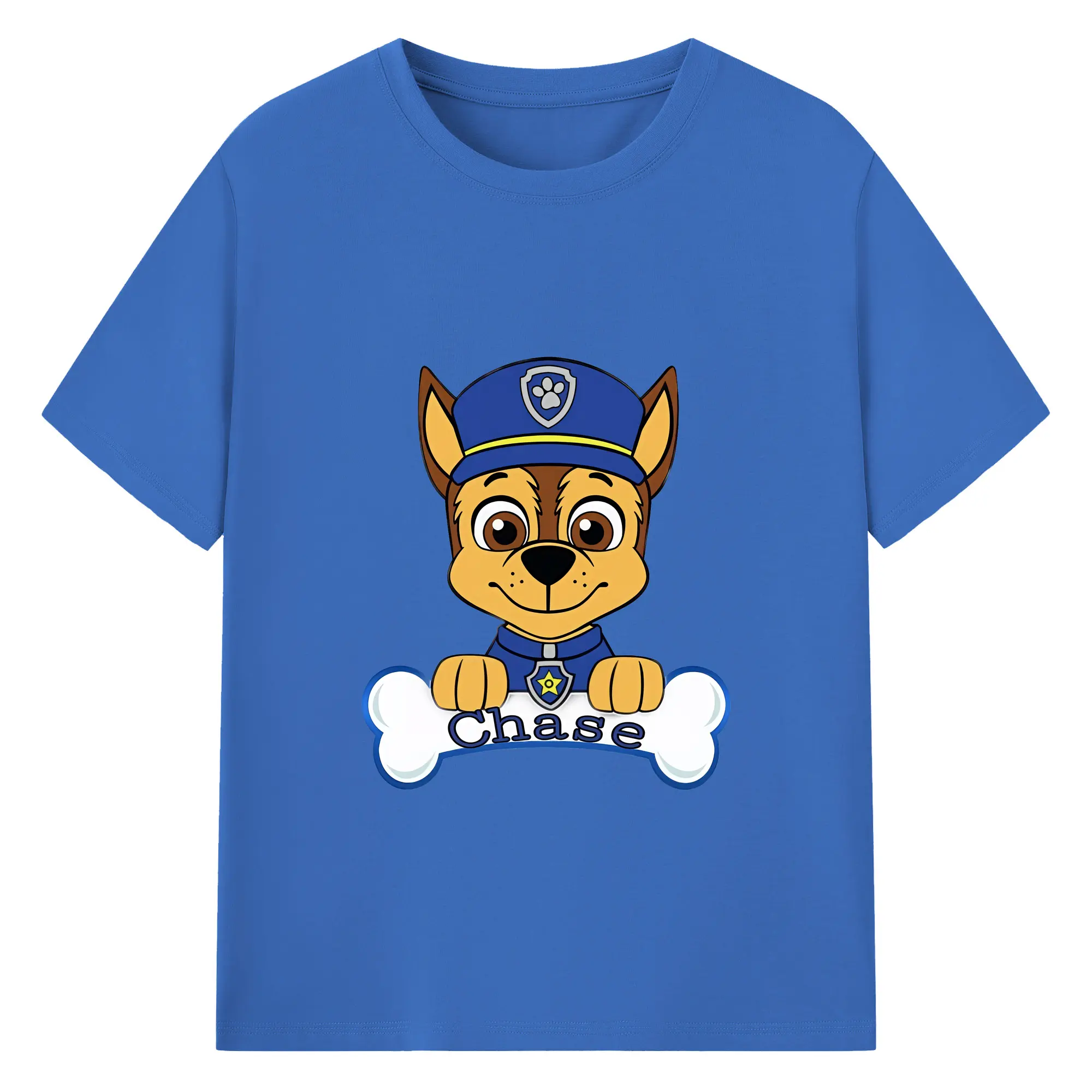 パウ・パトロール グッズ チェイス - 綿100% 半袖Tシャツ ・ バックプリント ・ 快適 通気性 ・ 日常使い 散歩 スポーツ用