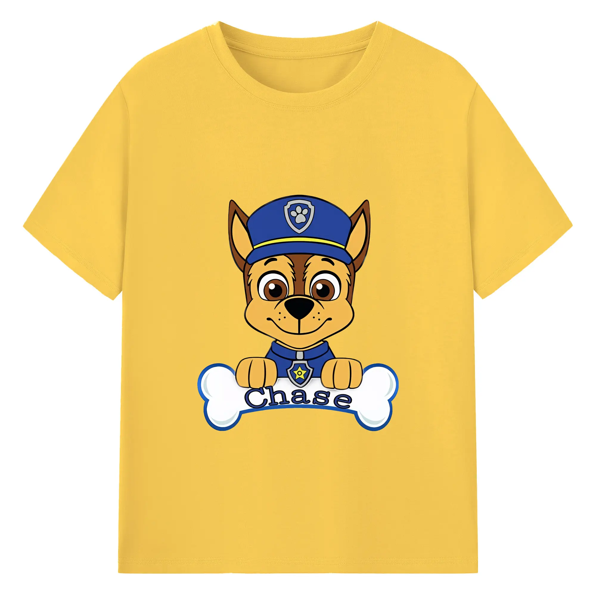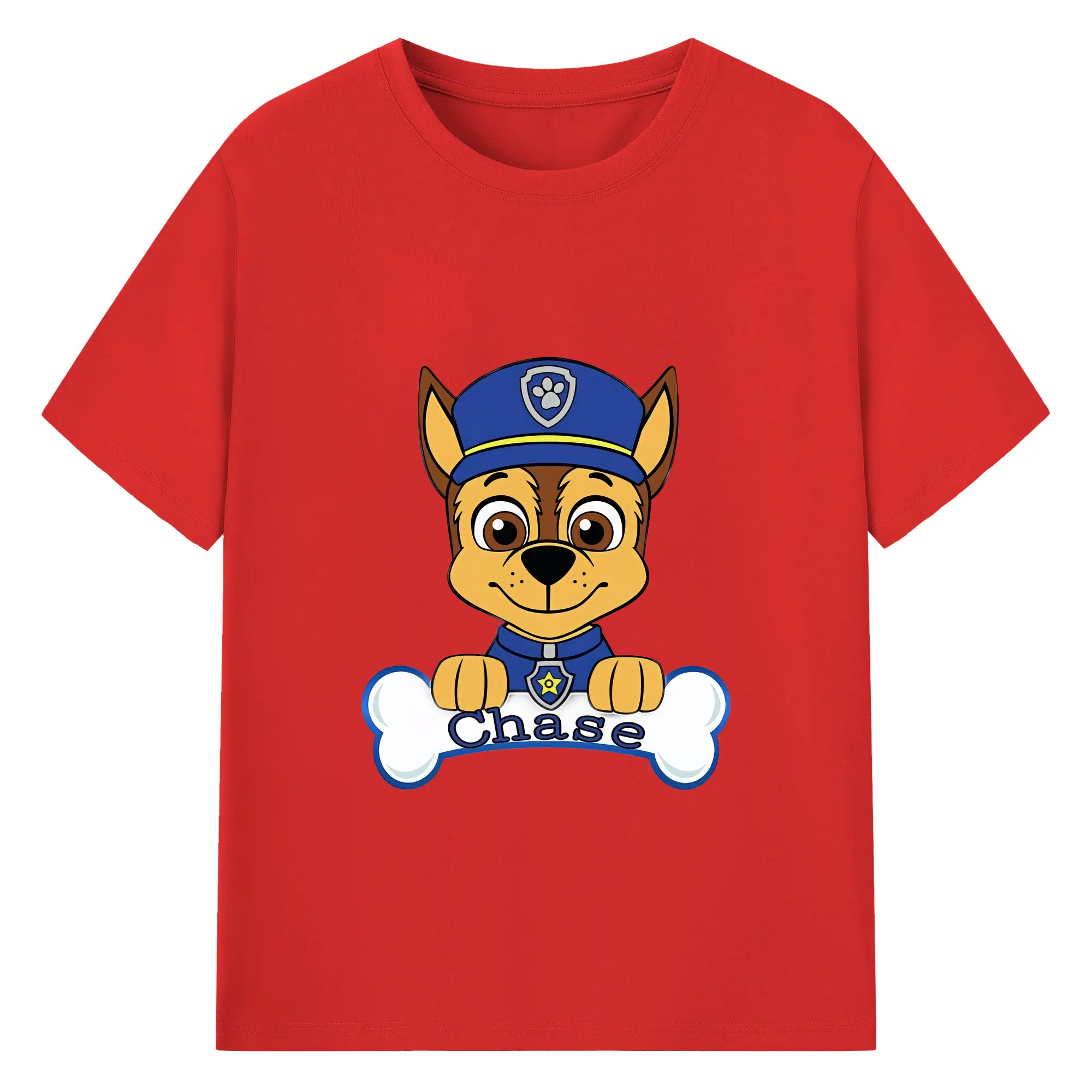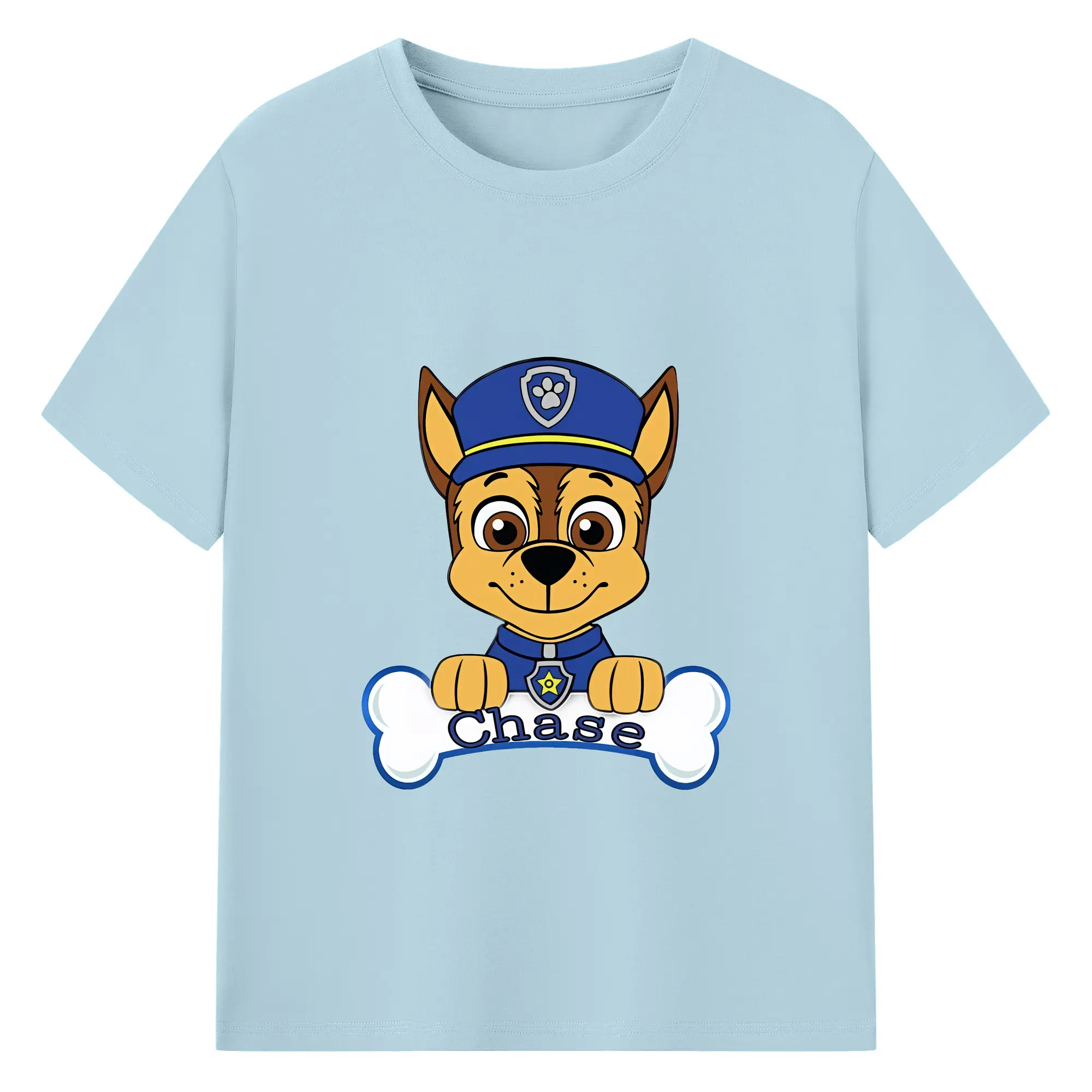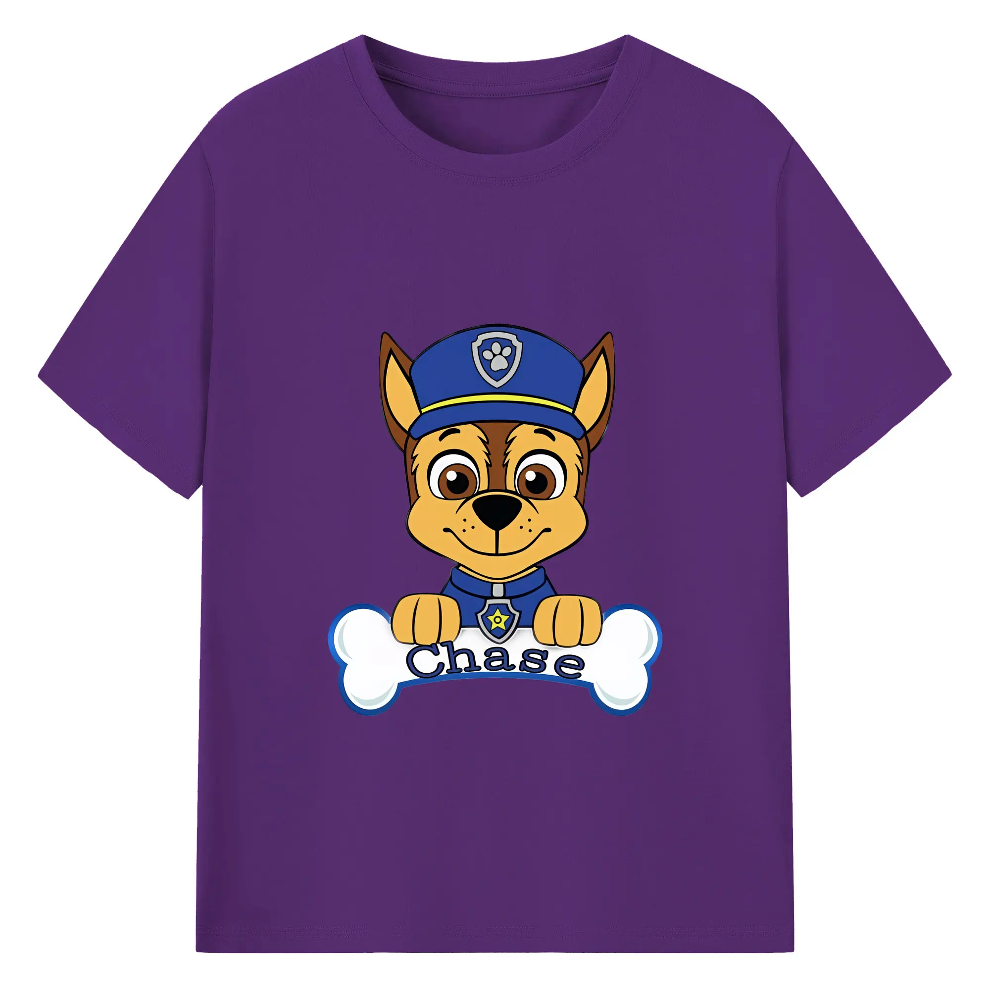 パウ・パトロール グッズ チェイス - 綿100% 半袖Tシャツ ・ バックプリント ・ 快適 通気性 ・ 日常使い 散歩 スポーツ用
