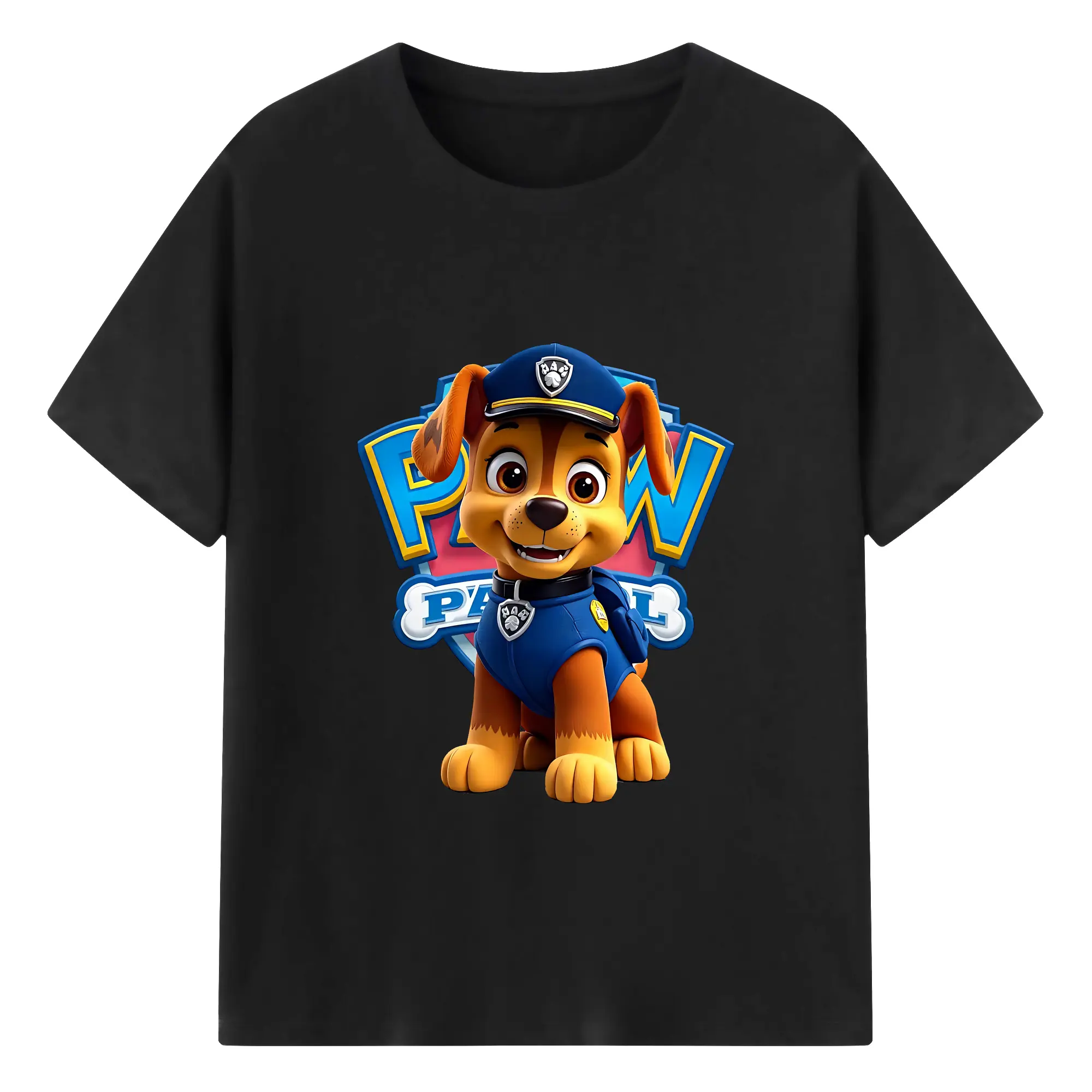 パウ・パトロール グッズ チェイス - 綿100% 半袖Tシャツ ・ バックプリント ・ 快適 通気性 ・ 日常使い 散歩 スポーツ用