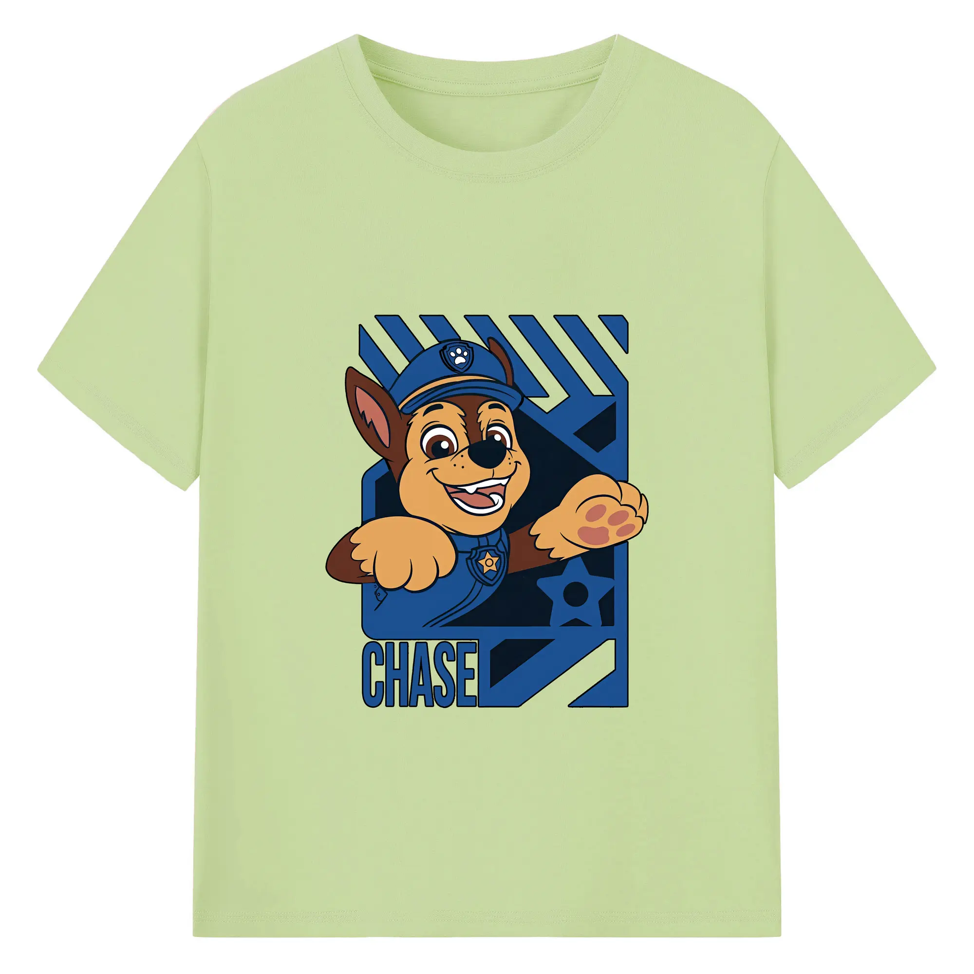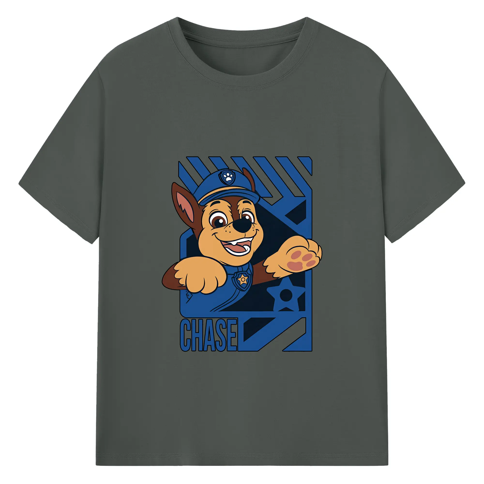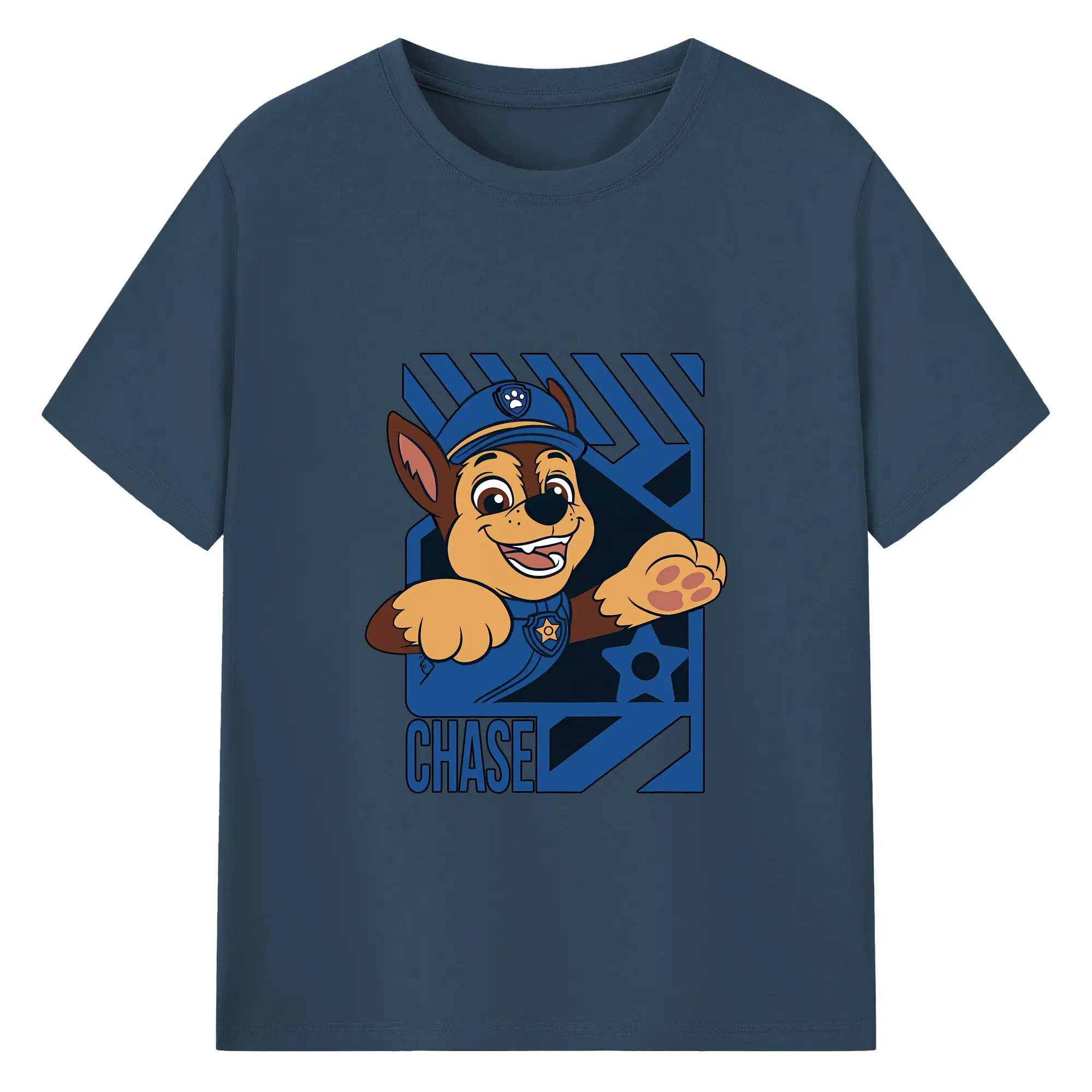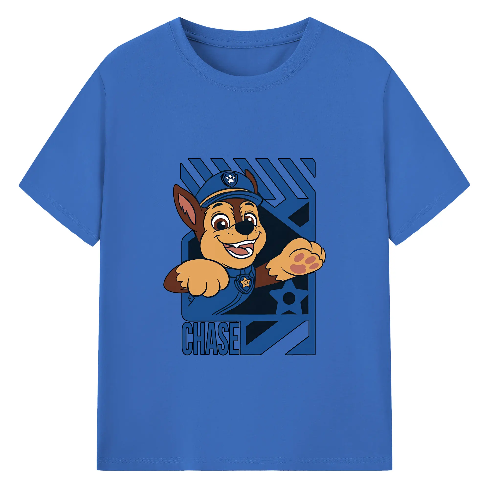 パウ・パトロール グッズ チェイス - 綿100% 半袖Tシャツ ・ バックプリント ・ 快適 通気性 ・ 日常使い 散歩 スポーツ用
