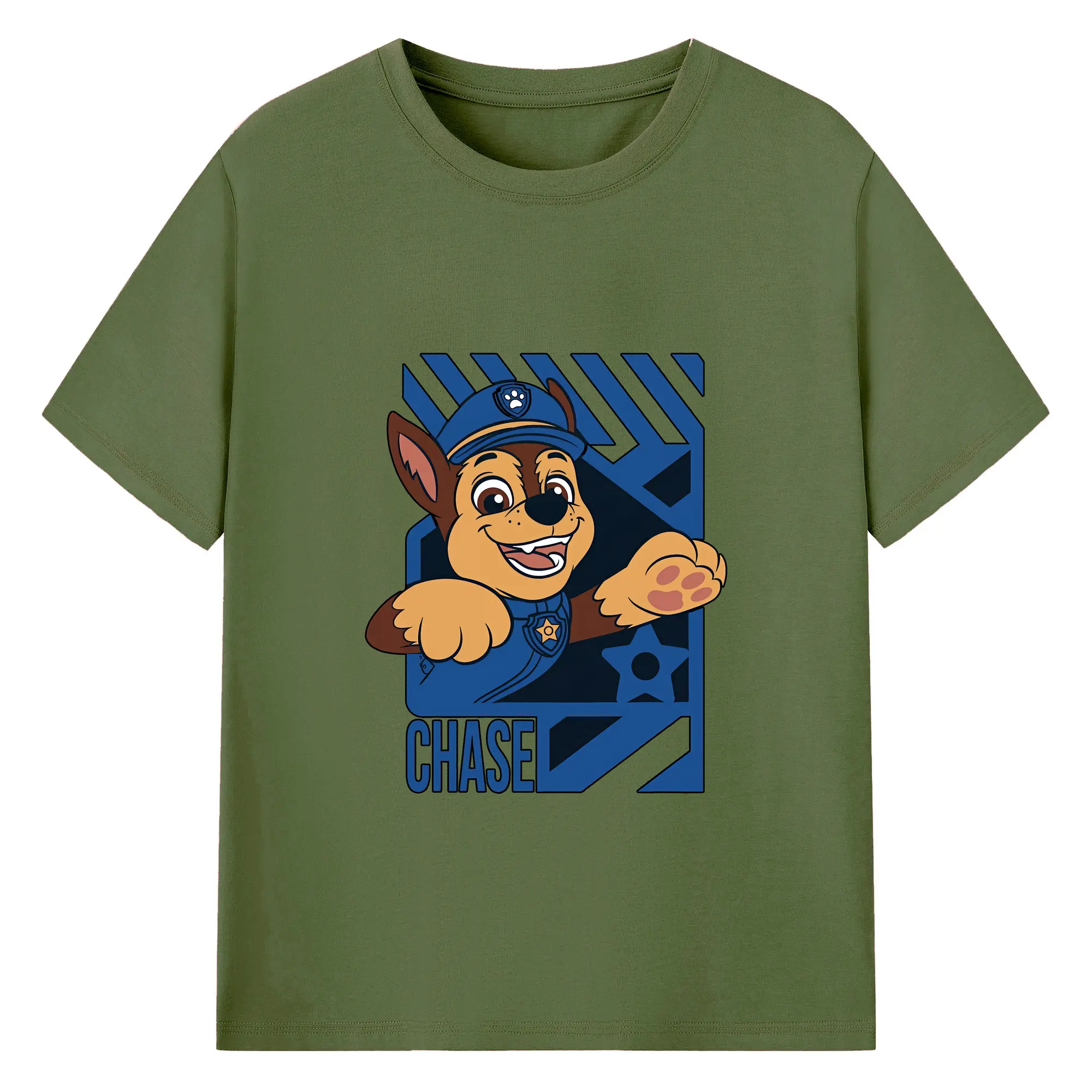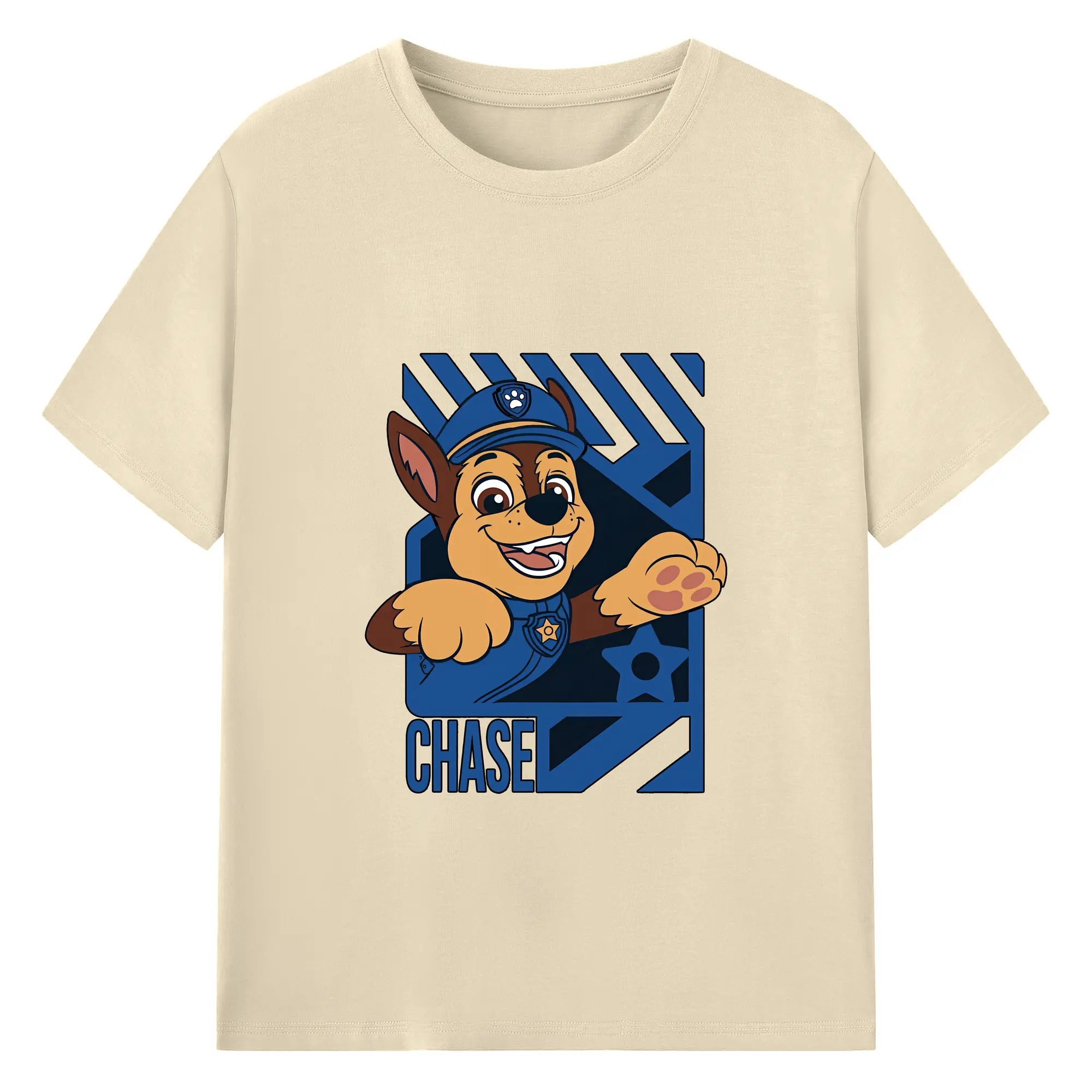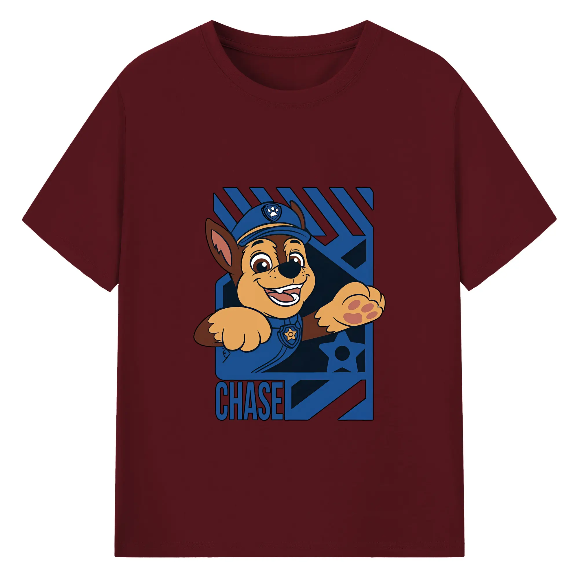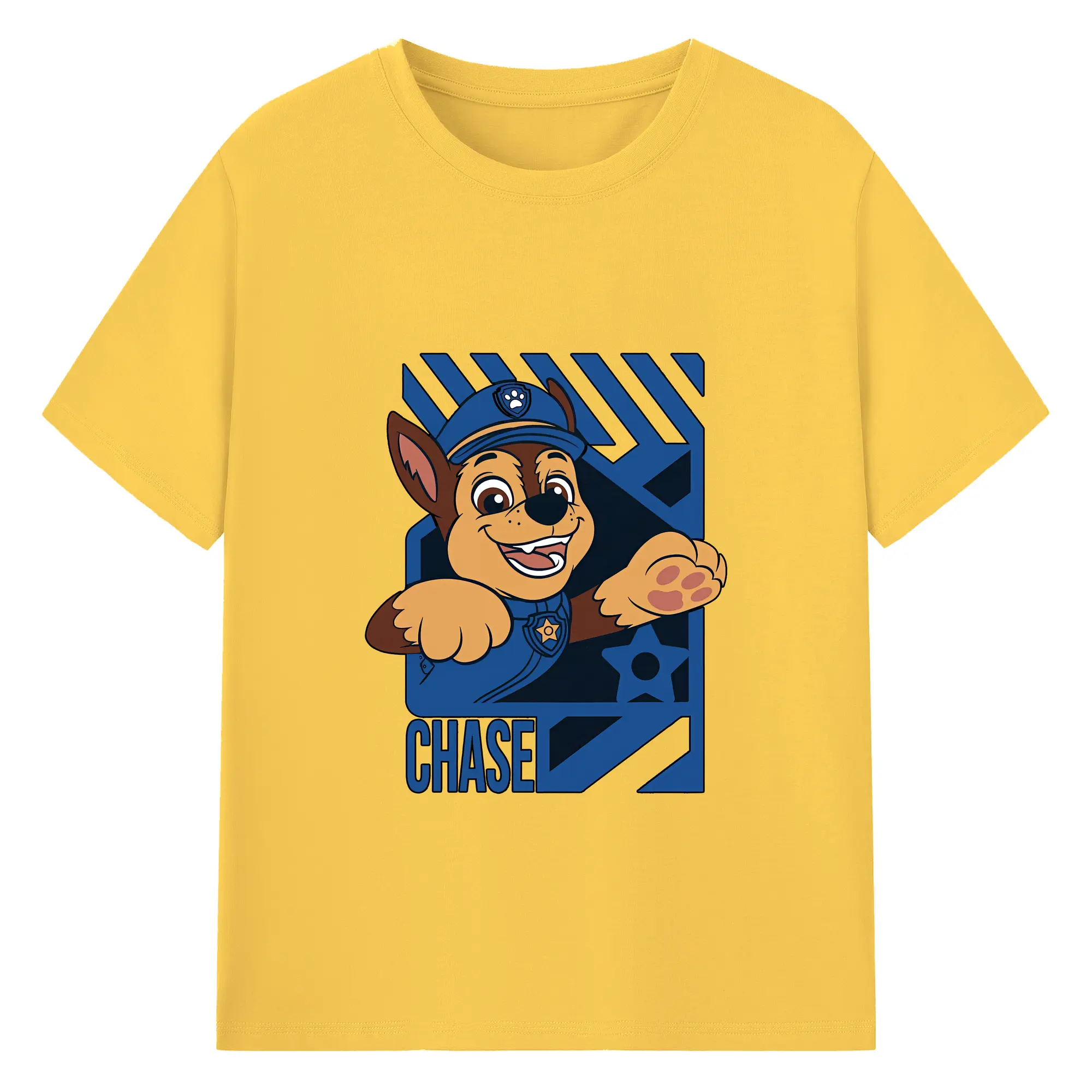 パウ・パトロール グッズ チェイス - 綿100% 半袖Tシャツ ・ バックプリント ・ 快適 通気性 ・ 日常使い 散歩 スポーツ用