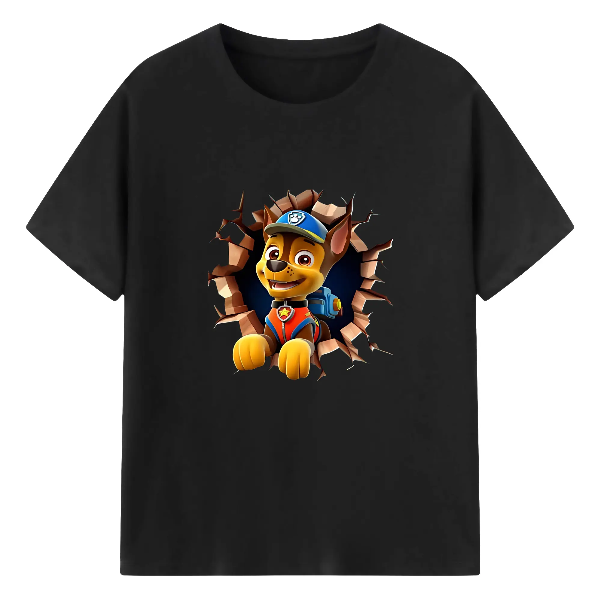 パウ・パトロール グッズ チェイス - 綿100% 半袖Tシャツ ・ バックプリント ・ 快適 通気性 ・ 日常使い 散歩 スポーツ用