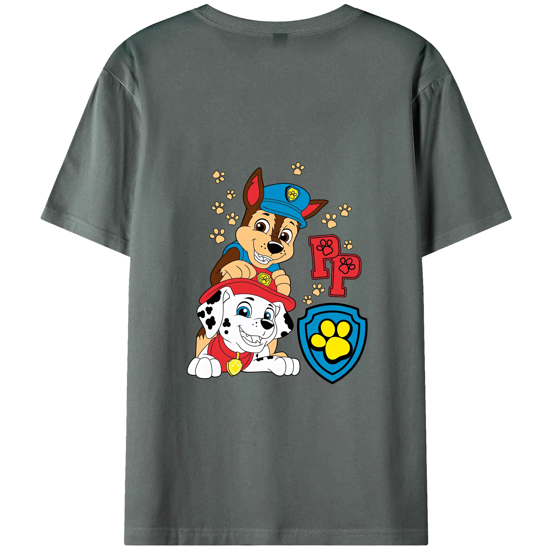 パウ・パトロール グッズ チェイス - 綿100% ヴィンテージ風 半袖Tシャツ ・ 背面プリント ・ 柔らか肌触り ・ 通気性 快適 ・ スポーツ カジュアル 外出用