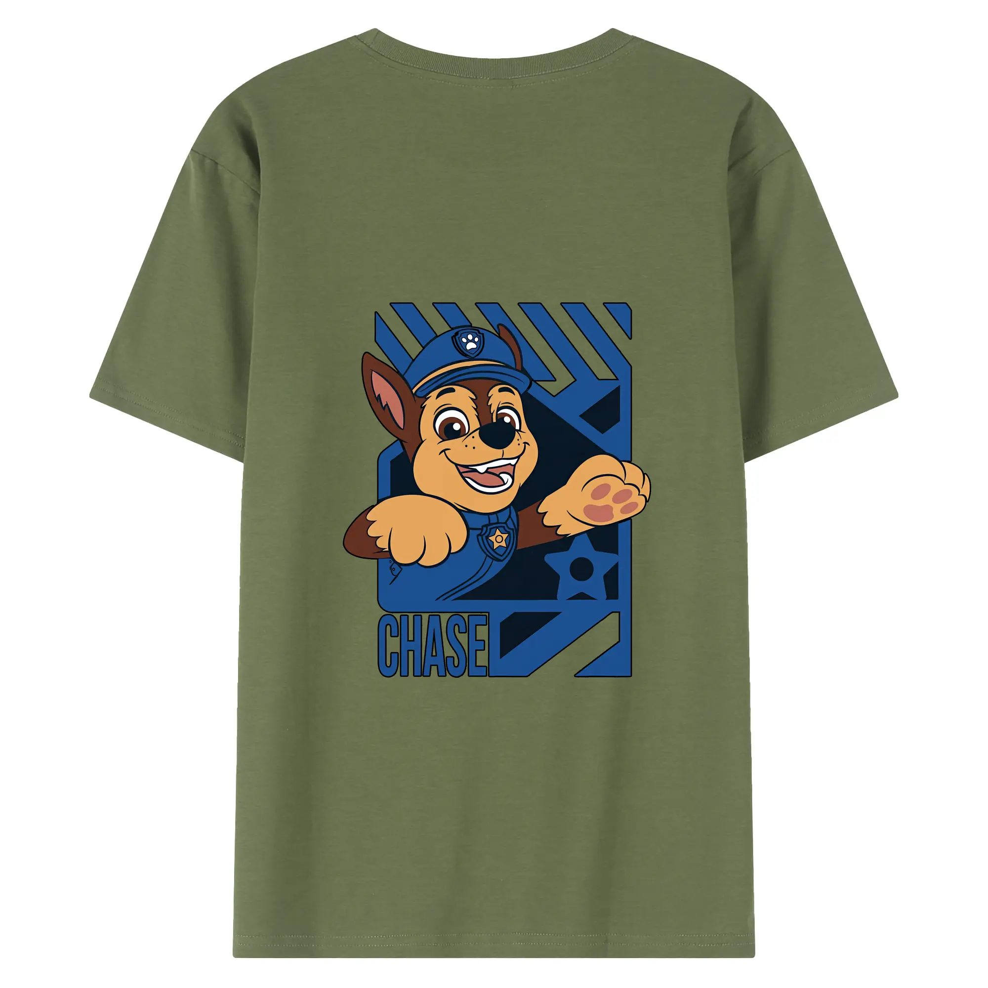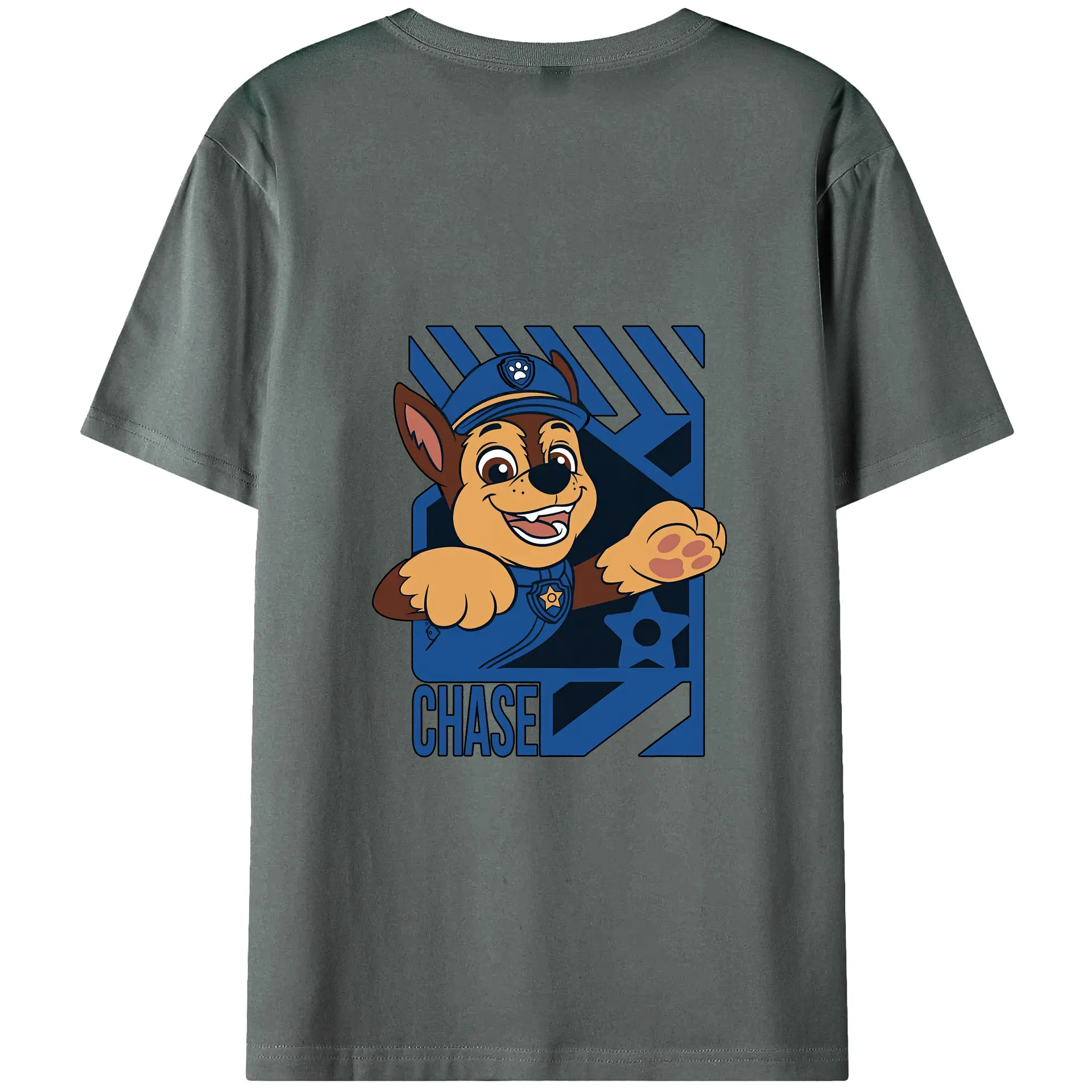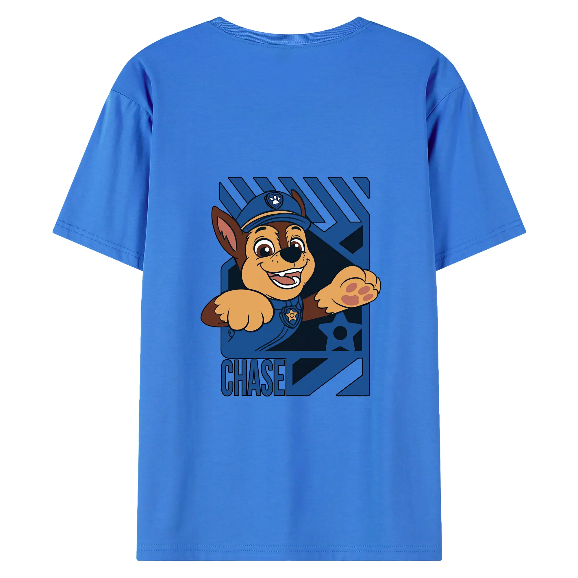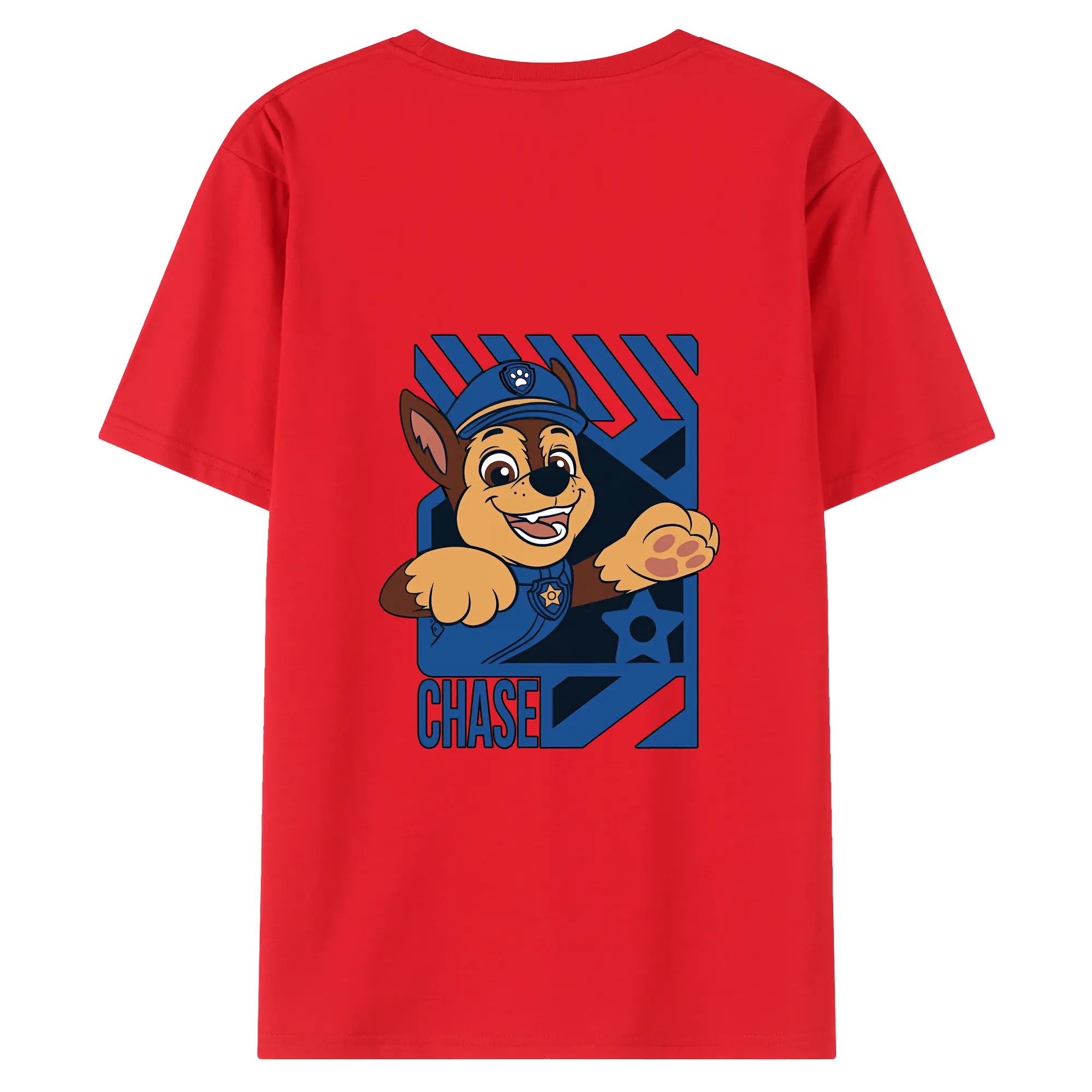 パウ・パトロール グッズ チェイス - 綿100% 半袖Tシャツ ・ フロントプリント ・ 快適 通気性 ・ 日常使い 散歩 スポーツ用
