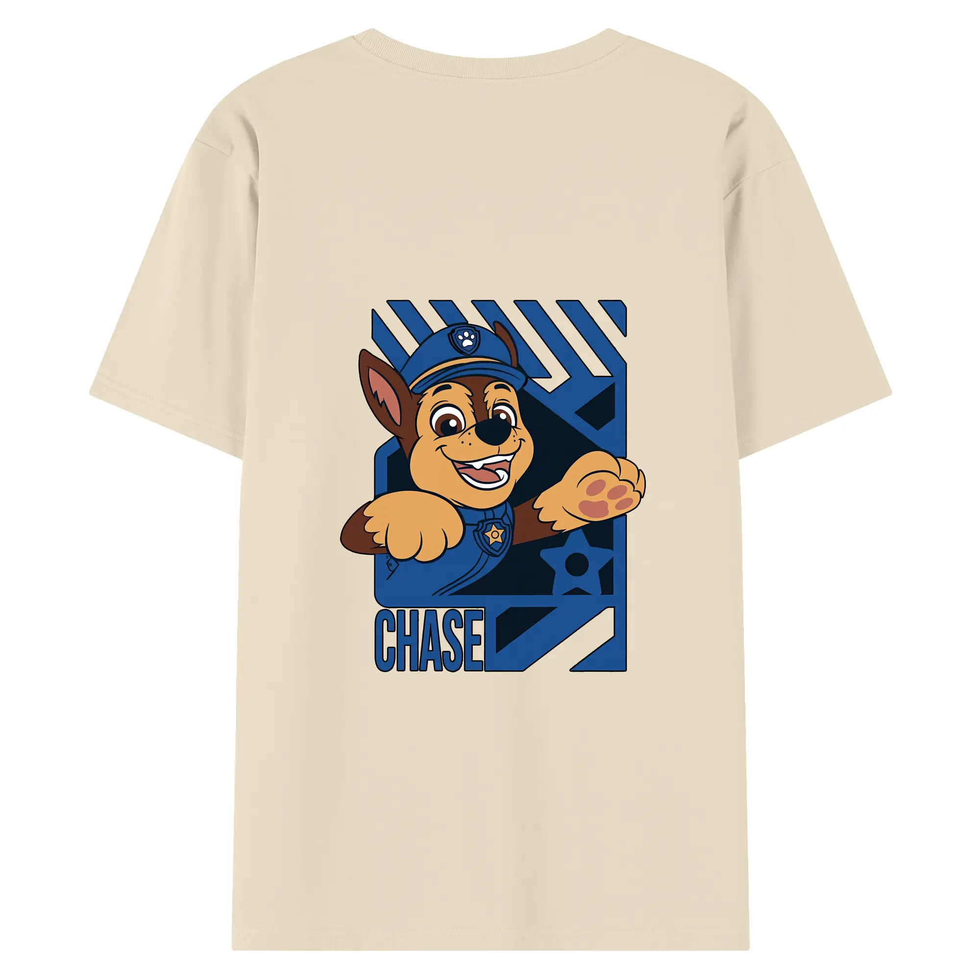 パウ・パトロール グッズ チェイス - 綿100% ヴィンテージ風 半袖Tシャツ ・ 背面プリント ・ 柔らか肌触り ・ 通気性 快適 ・ スポーツ カジュアル 外出用