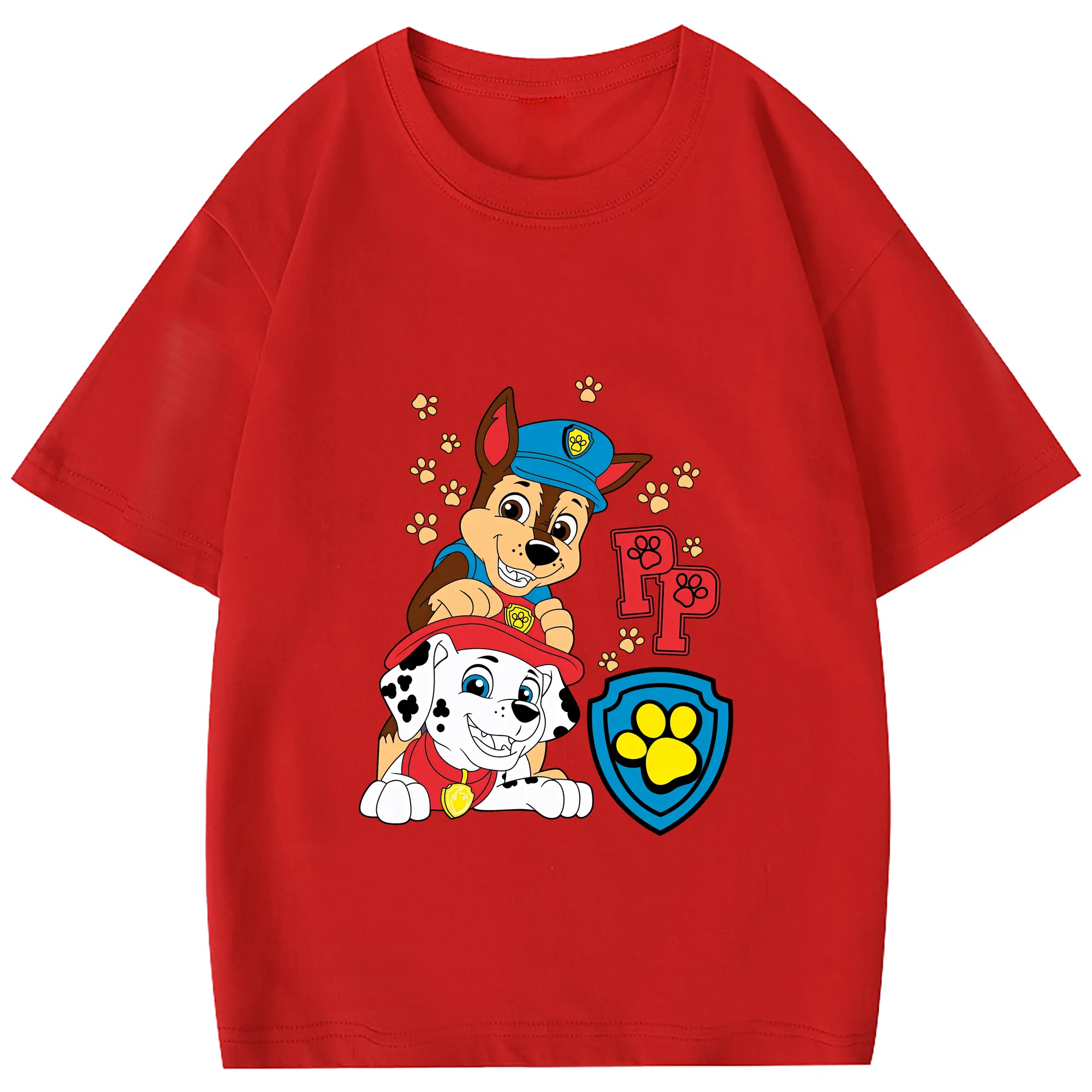 パウ・パトロール グッズ チェイス - 綿100% 半袖Tシャツ ・ バックプリント ・ 快適 通気性 ・ 日常使い 散歩 スポーツ用