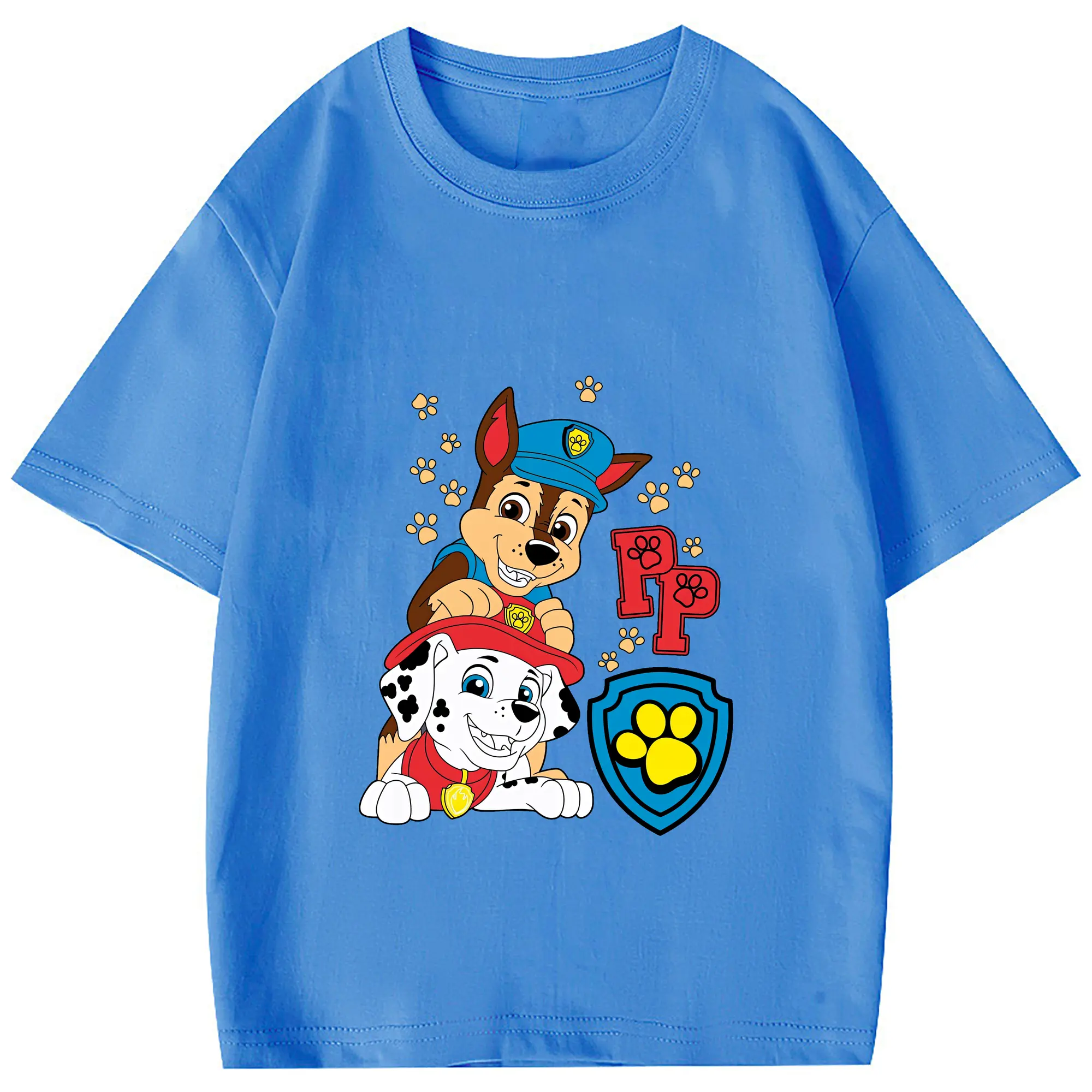 パウ・パトロール グッズ チェイス - 綿100% 半袖Tシャツ ・ フロントプリント ・ 快適 通気性 ・ 日常使い 散歩 スポーツ用