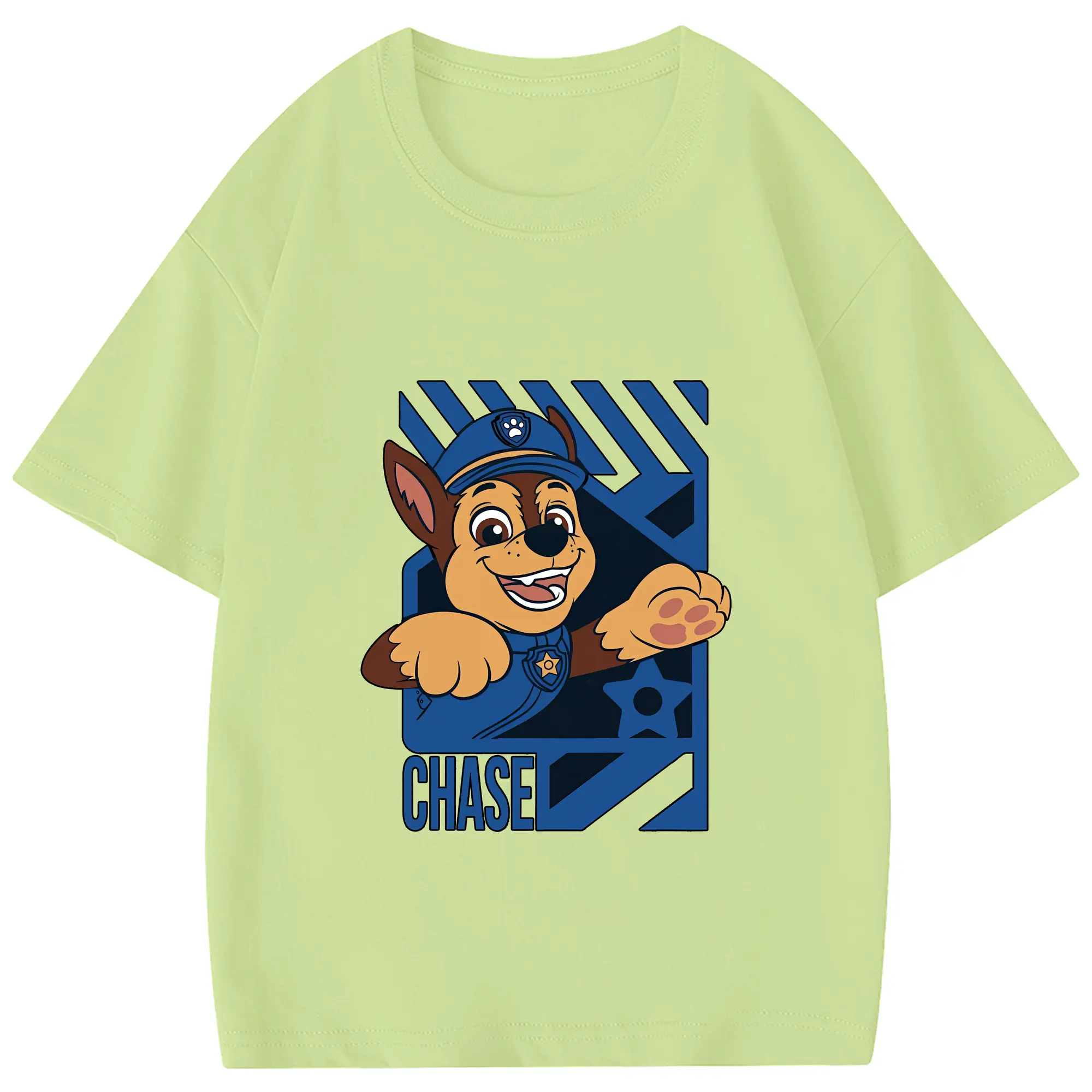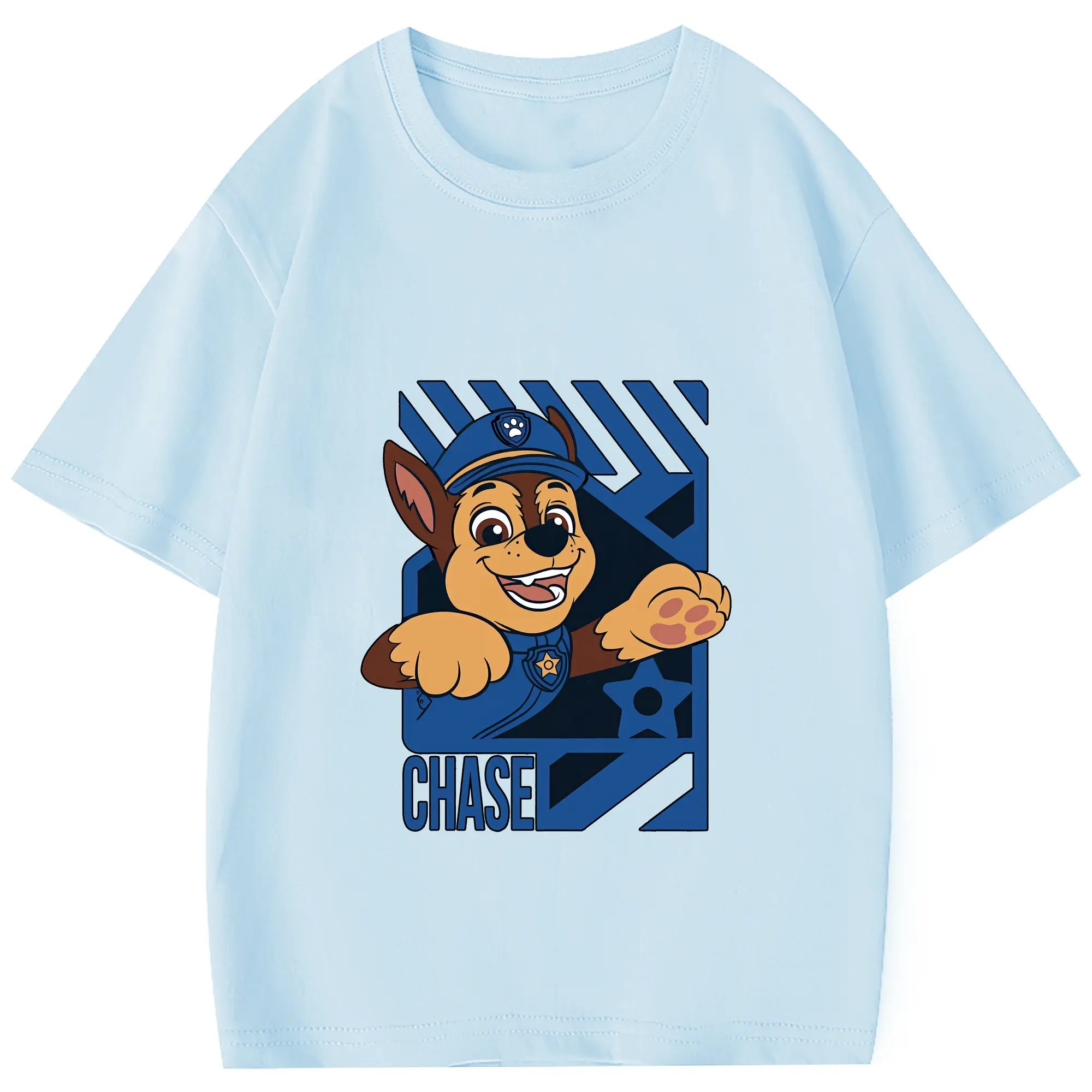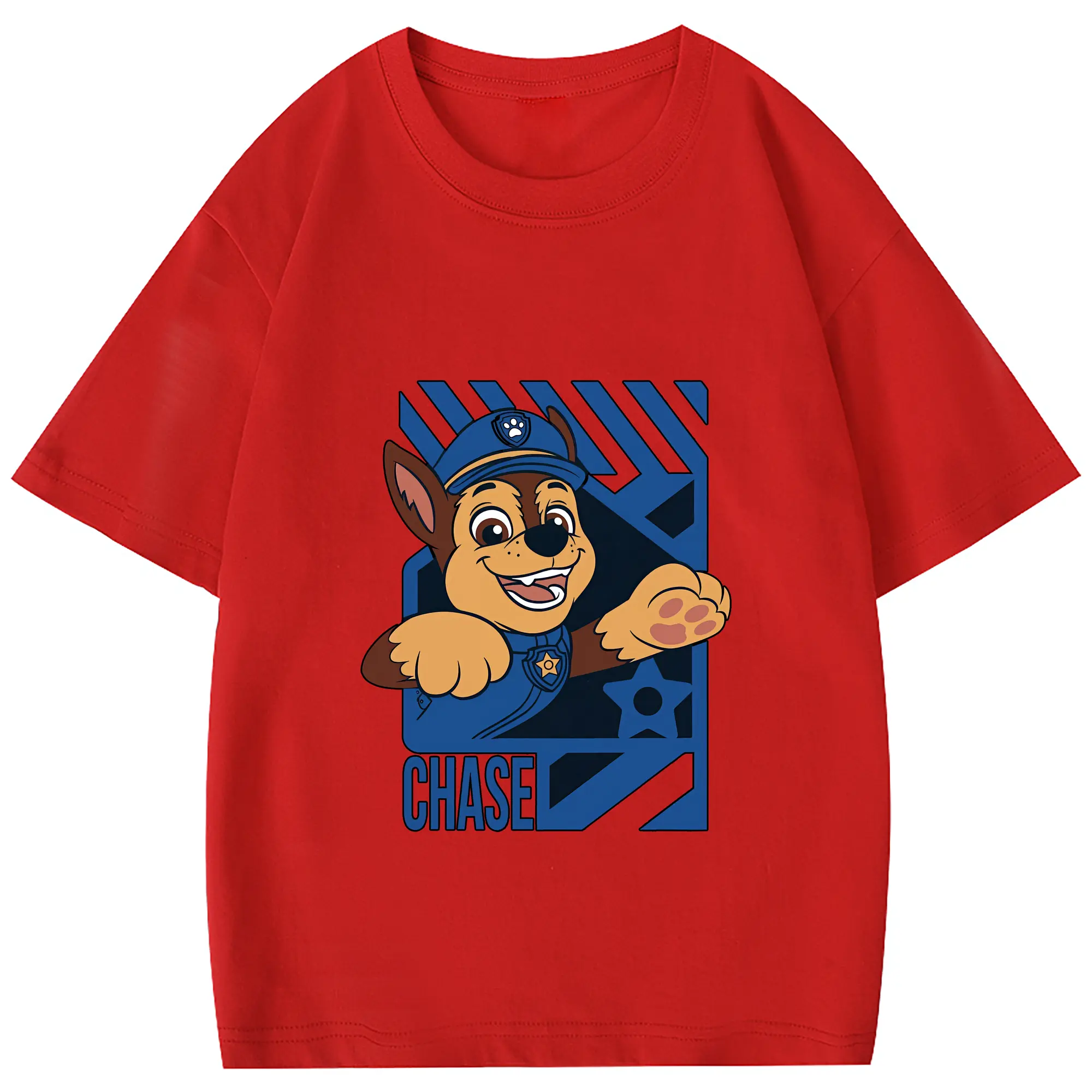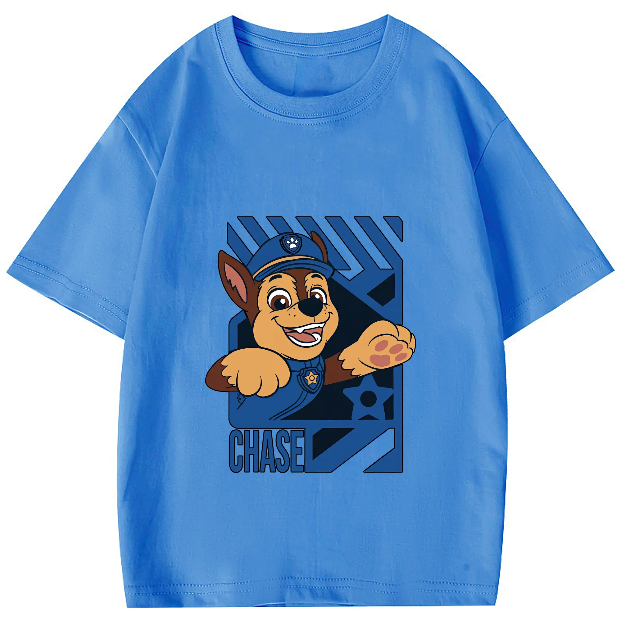 パウ・パトロール グッズ チェイス - 綿100% 半袖Tシャツ ・ フロントプリント ・ 快適 通気性 ・ 日常使い 散歩 スポーツ用