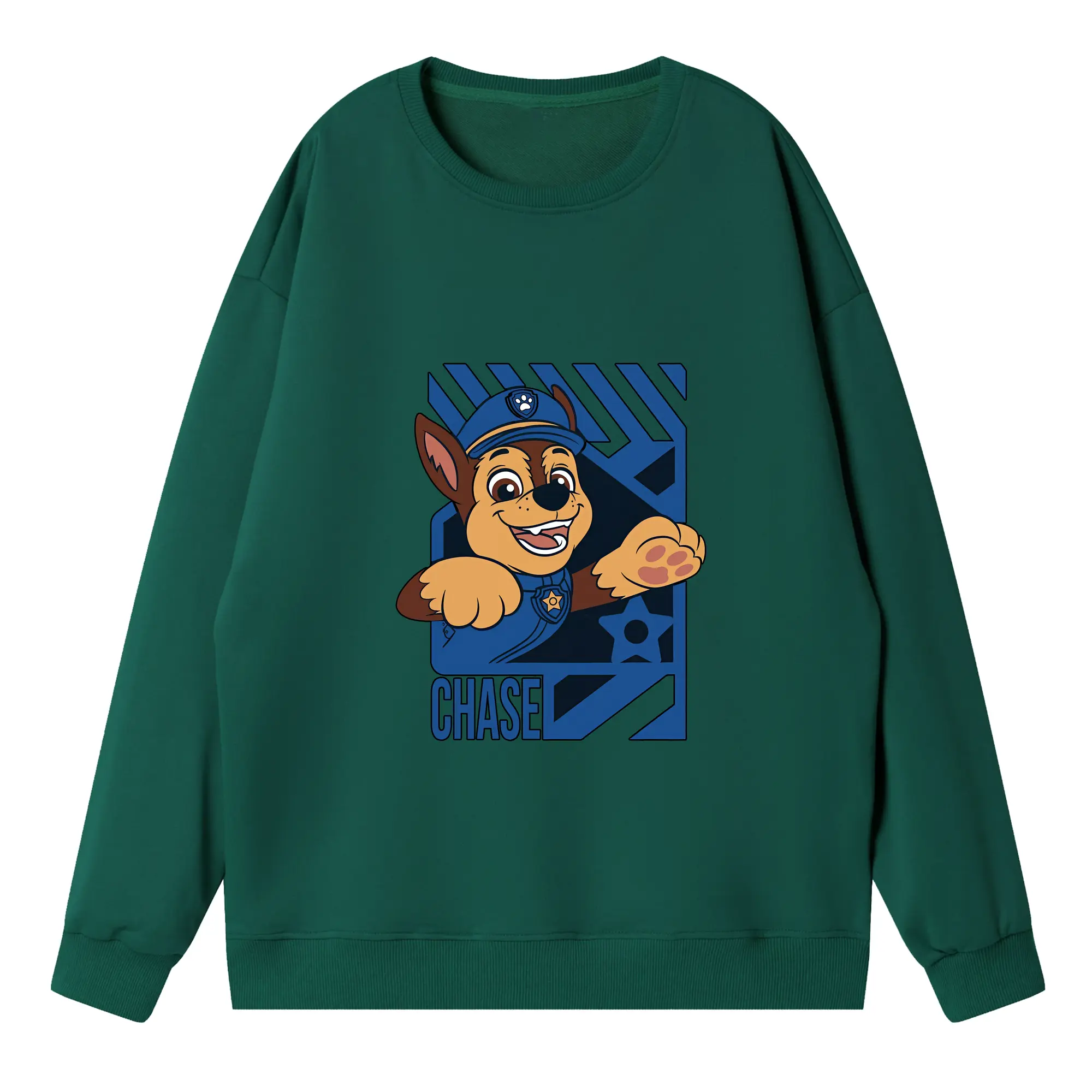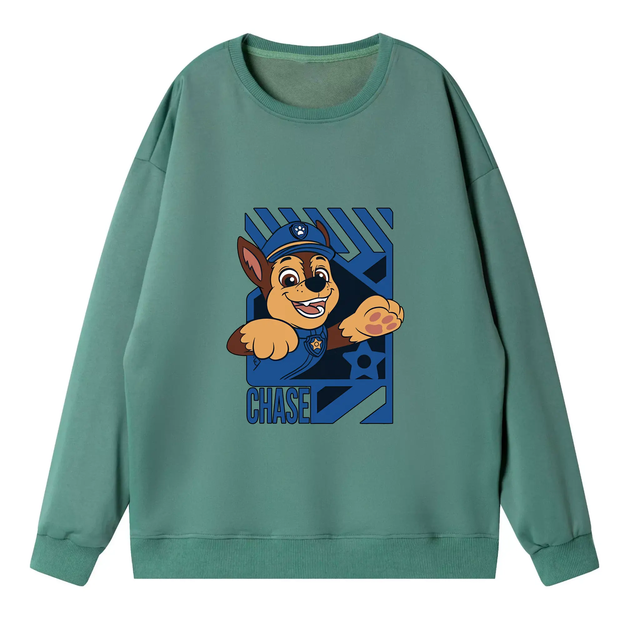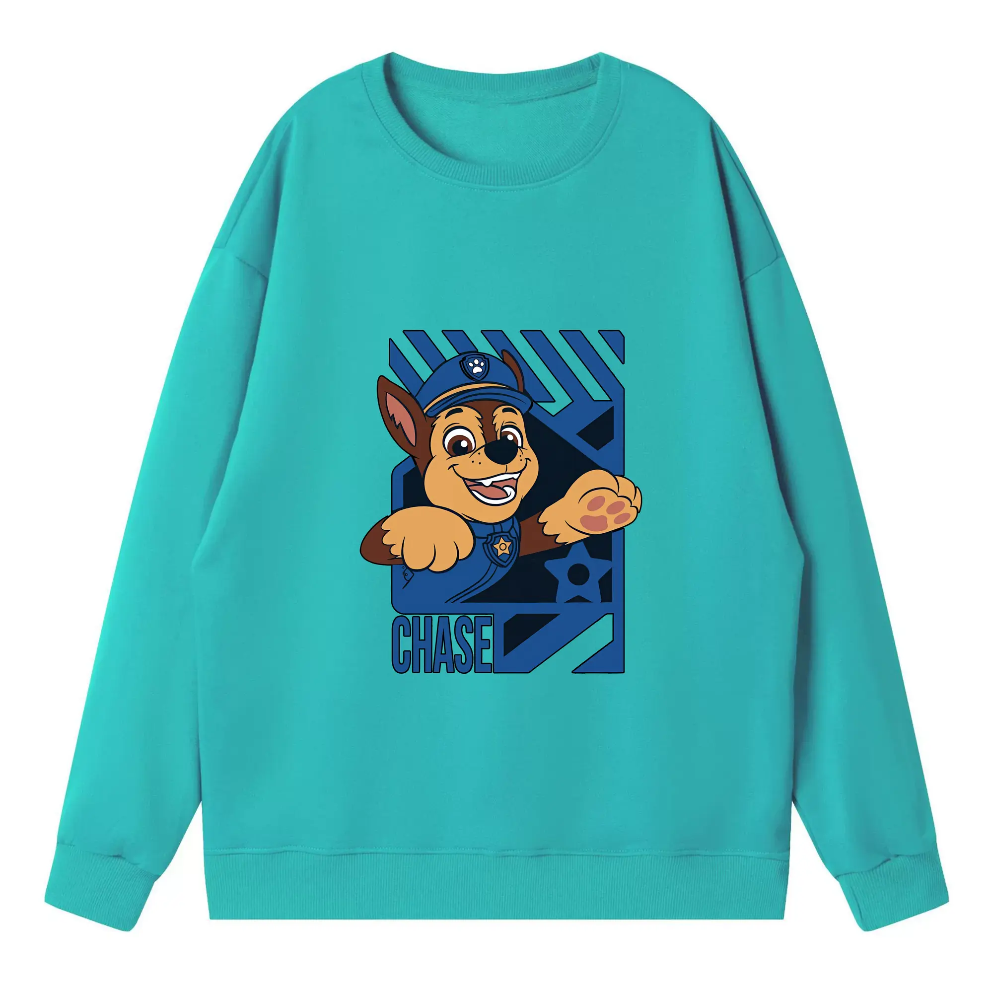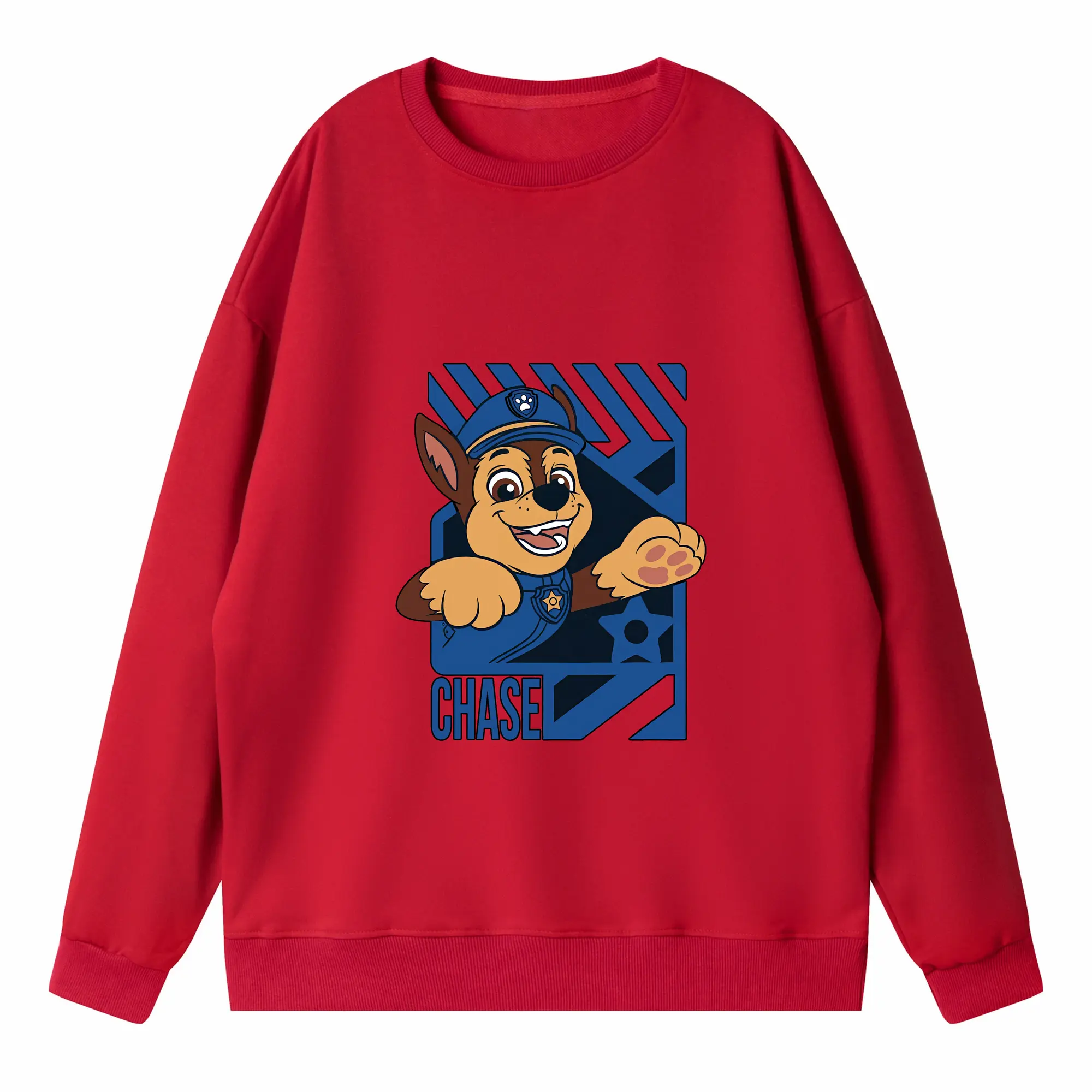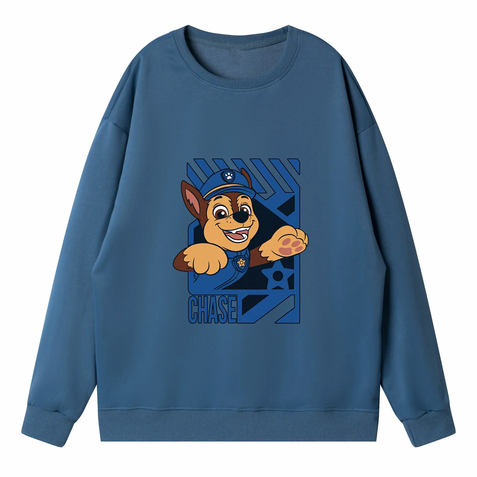 パウ・パトロール グッズ チェイス - 高品質 クルーネック スウェット ・ コットン59% ポリエステル41% ・ ユニセックス 長袖 トレーナー ・ カジュアル デイリー スポーツ 散歩用