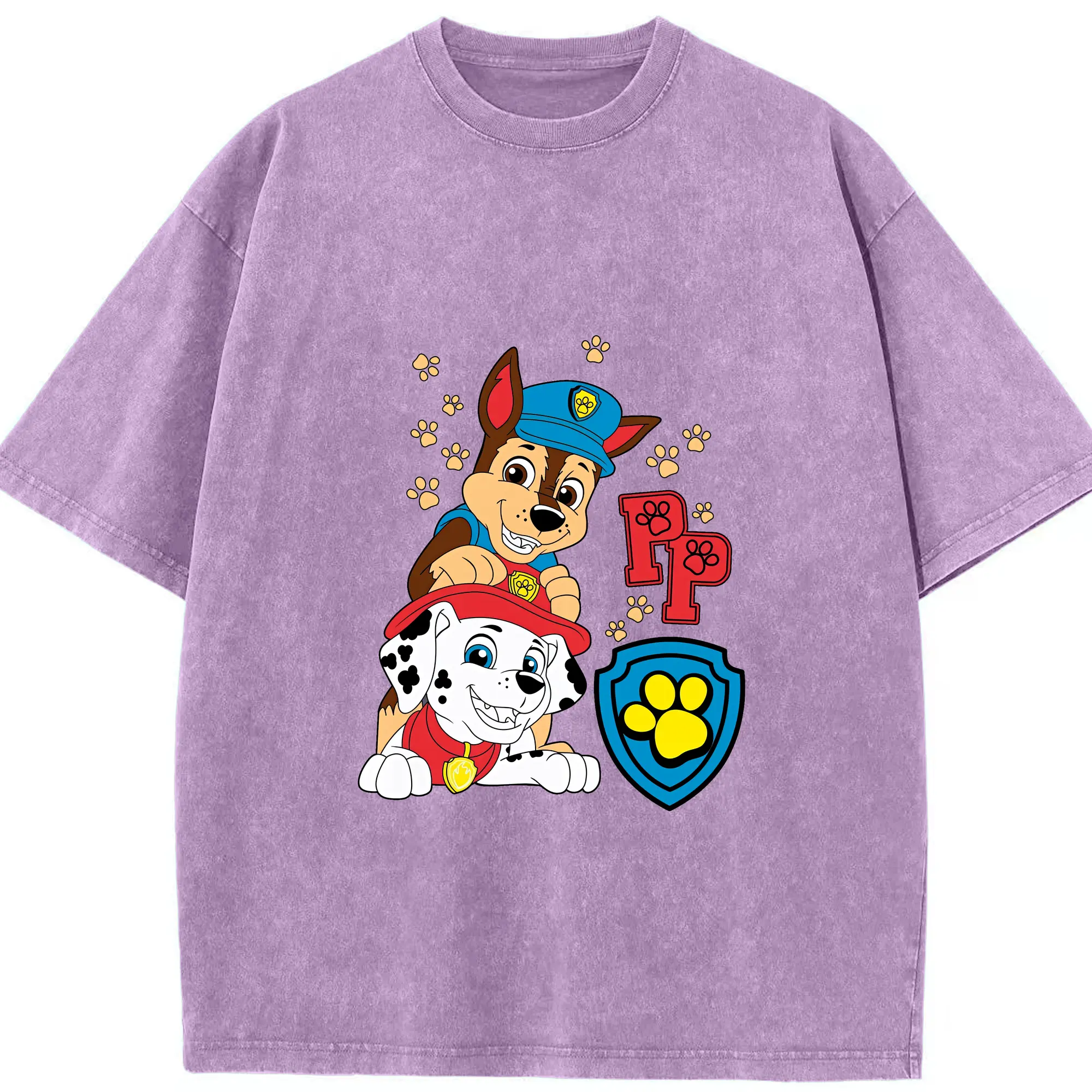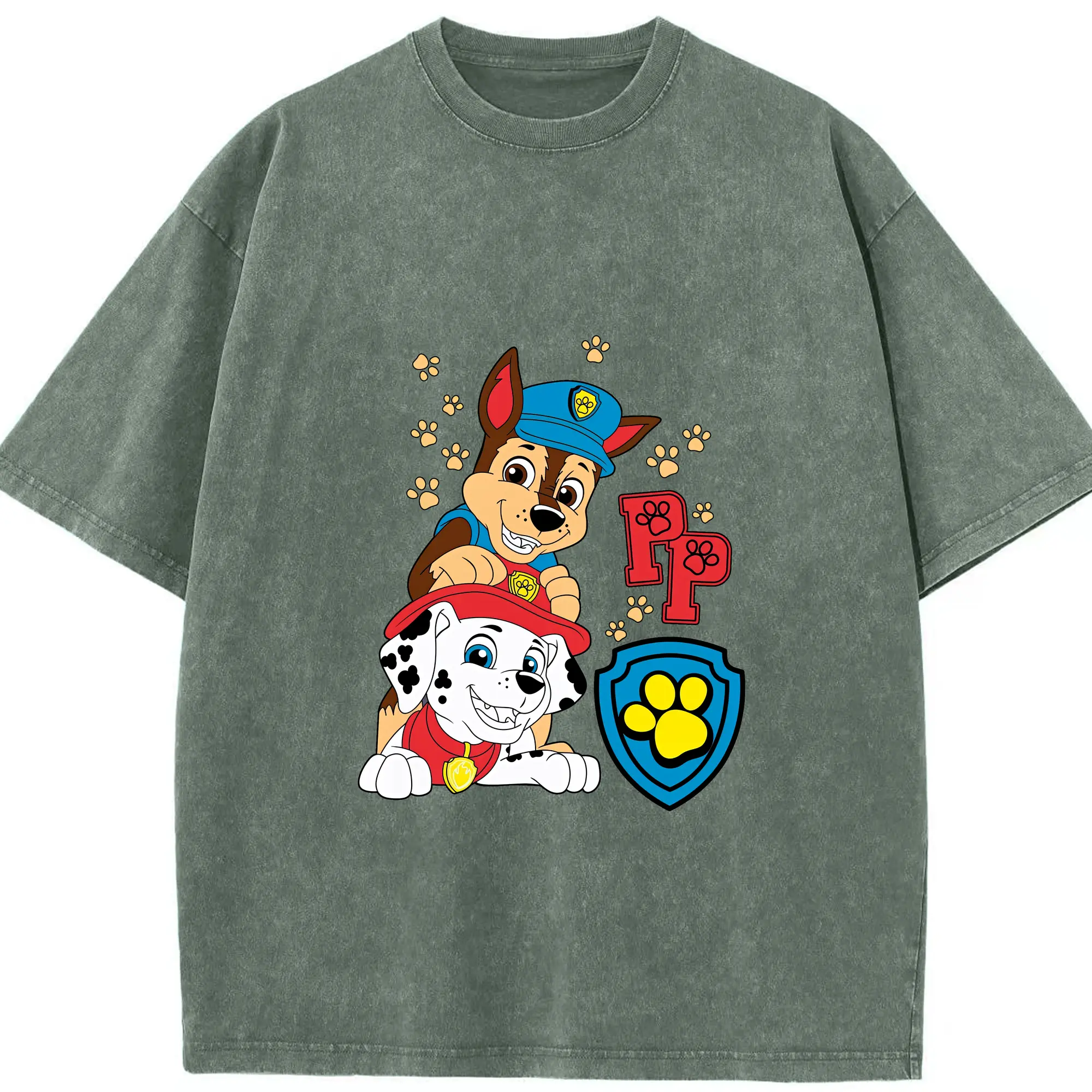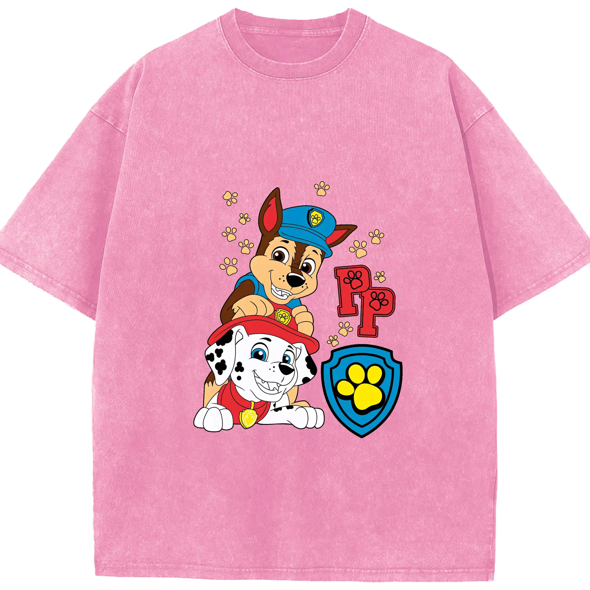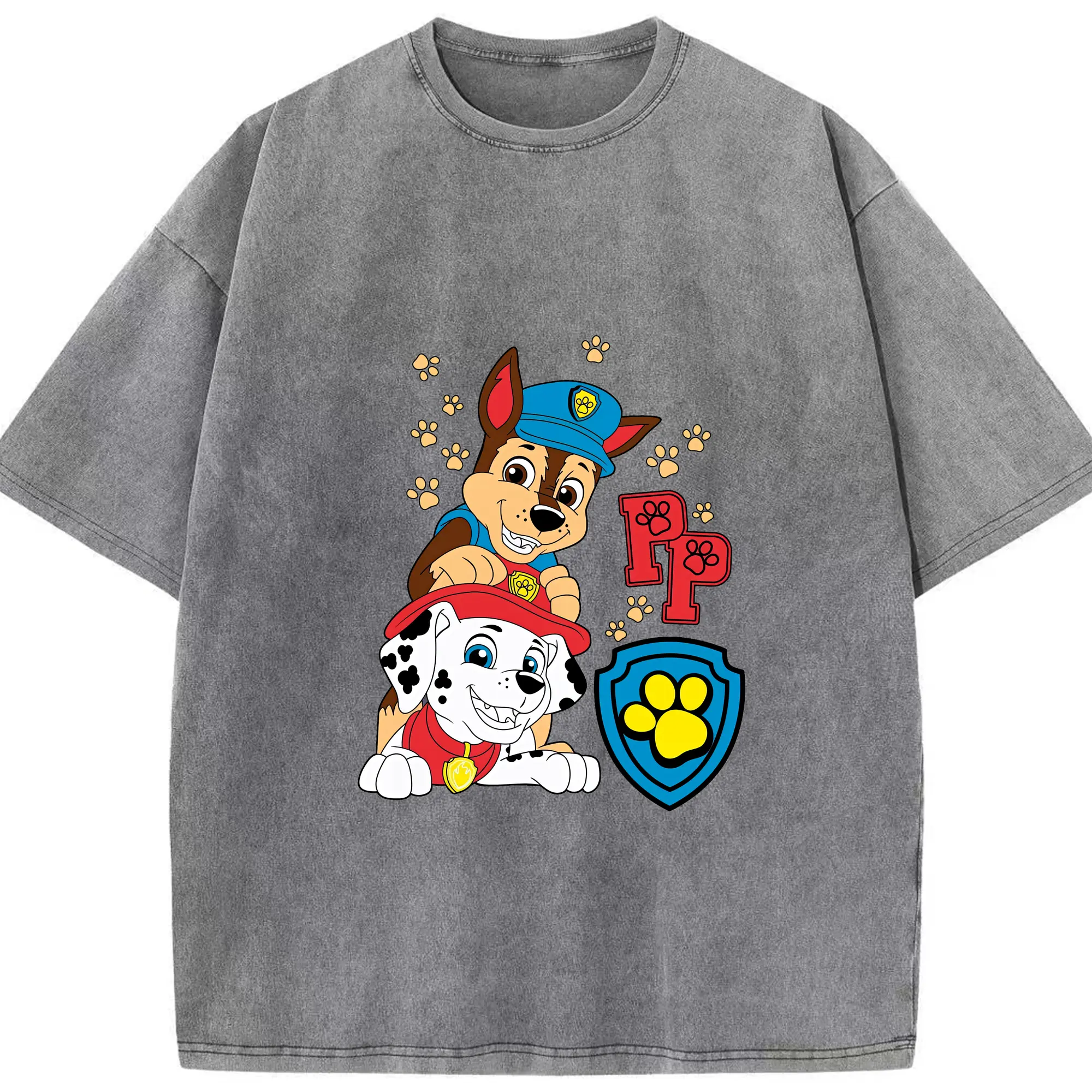 パウ・パトロール グッズ チェイス - 綿100% ヴィンテージ風 半袖Tシャツ ・ 背面プリント ・ 柔らか肌触り ・ 通気性 快適 ・ スポーツ カジュアル 外出用