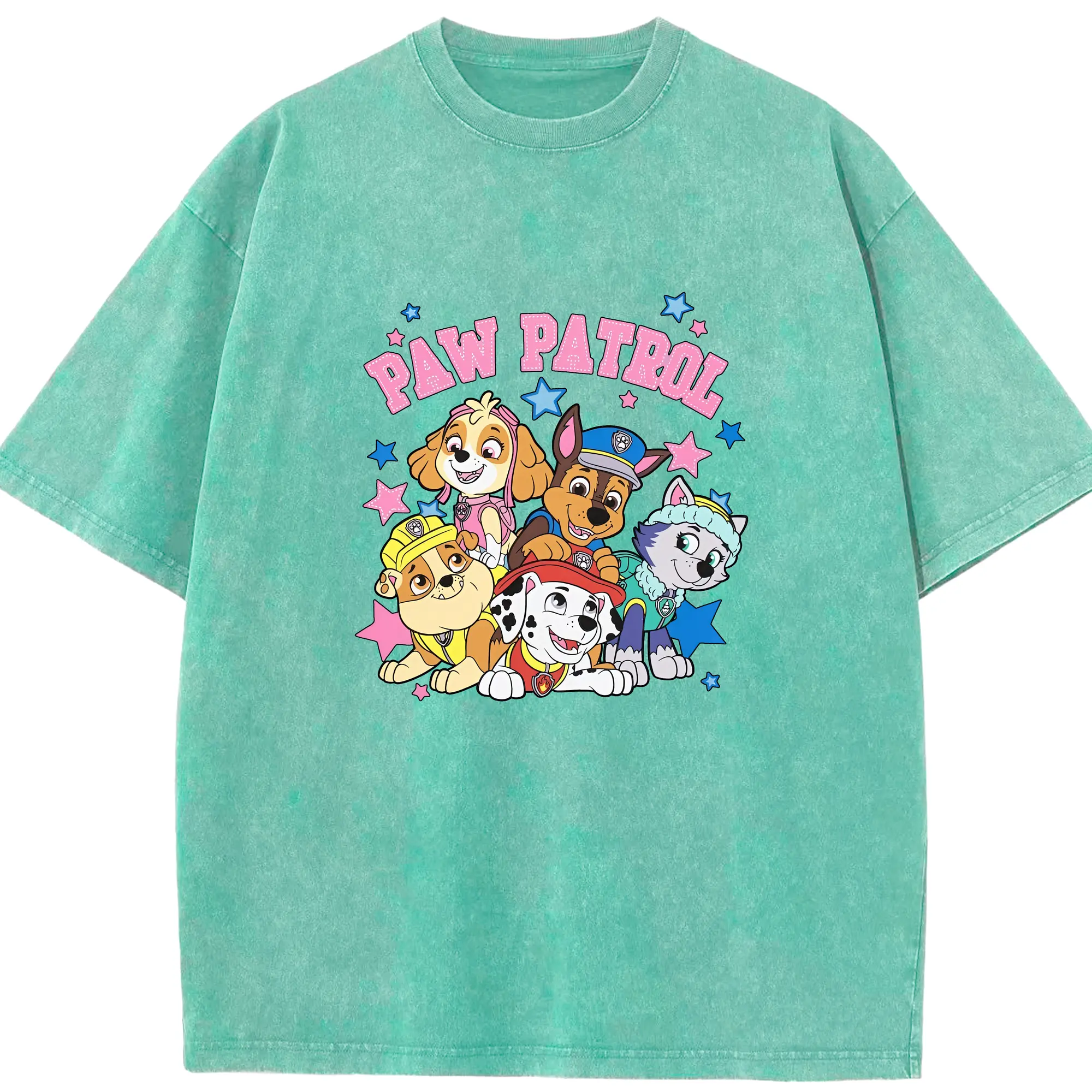 パウ・パトロール グッズ チェイス - 綿100% ヴィンテージ風 半袖Tシャツ ・ 背面プリント ・ 柔らか肌触り ・ 通気性 快適 ・ スポーツ カジュアル 外出用