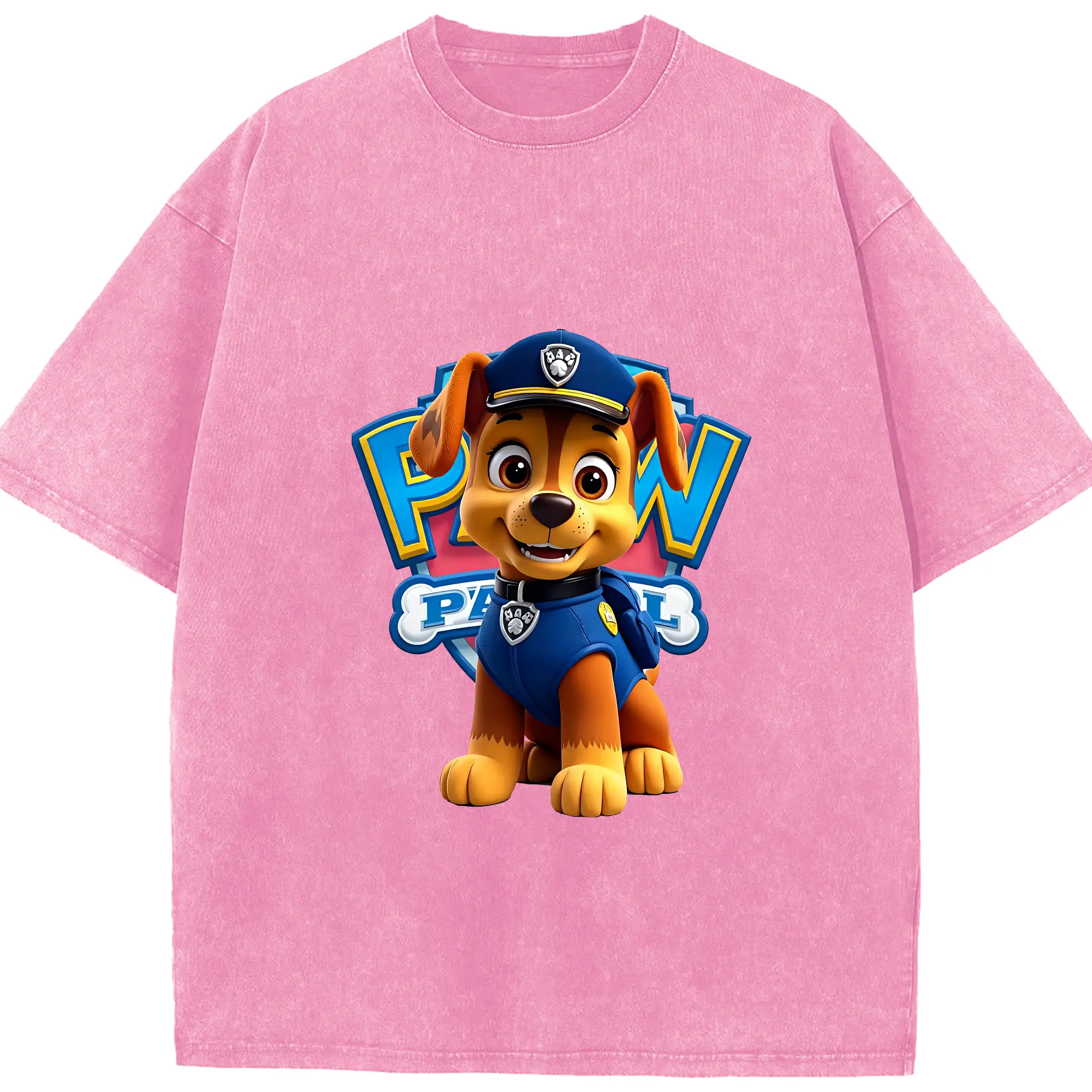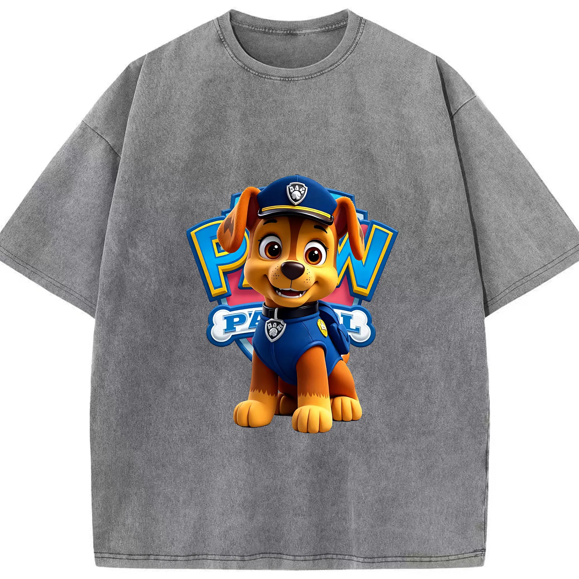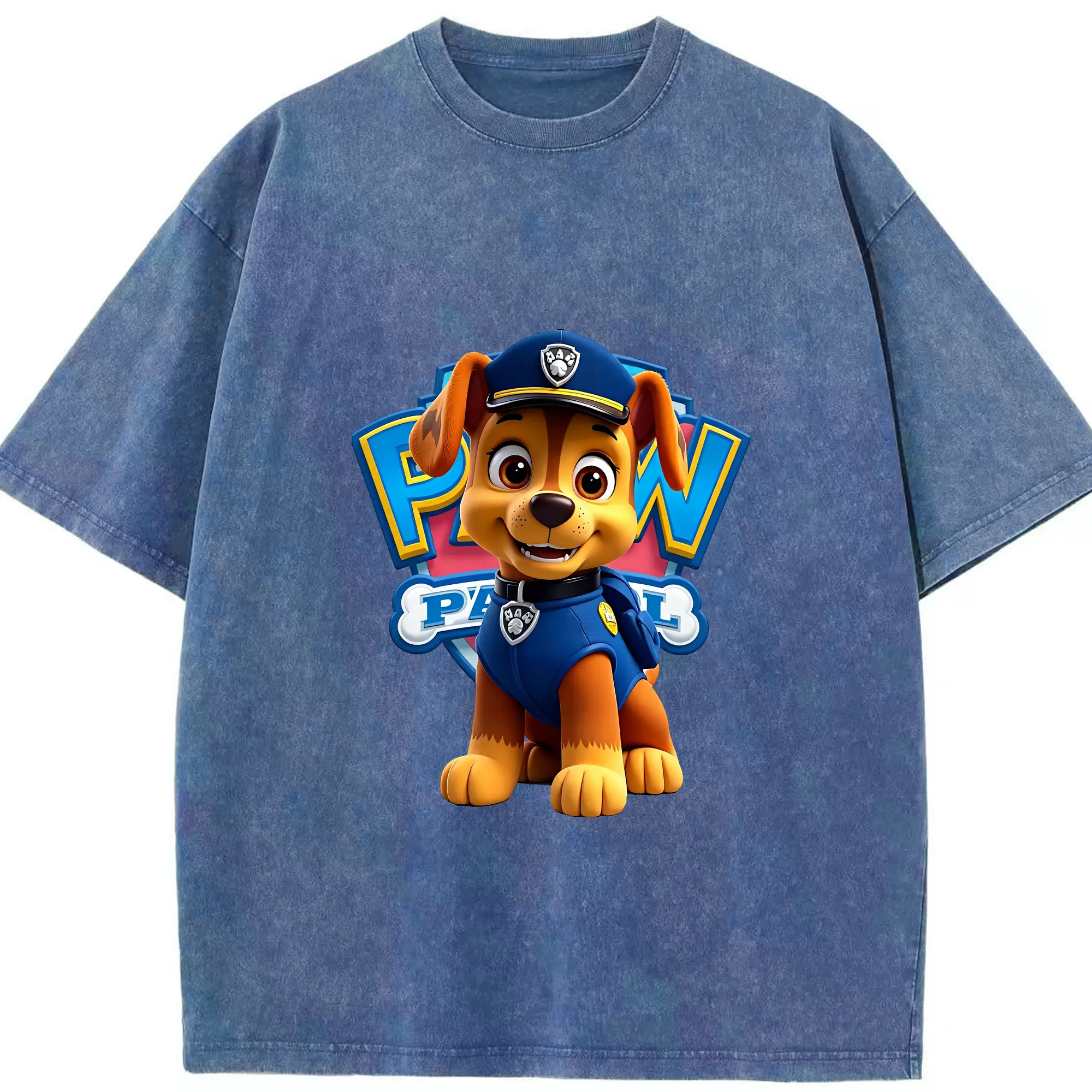 パウ・パトロール グッズ チェイス - 綿100% ヴィンテージ風 半袖Tシャツ ・ 背面プリント ・ 柔らか肌触り ・ 通気性 快適 ・ スポーツ カジュアル 外出用