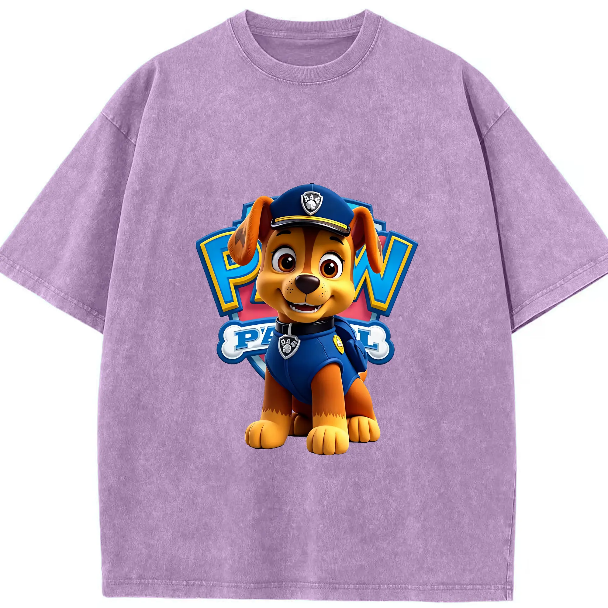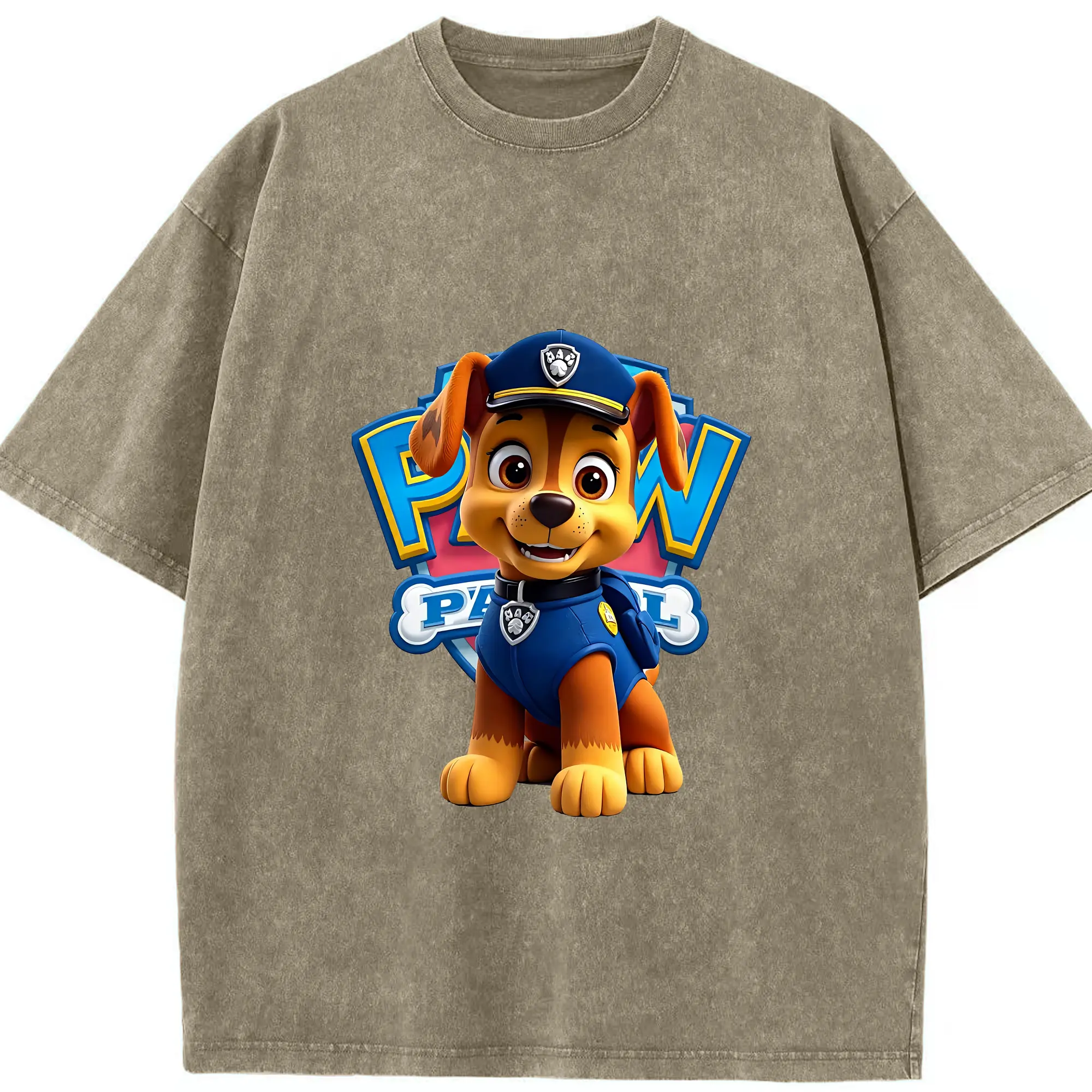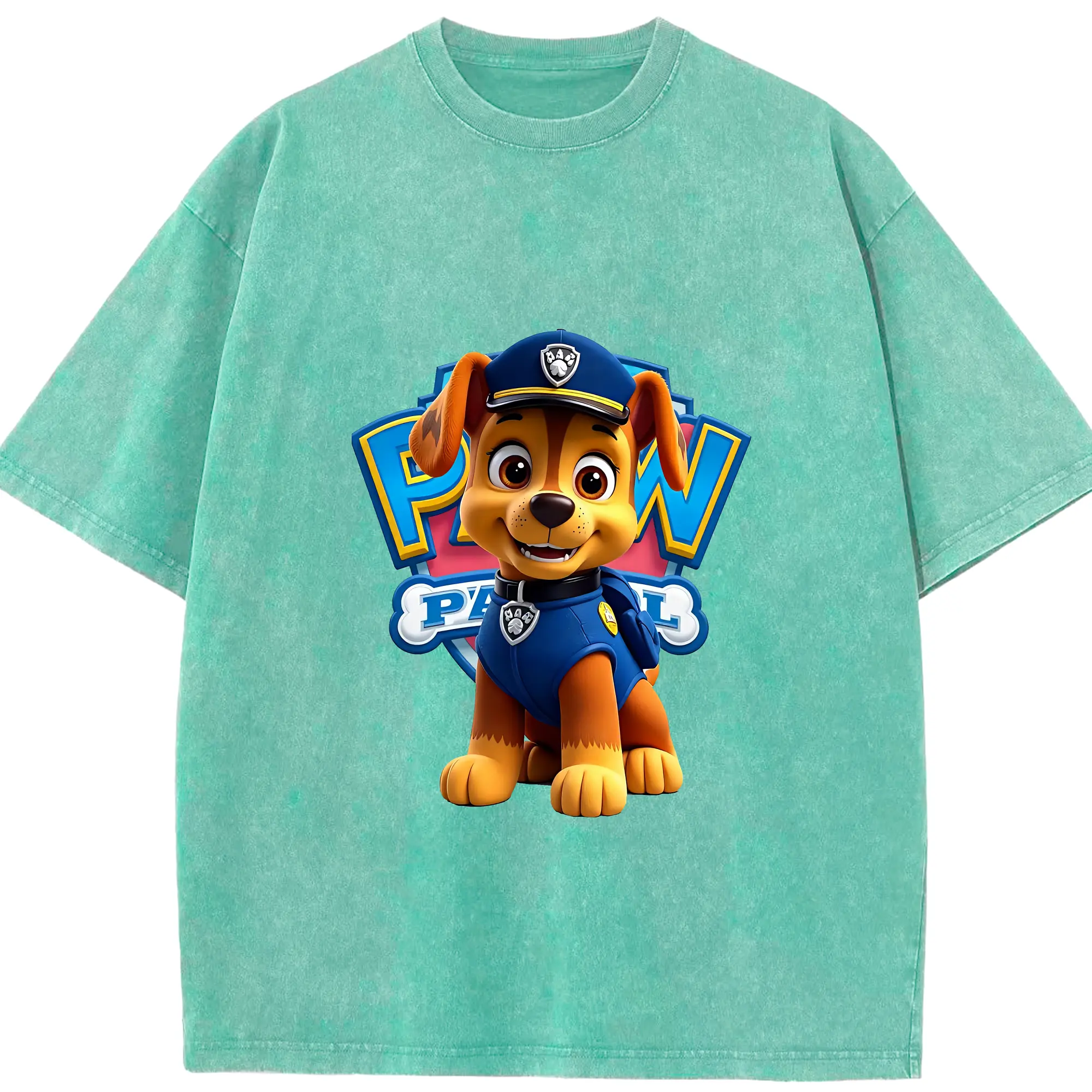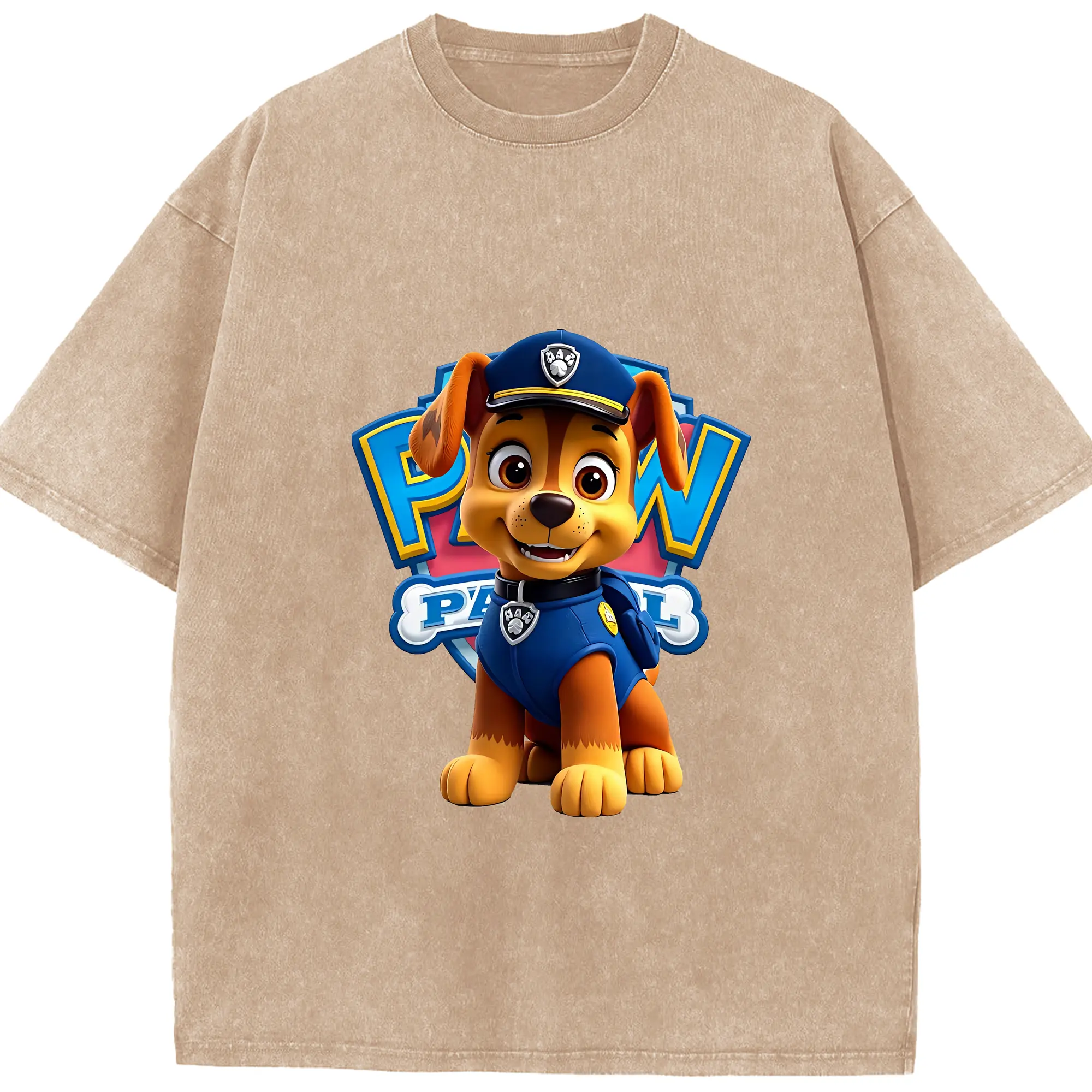 パウ・パトロール グッズ チェイス - 綿100% ヴィンテージ風 半袖Tシャツ ・ 背面プリント ・ 柔らか肌触り ・ 通気性 快適 ・ スポーツ カジュアル 外出用