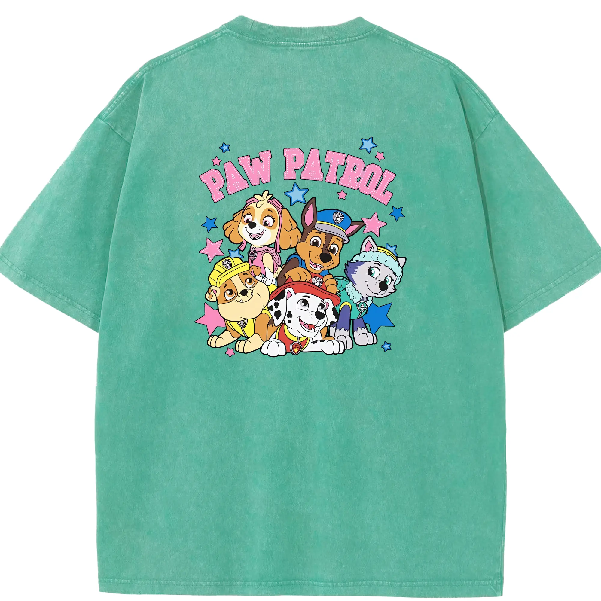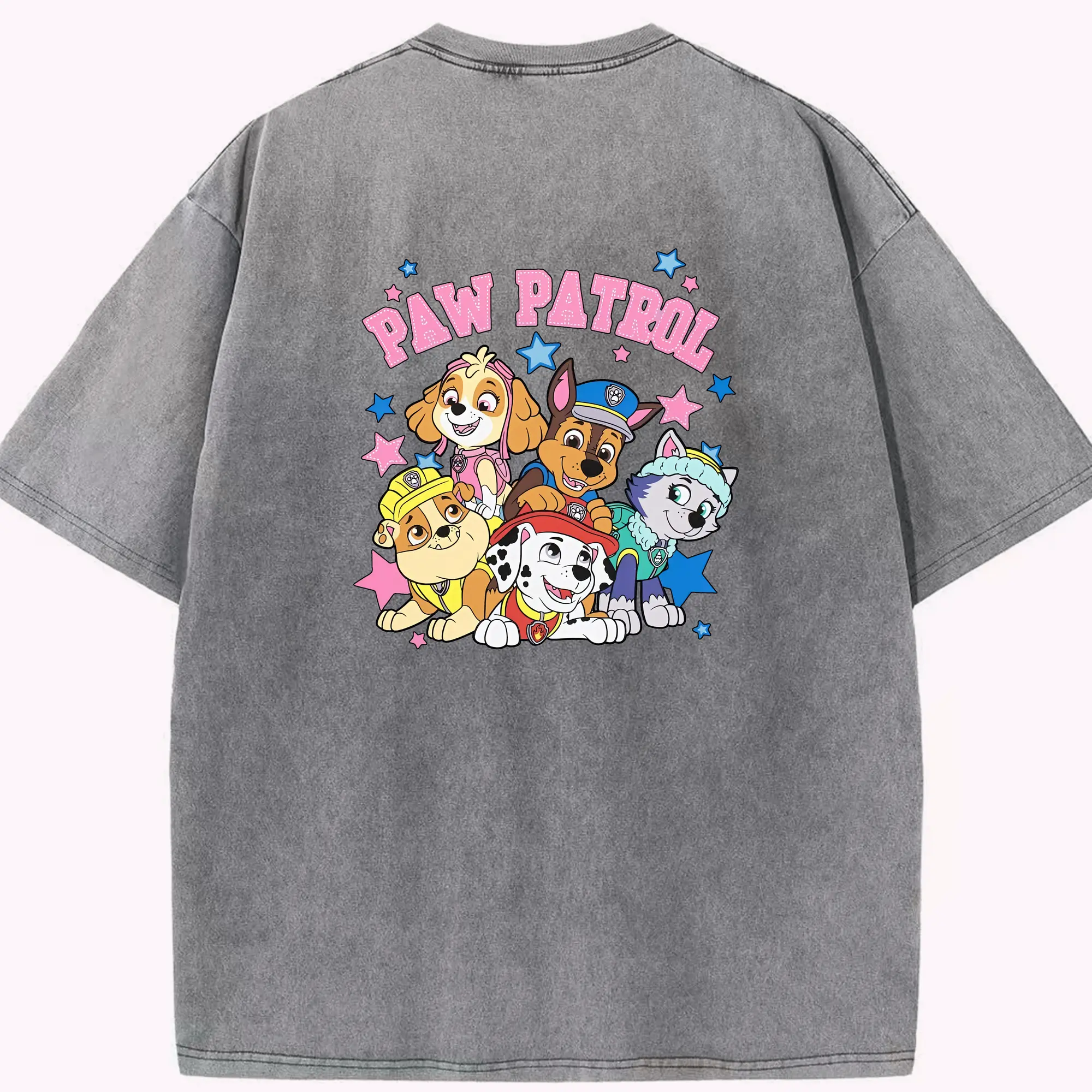 パウ・パトロール グッズ チェイス - 綿100% ヴィンテージ風 半袖Tシャツ ・ フロントプリント ・ 柔らか肌触り ・ 通気性 快適 ・ スポーツ カジュアル 外出用