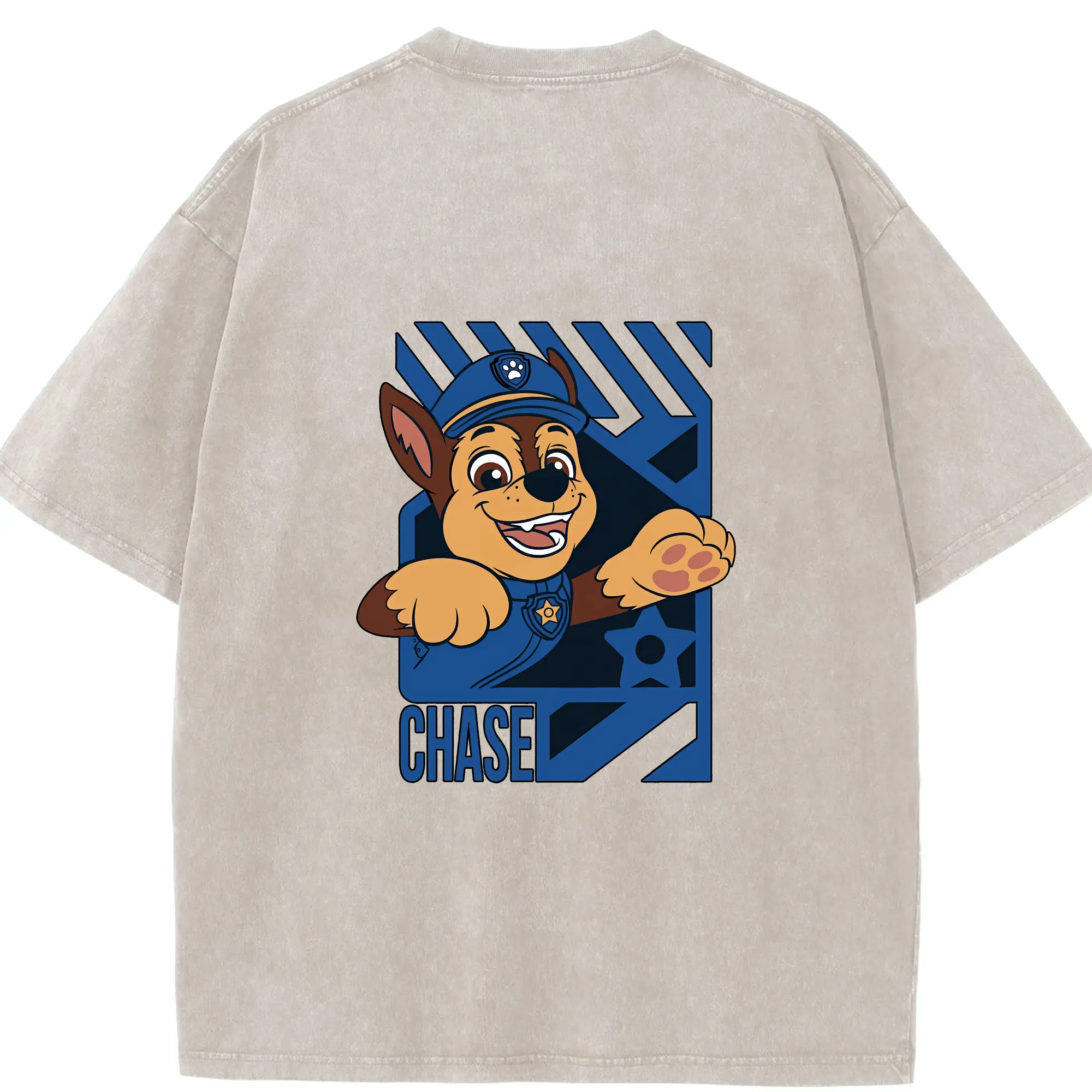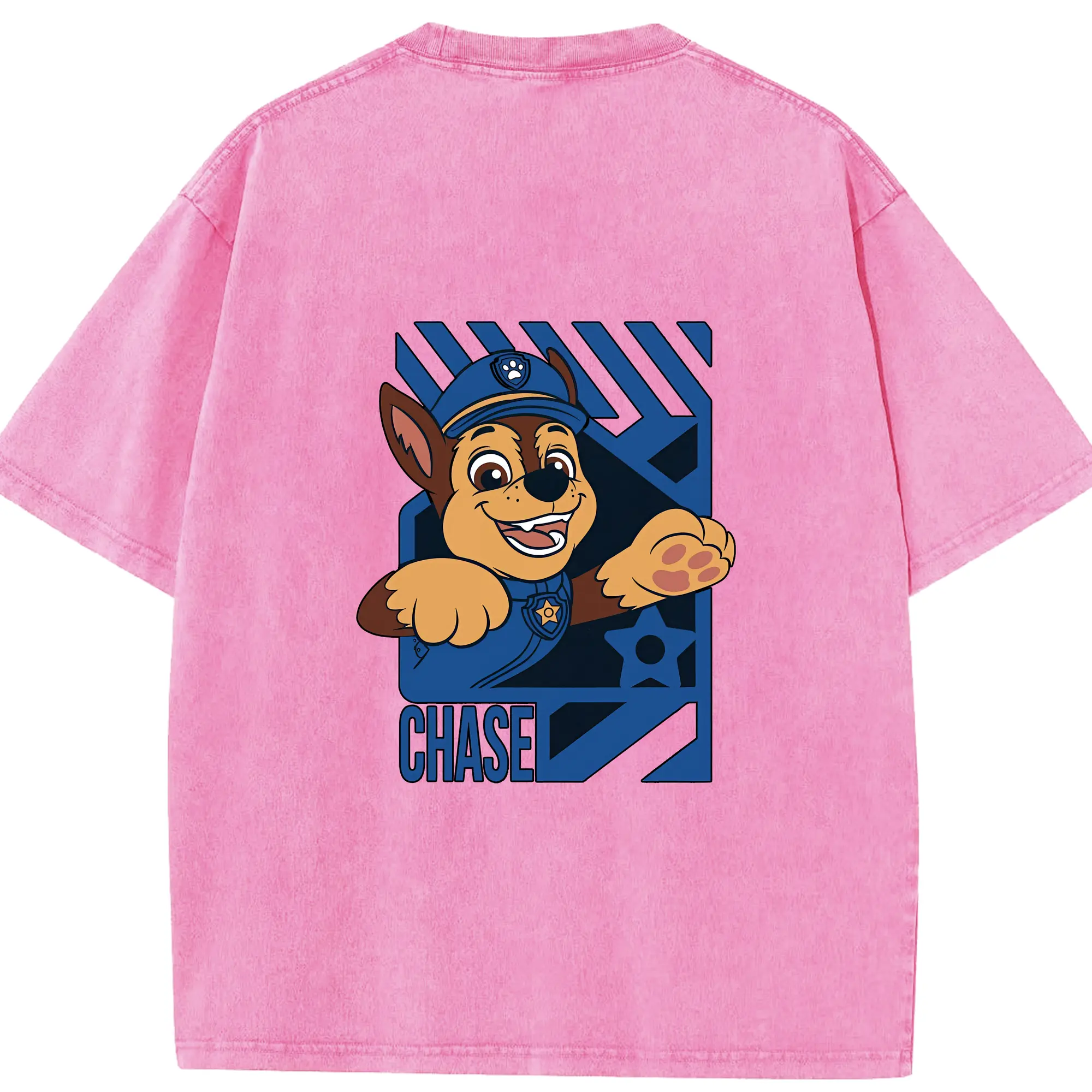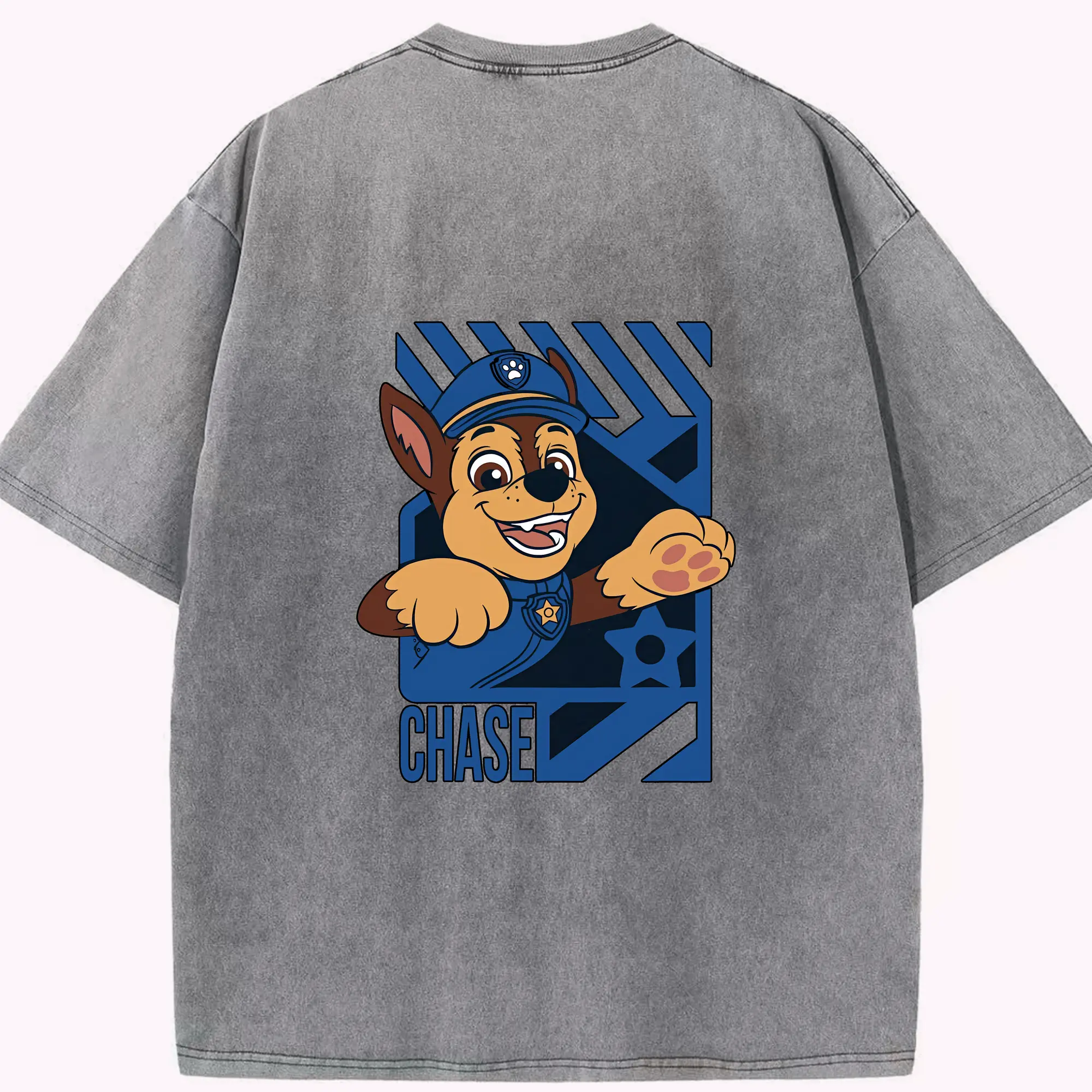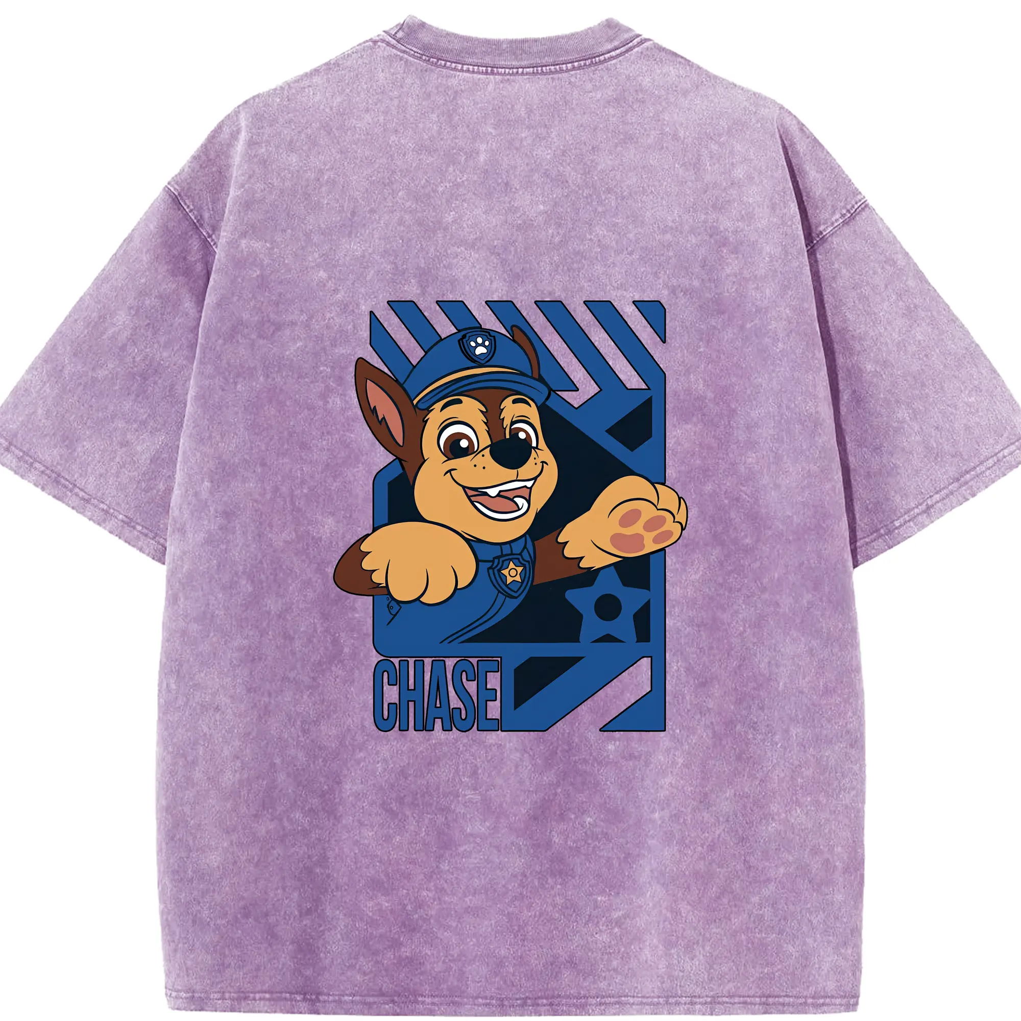 パウ・パトロール グッズ チェイス - 綿100% ヴィンテージ風 半袖Tシャツ ・ フロントプリント ・ 柔らか肌触り ・ 通気性 快適 ・ スポーツ カジュアル 外出用