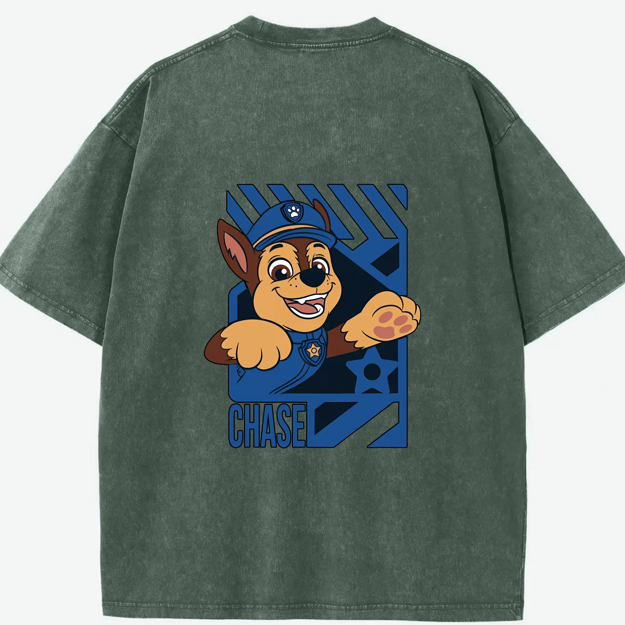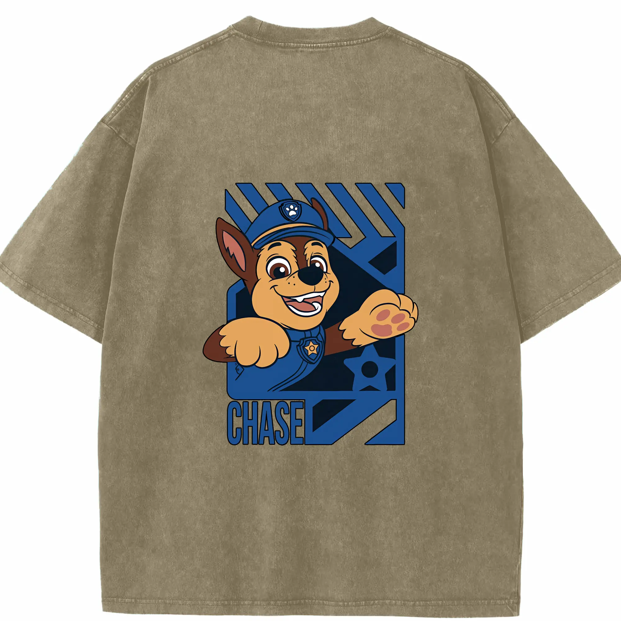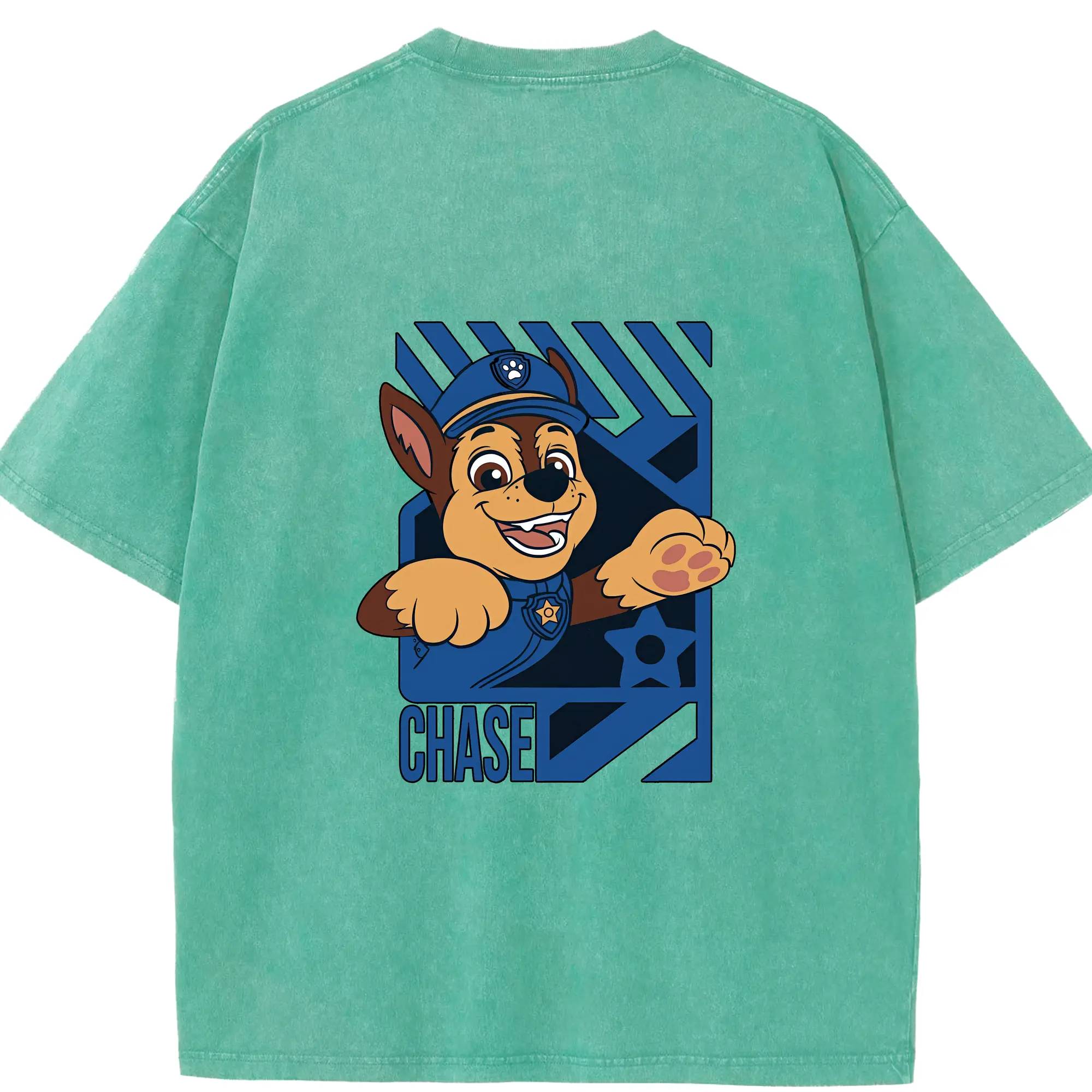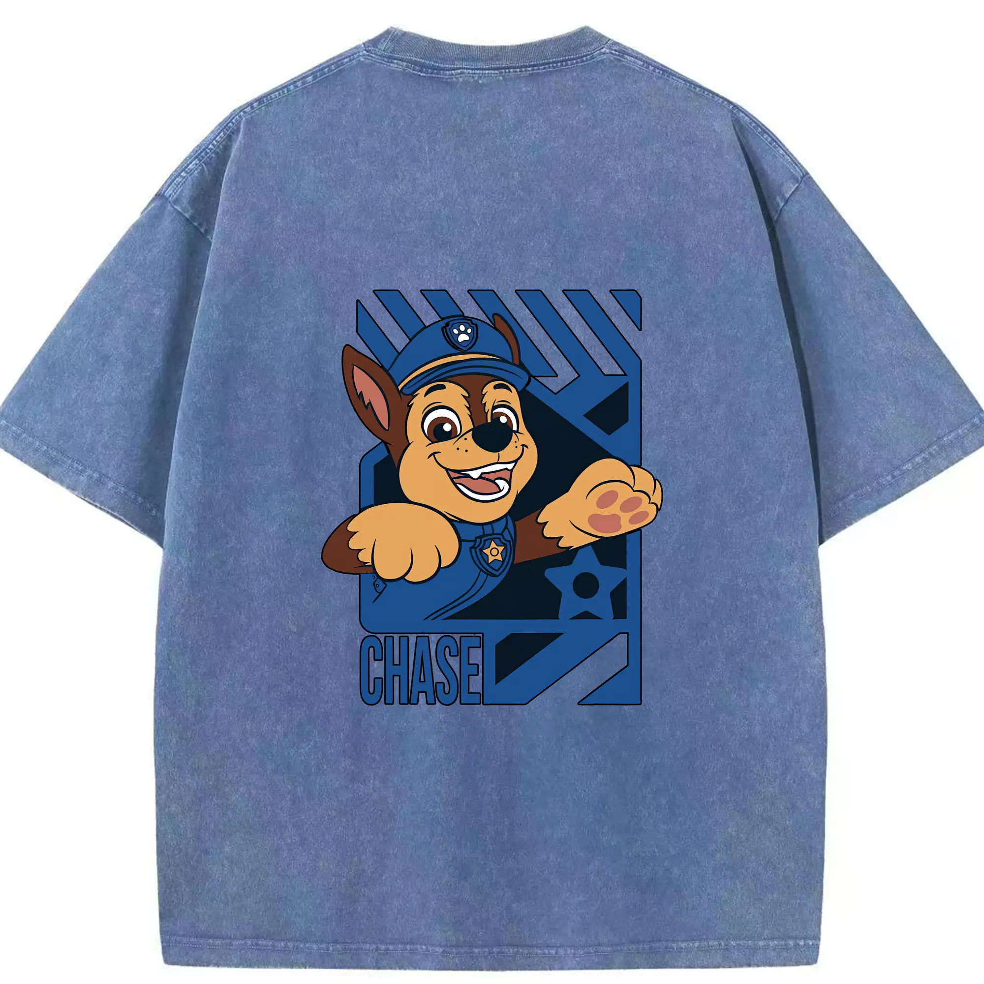 パウ・パトロール グッズ チェイス - 綿100% ヴィンテージ風 半袖Tシャツ ・ フロントプリント ・ 柔らか肌触り ・ 通気性 快適 ・ スポーツ カジュアル 外出用