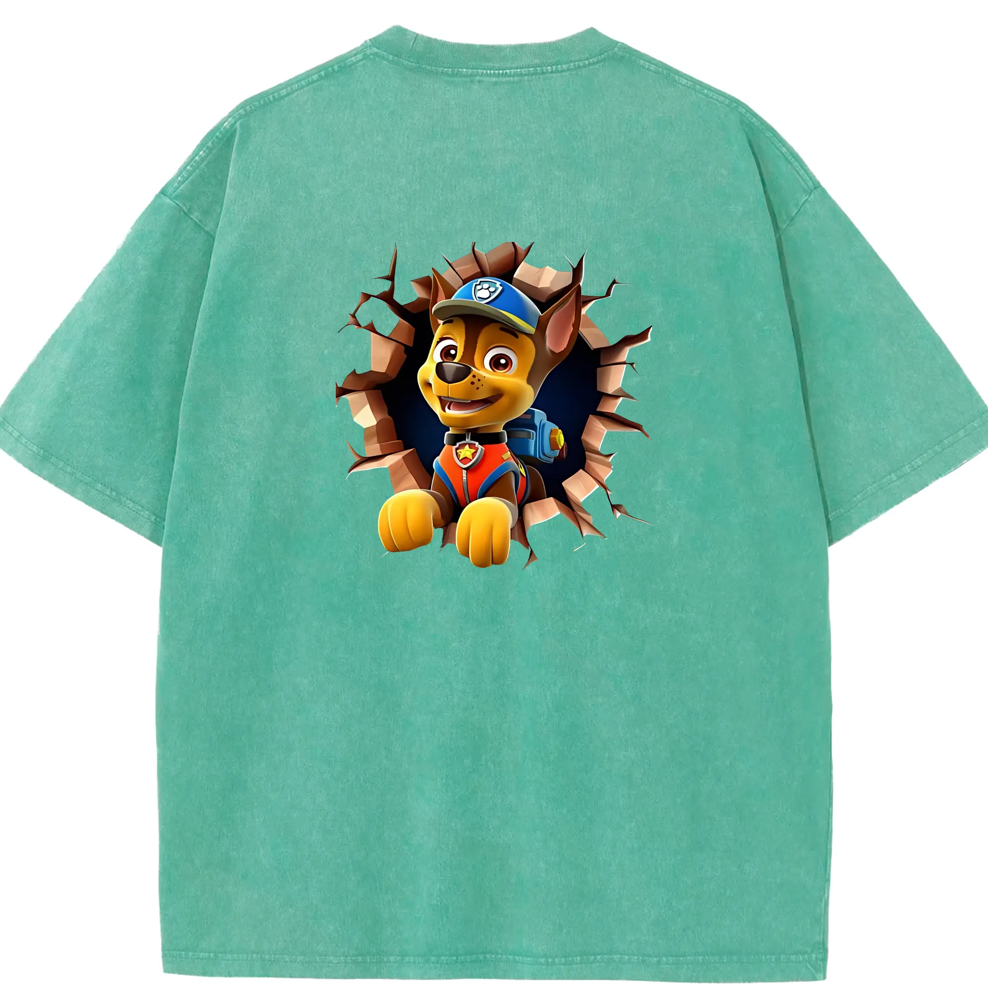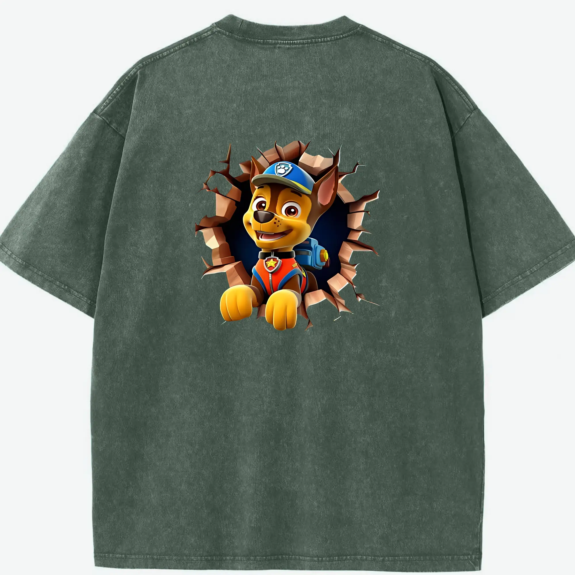 パウ・パトロール グッズ チェイス - 綿100% ヴィンテージ風 半袖Tシャツ ・ フロントプリント ・ 柔らか肌触り ・ 通気性 快適 ・ スポーツ カジュアル 外出用