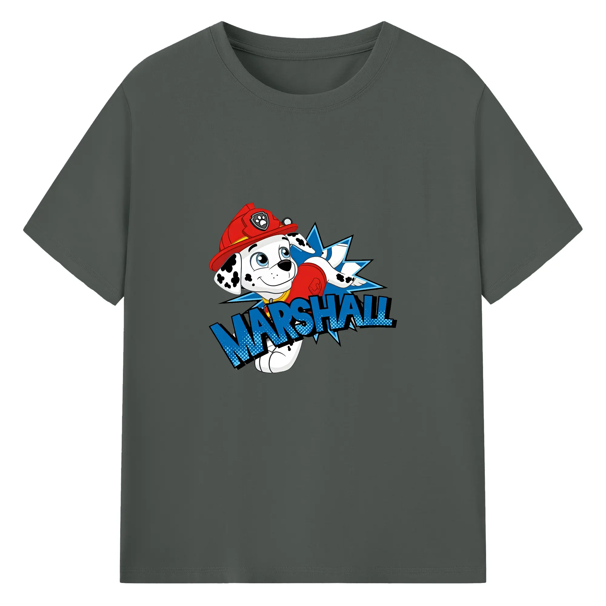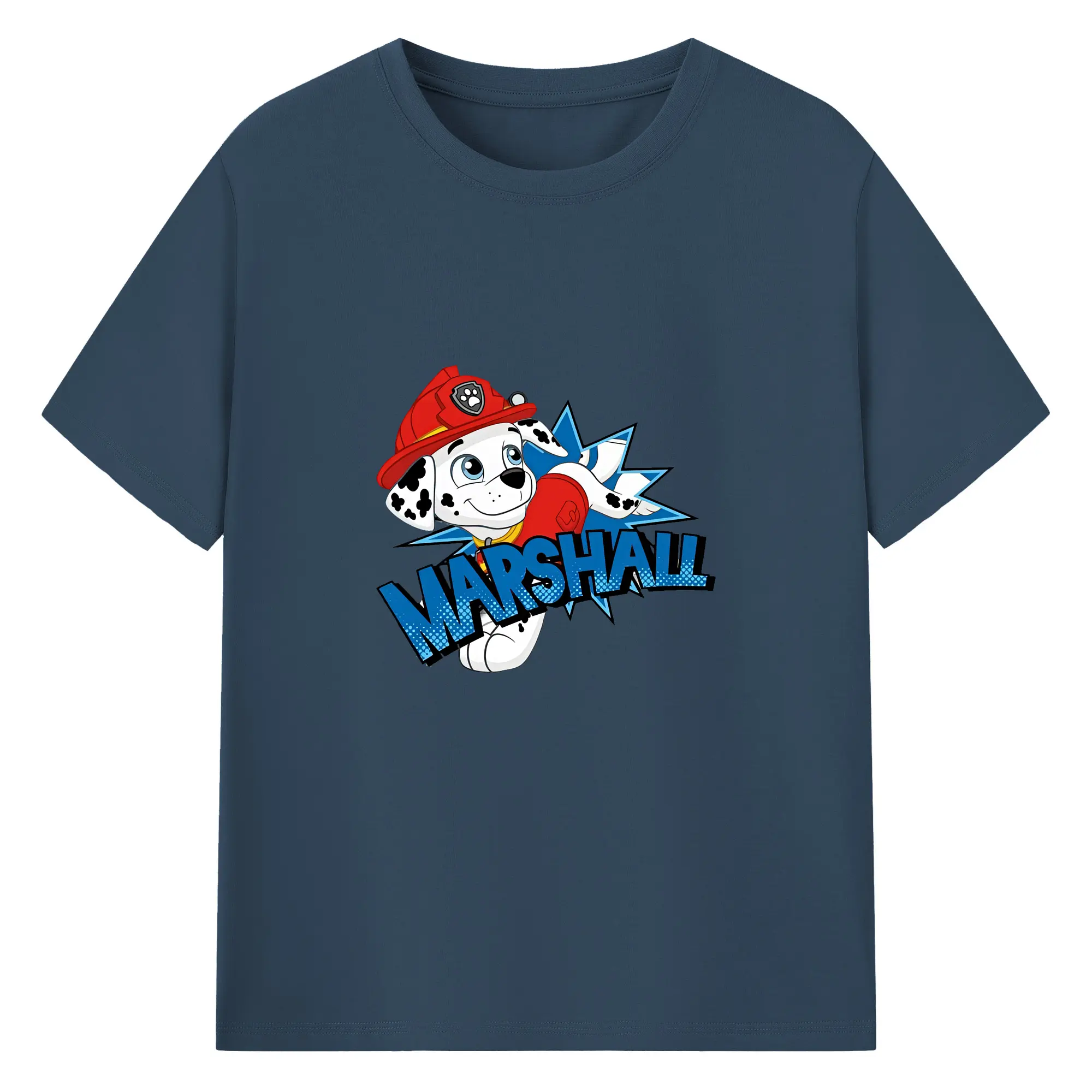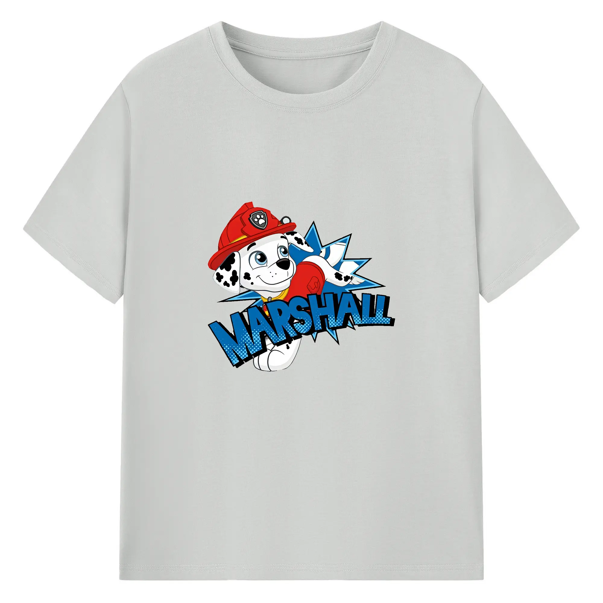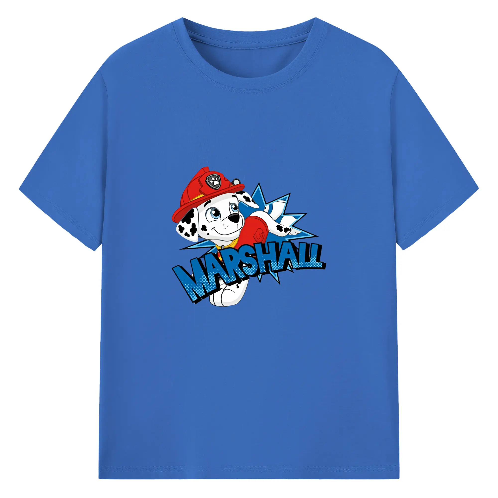 パウ・パトロール グッズ マーシャル - 綿100% 半袖Tシャツ ・ バックプリント ・ 快適 通気性 ・ 日常使い 散歩 スポーツ用