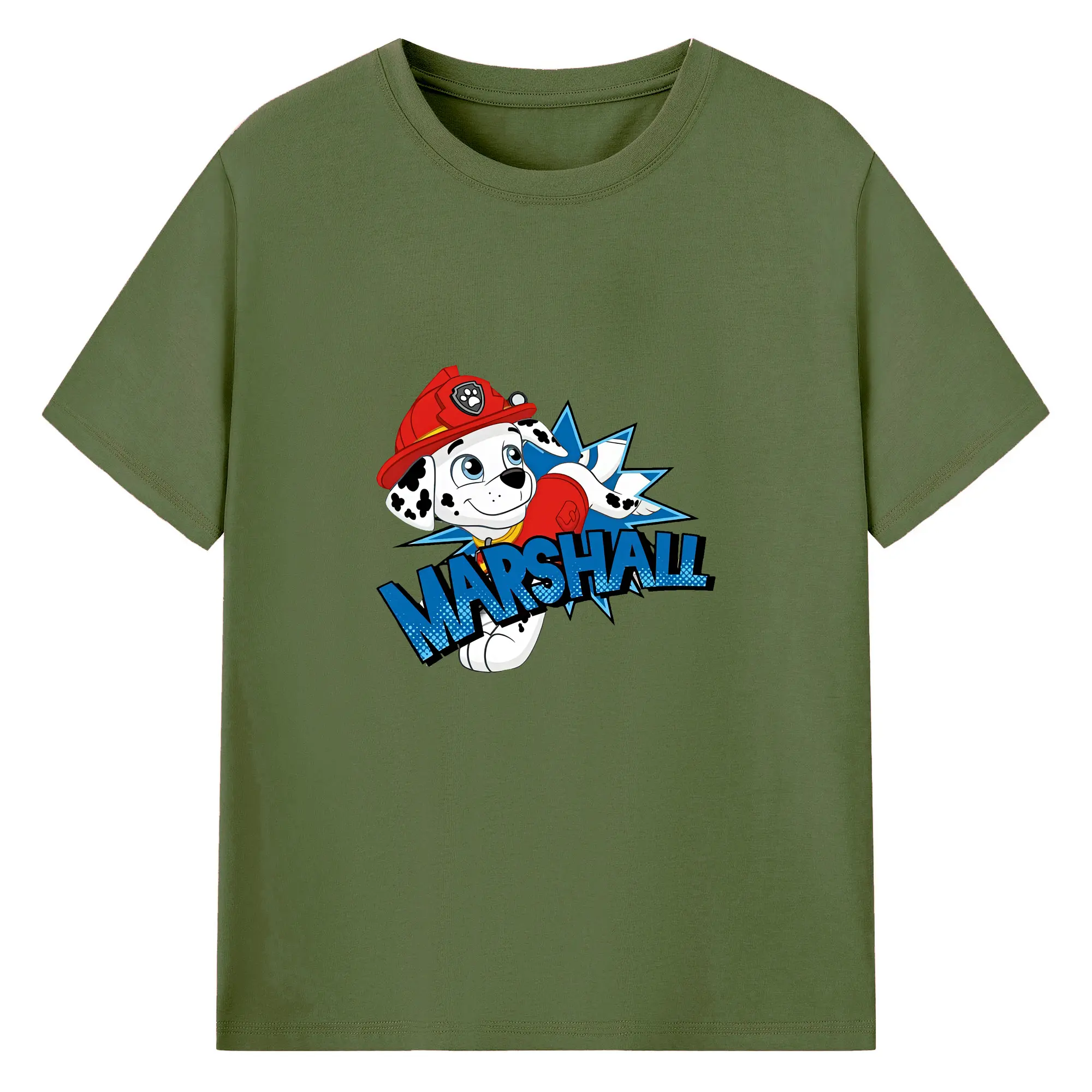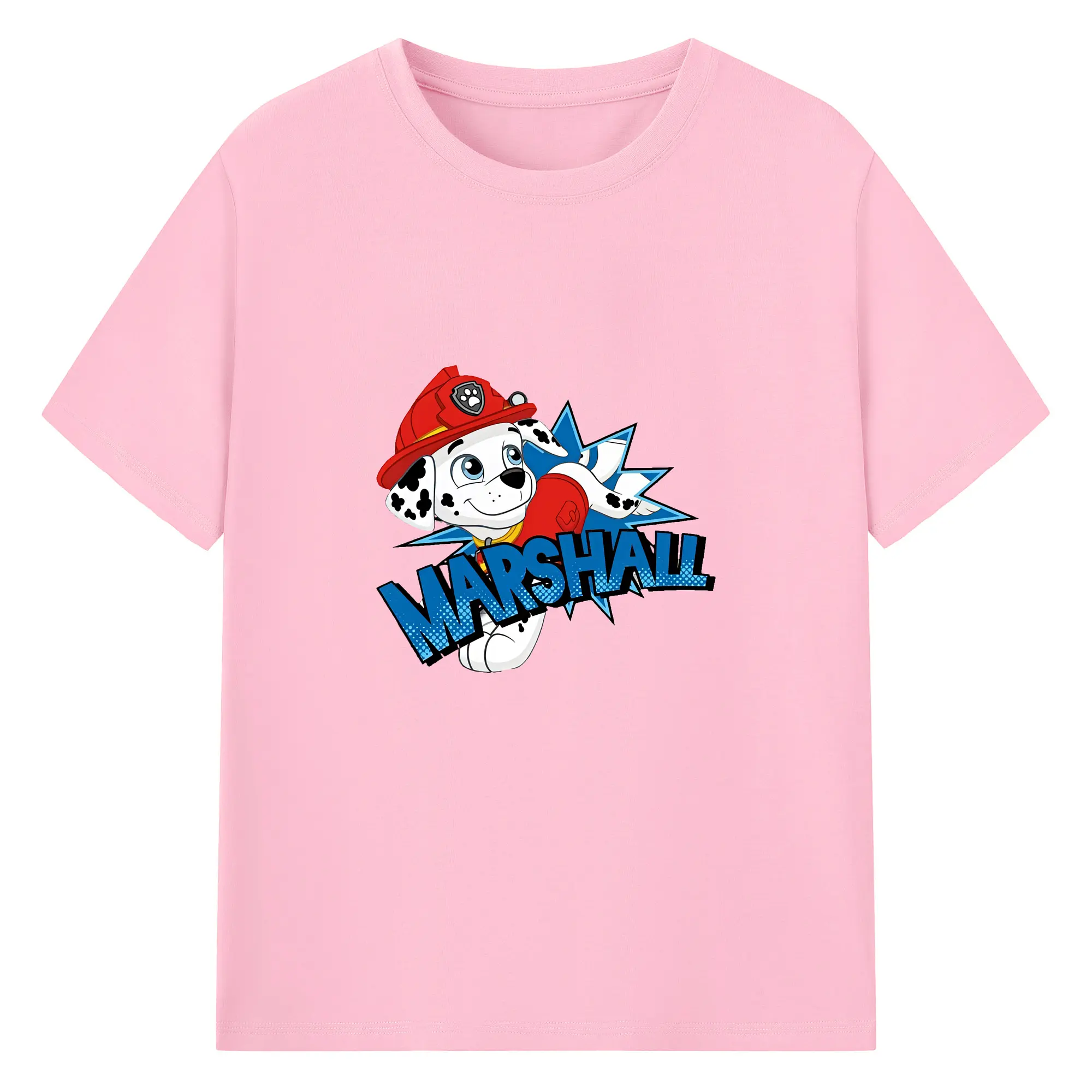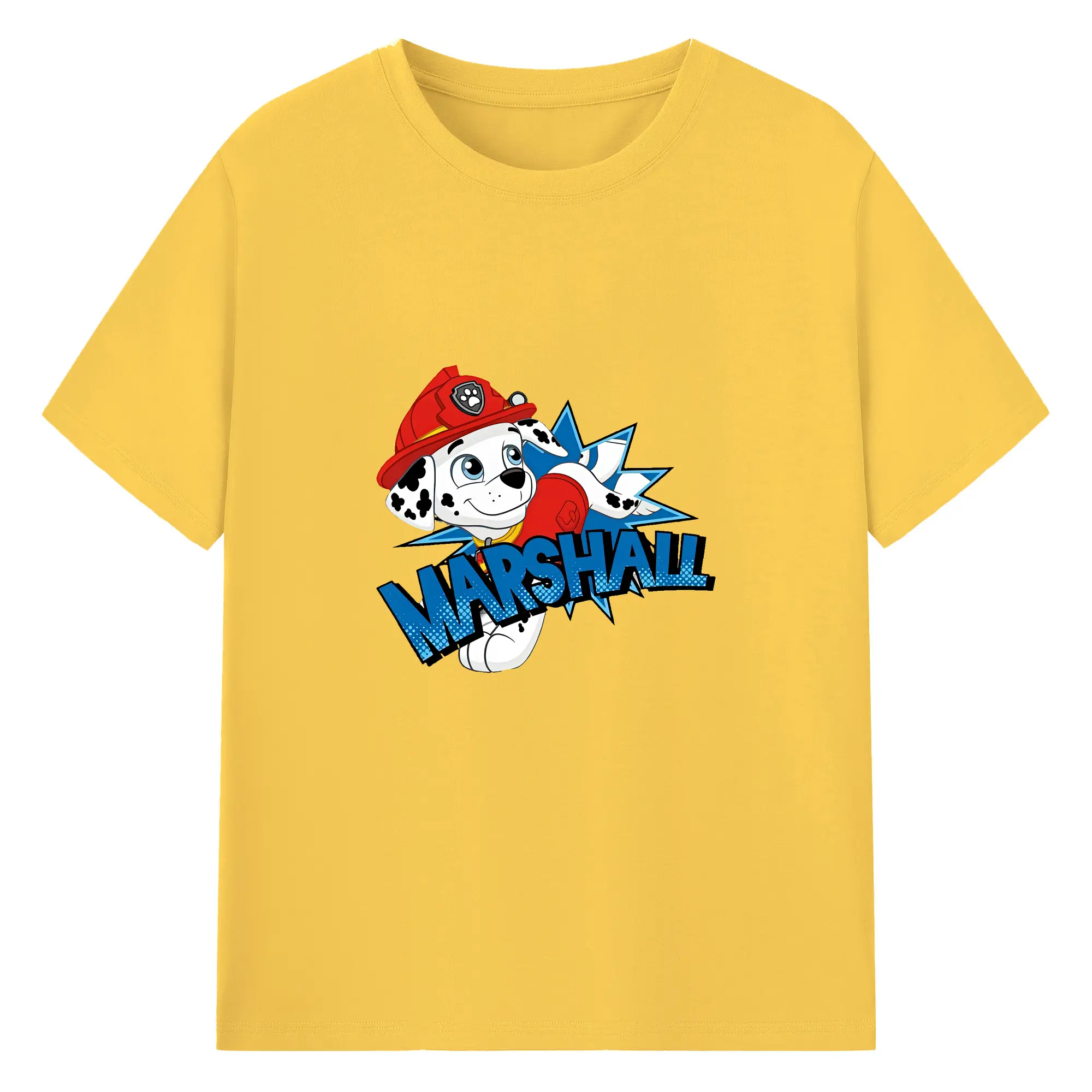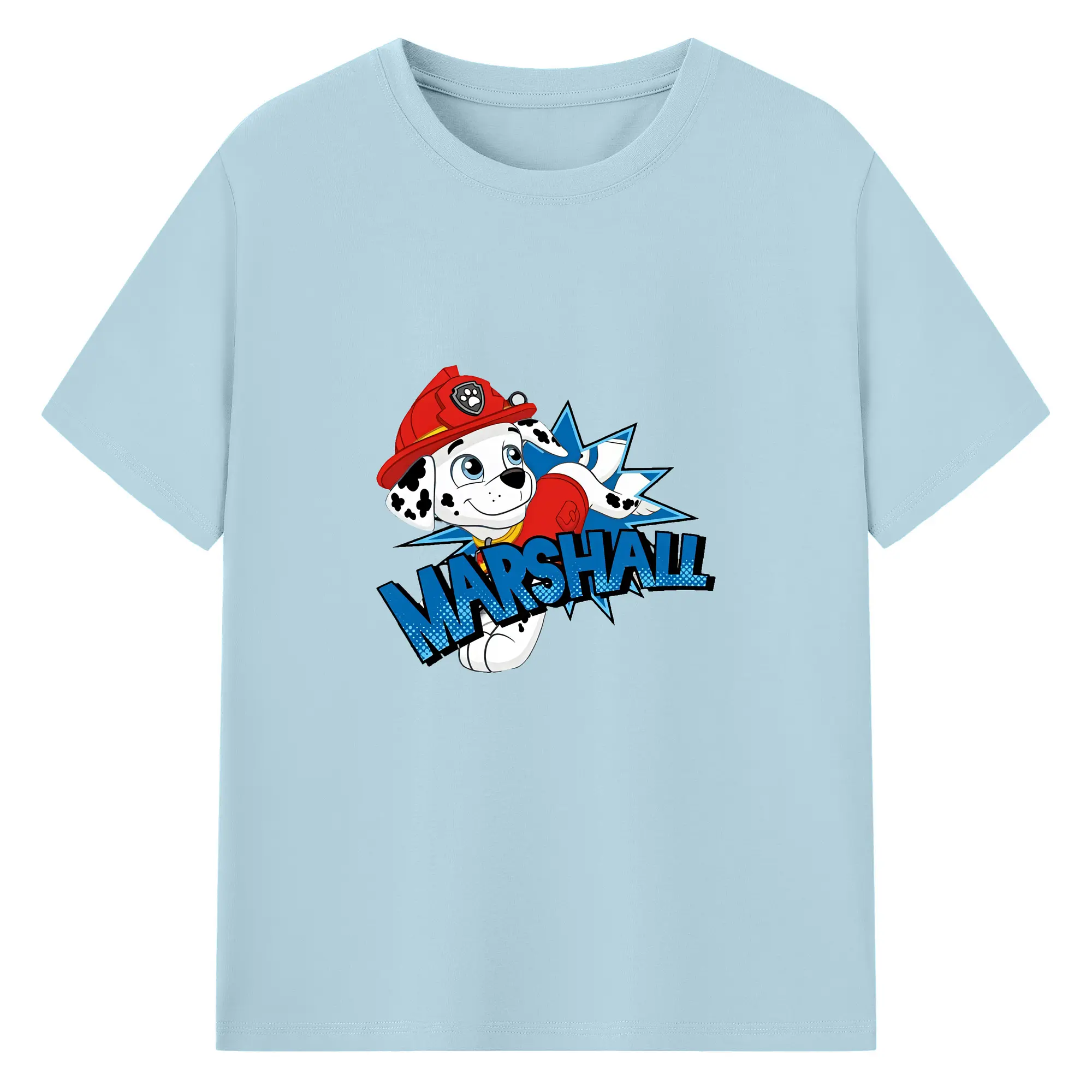 パウ・パトロール グッズ マーシャル - 綿100% 半袖Tシャツ ・ バックプリント ・ 快適 通気性 ・ 日常使い 散歩 スポーツ用