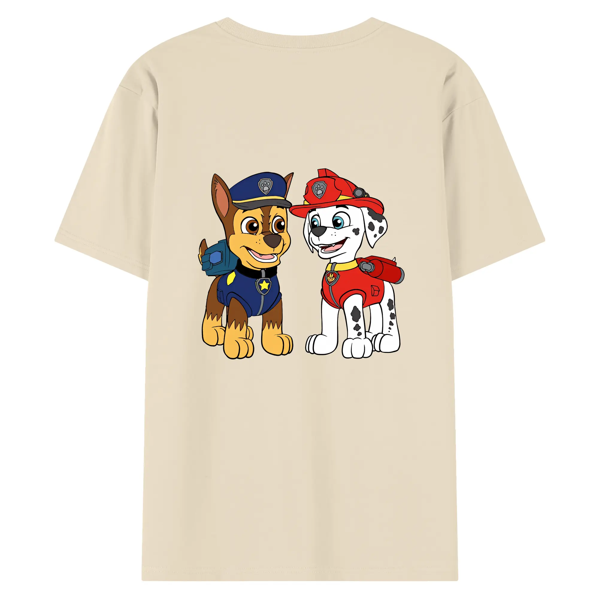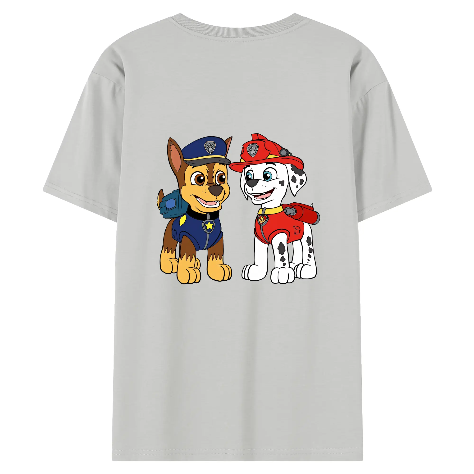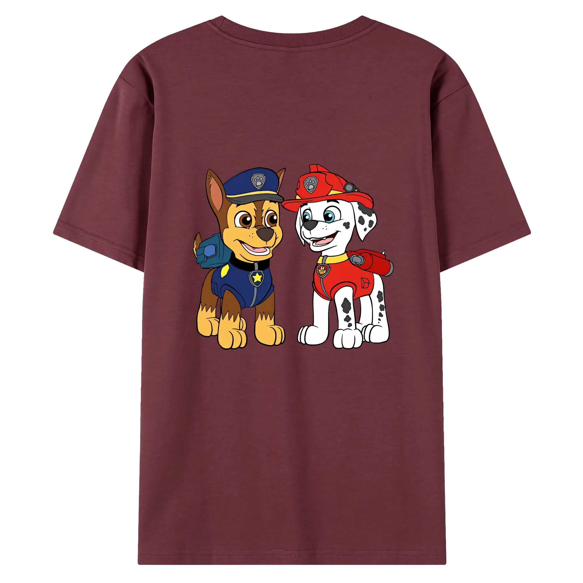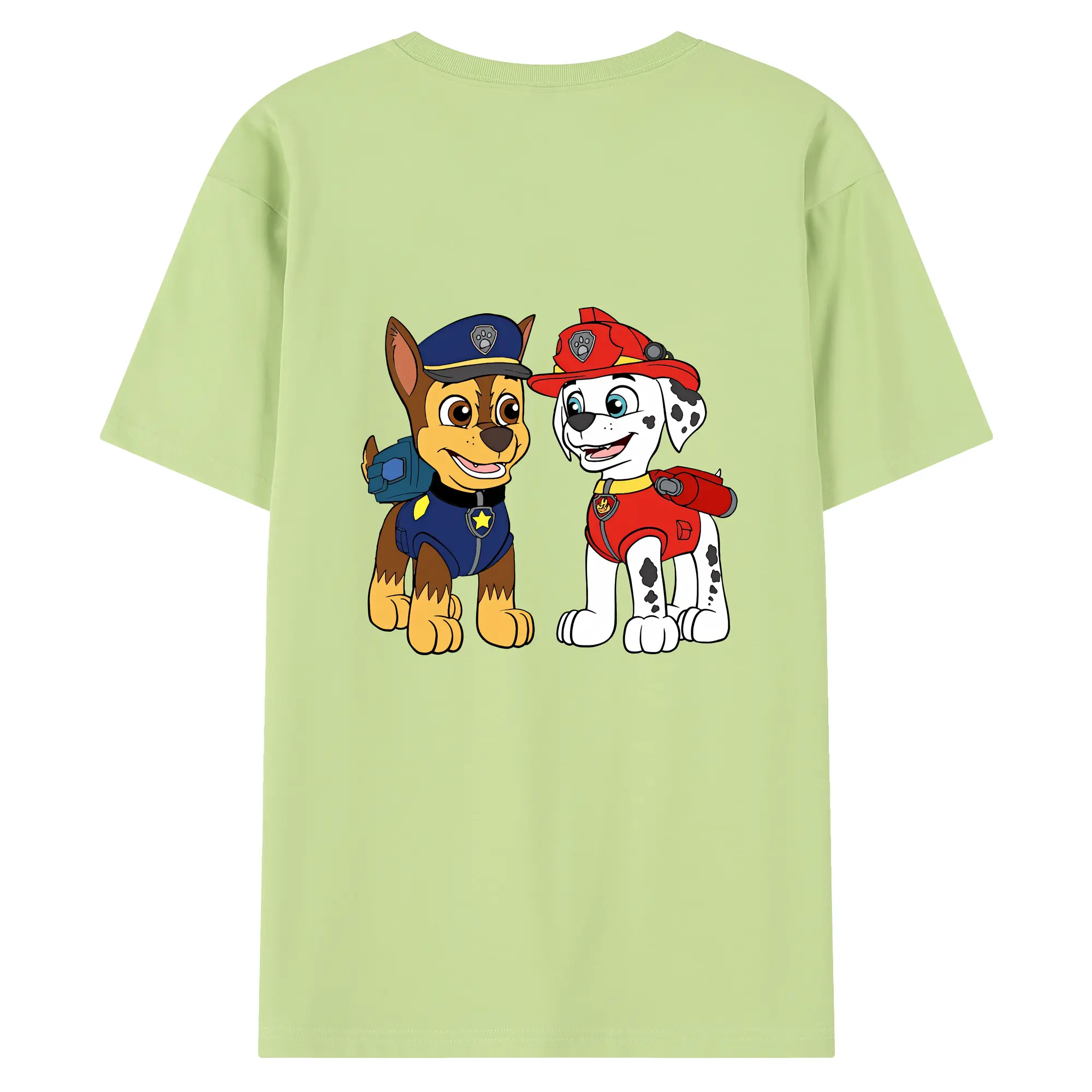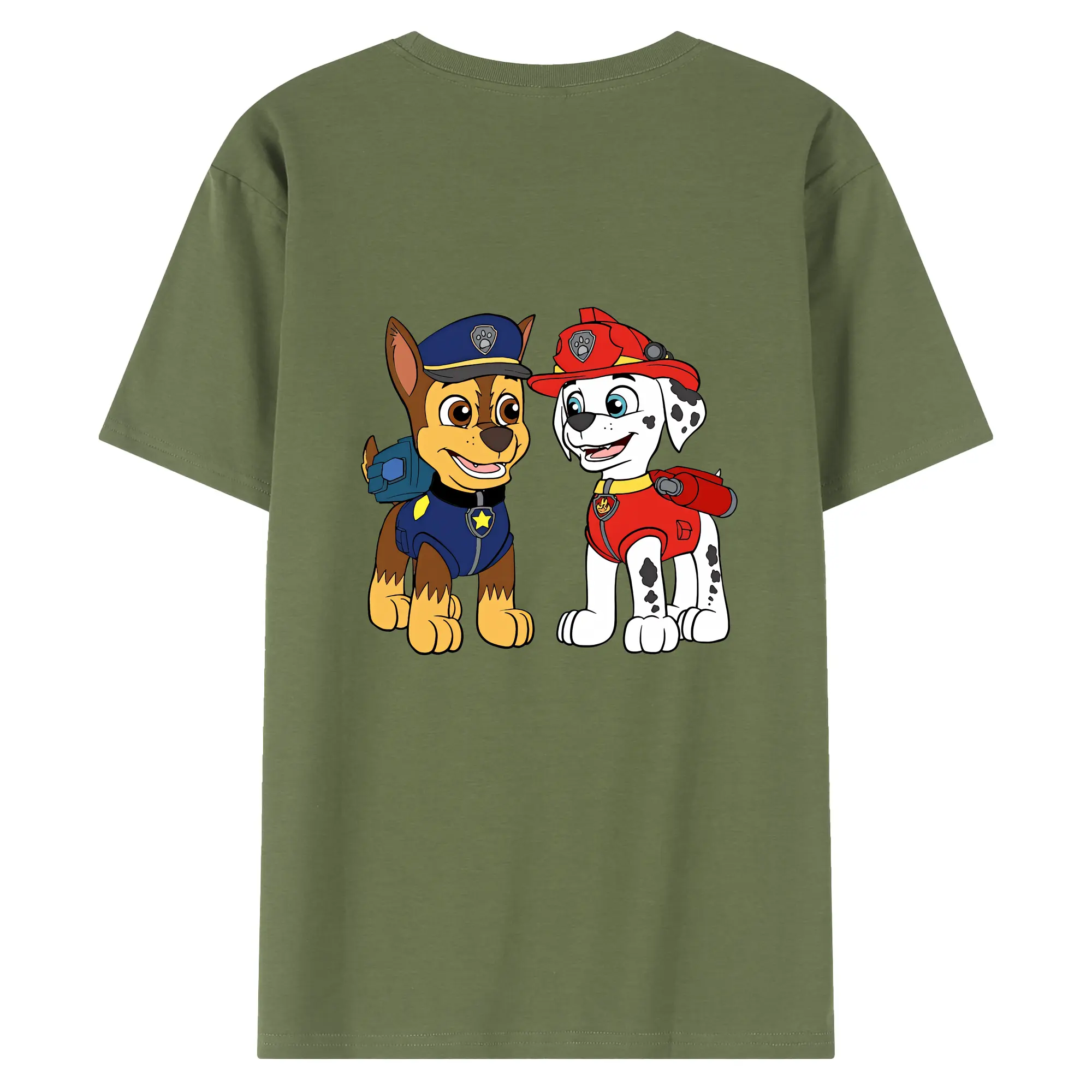 パウ・パトロール グッズ マーシャル - 綿100% ヴィンテージ風 半袖Tシャツ ・ 背面プリント ・ 柔らか肌触り ・ 通気性 快適 ・ スポーツ カジュアル 外出用