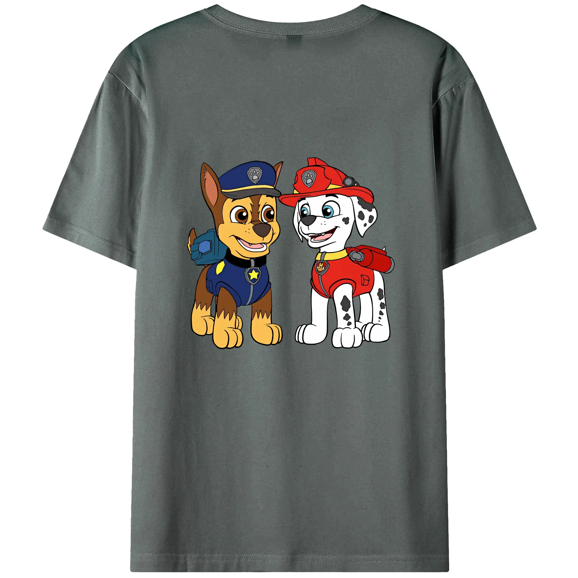 パウ・パトロール グッズ マーシャル - 綿100% 半袖Tシャツ ・ フロントプリント ・ 快適 通気性 ・ 日常使い 散歩 スポーツ用