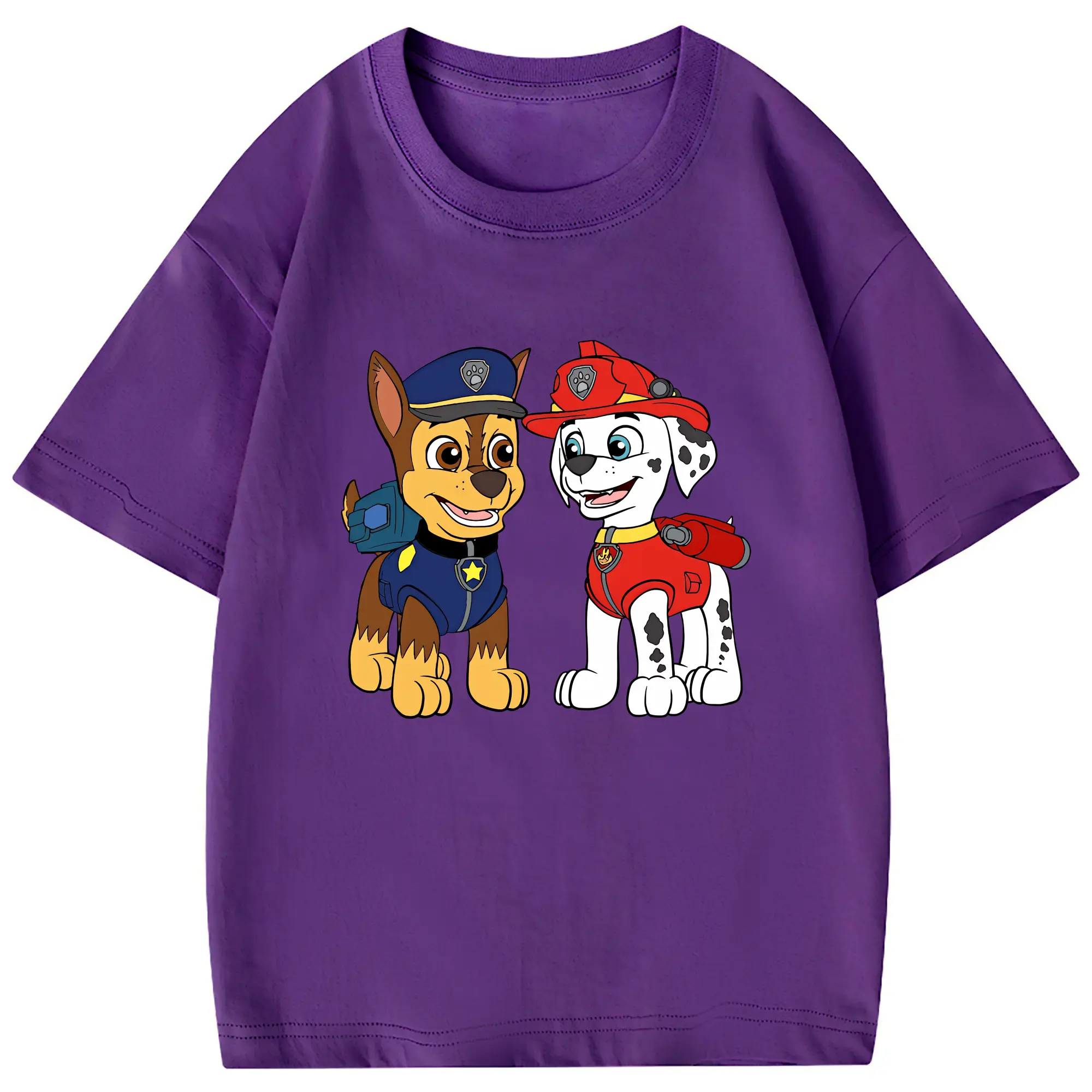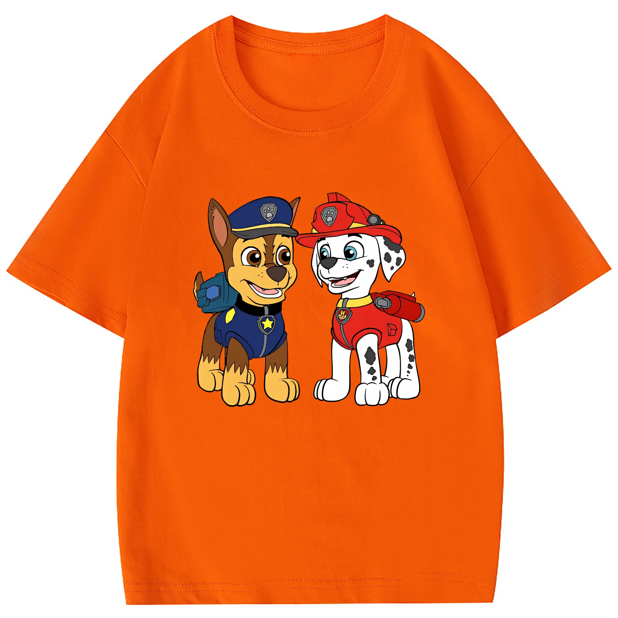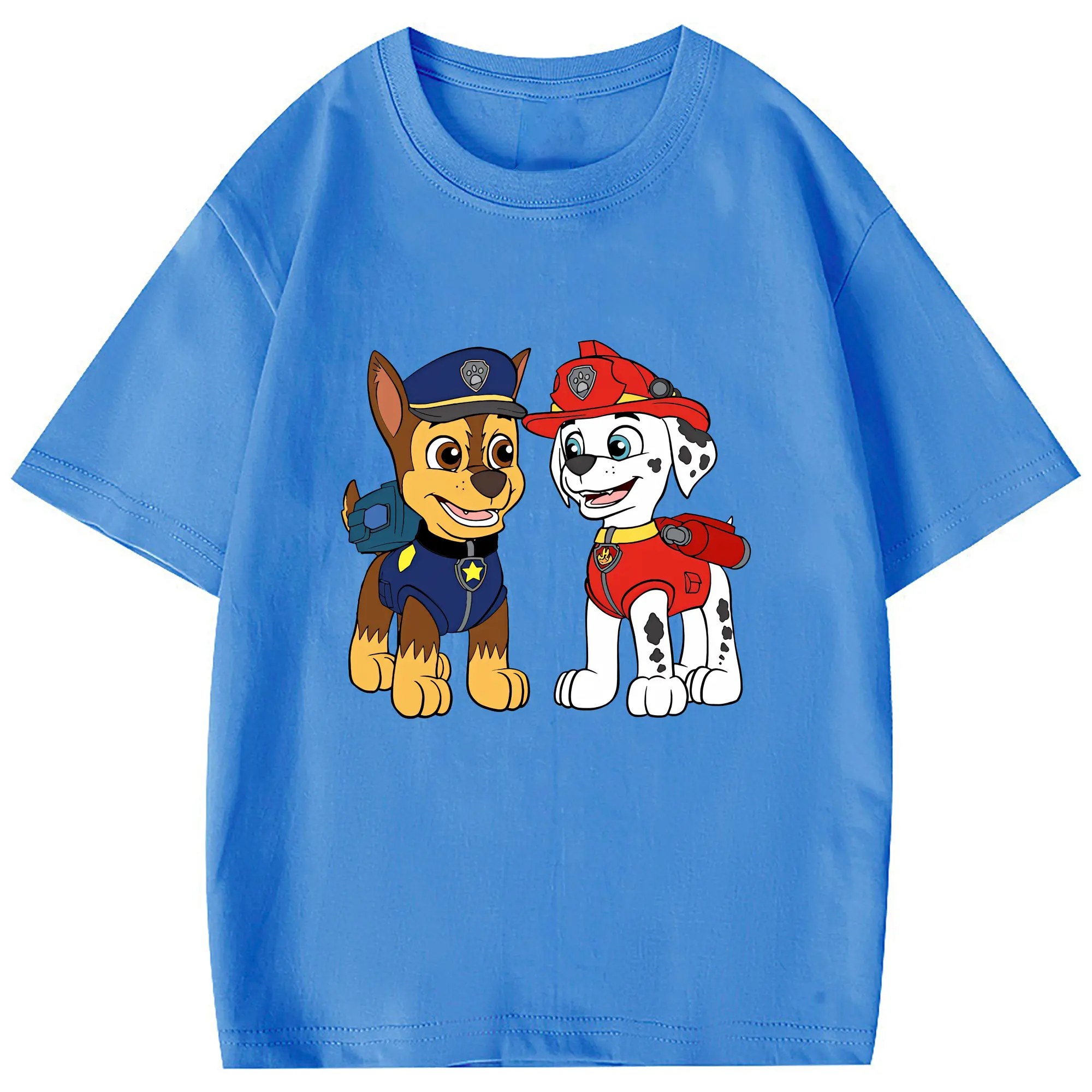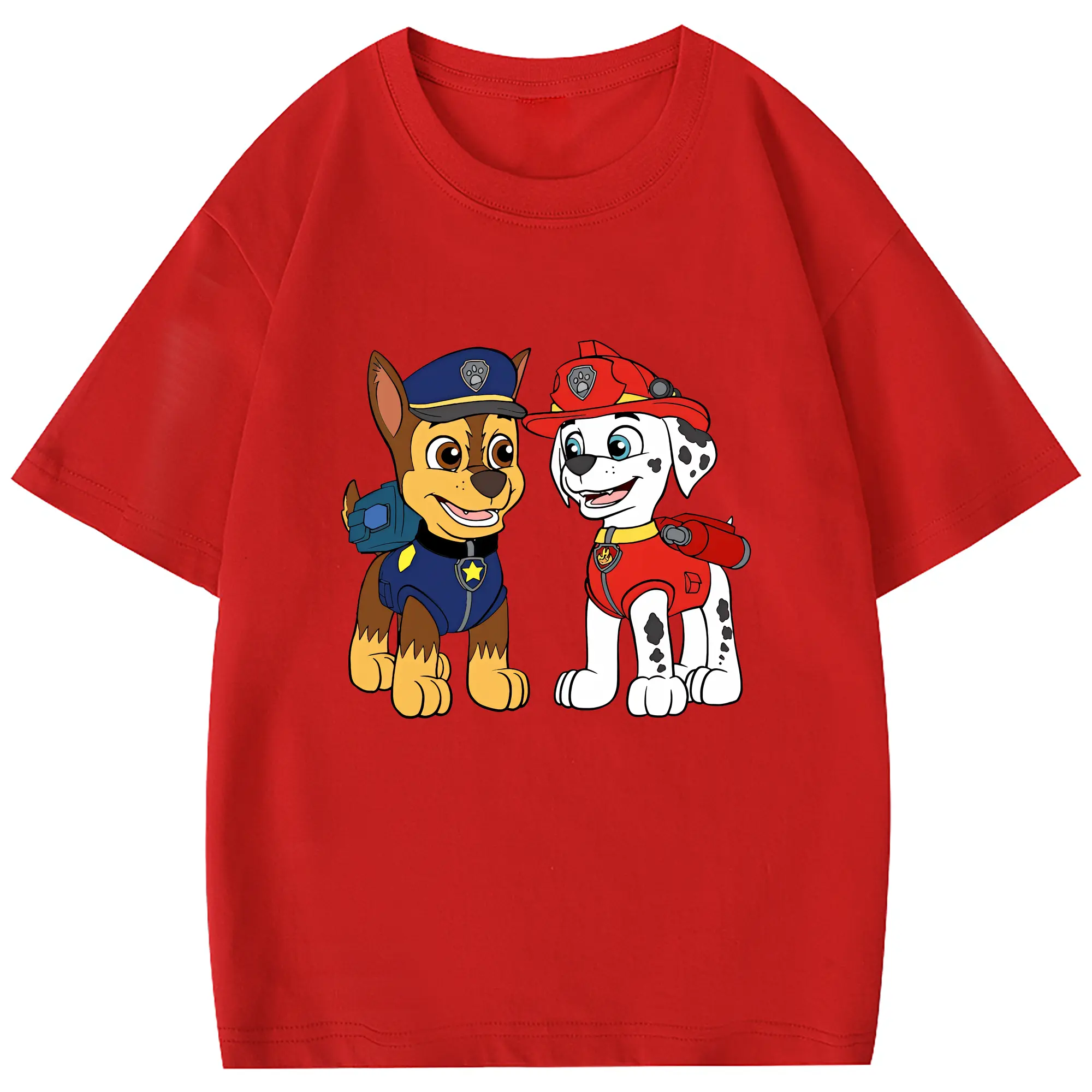 パウ・パトロール グッズ マーシャル - 綿100% 半袖Tシャツ ・ バックプリント ・ 快適 通気性 ・ 日常使い 散歩 スポーツ用