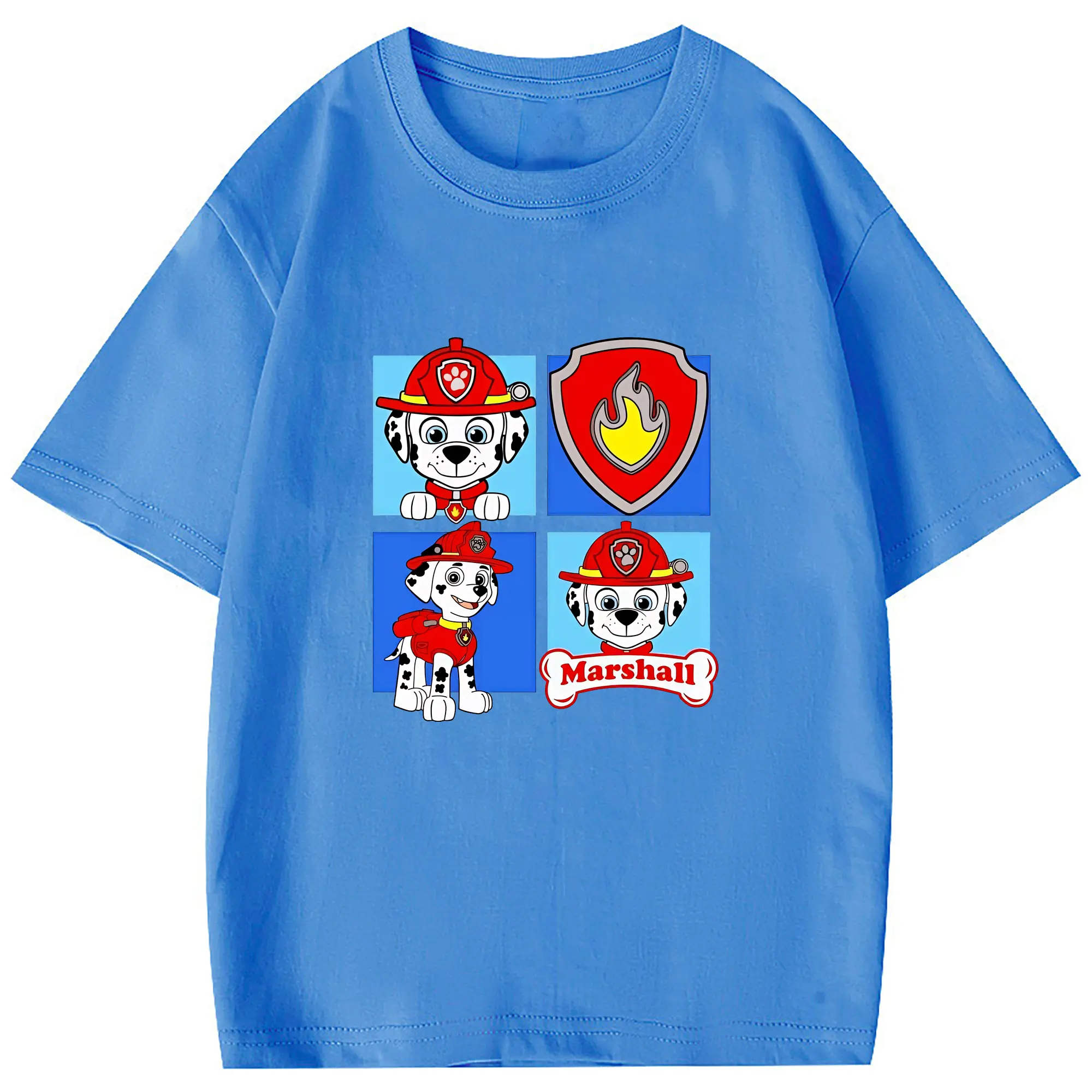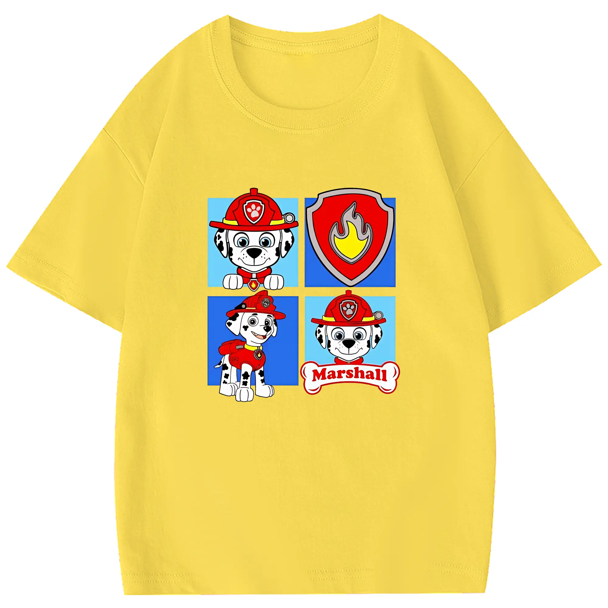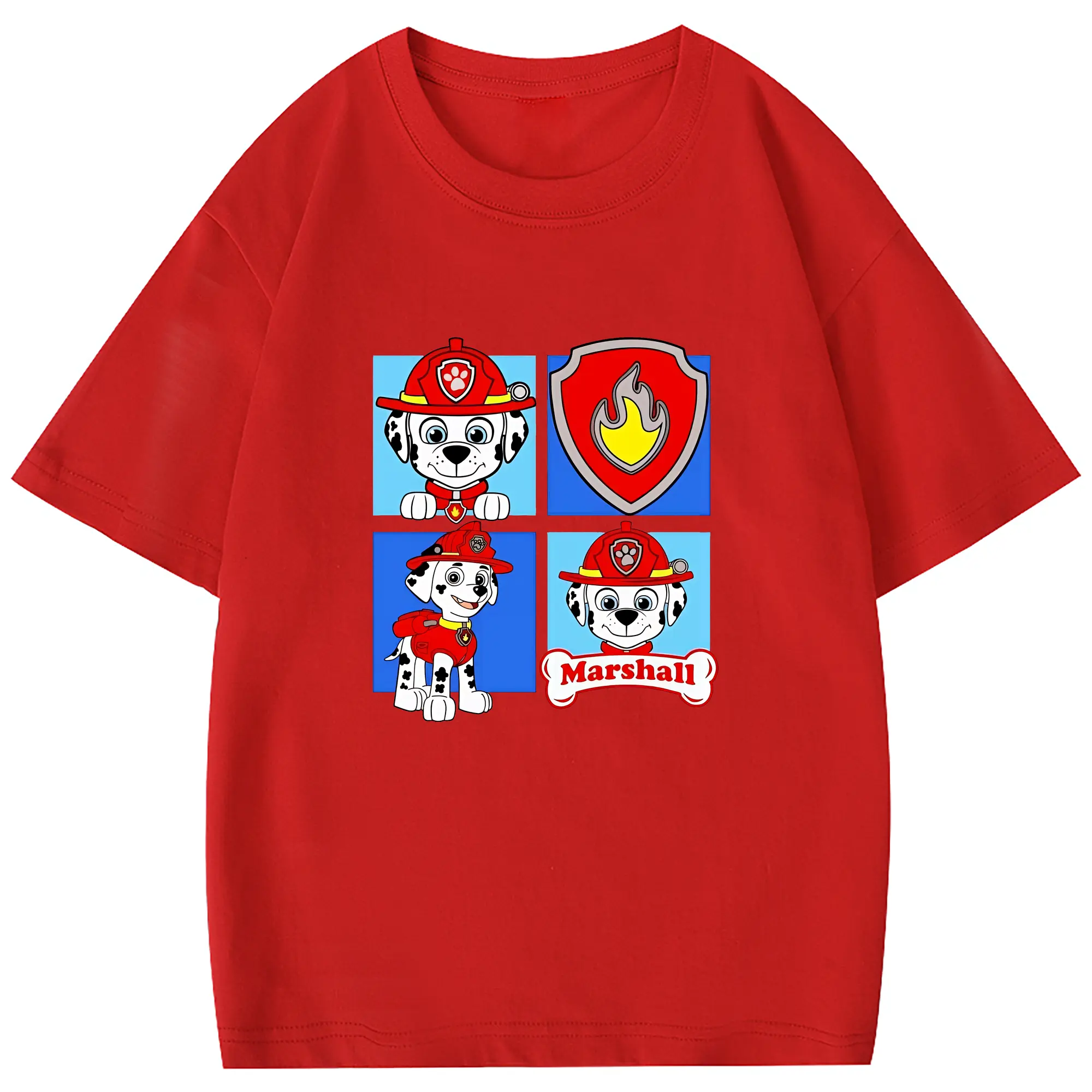 パウ・パトロール グッズ マーシャル - 綿100% 半袖Tシャツ ・ バックプリント ・ 快適 通気性 ・ 日常使い 散歩 スポーツ用