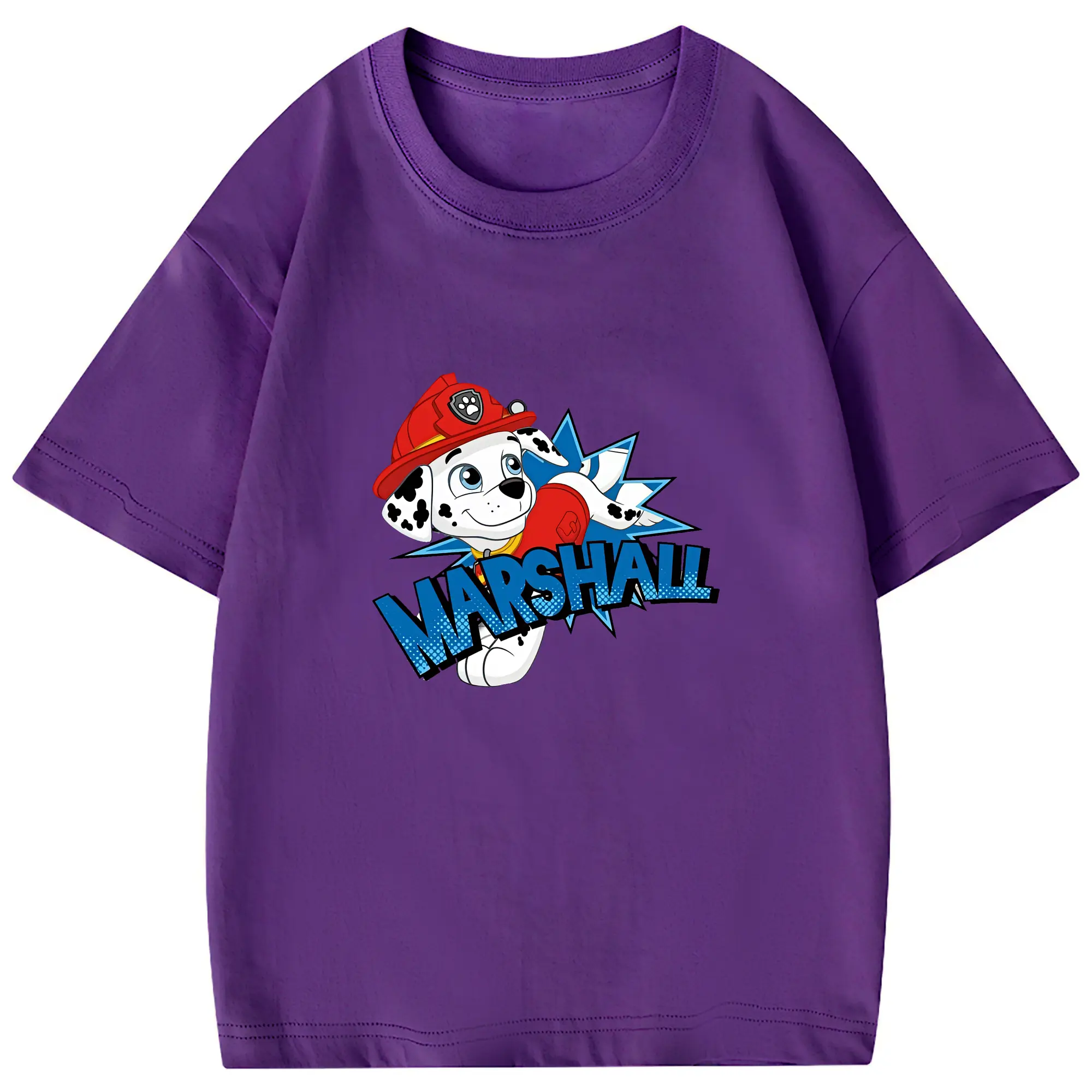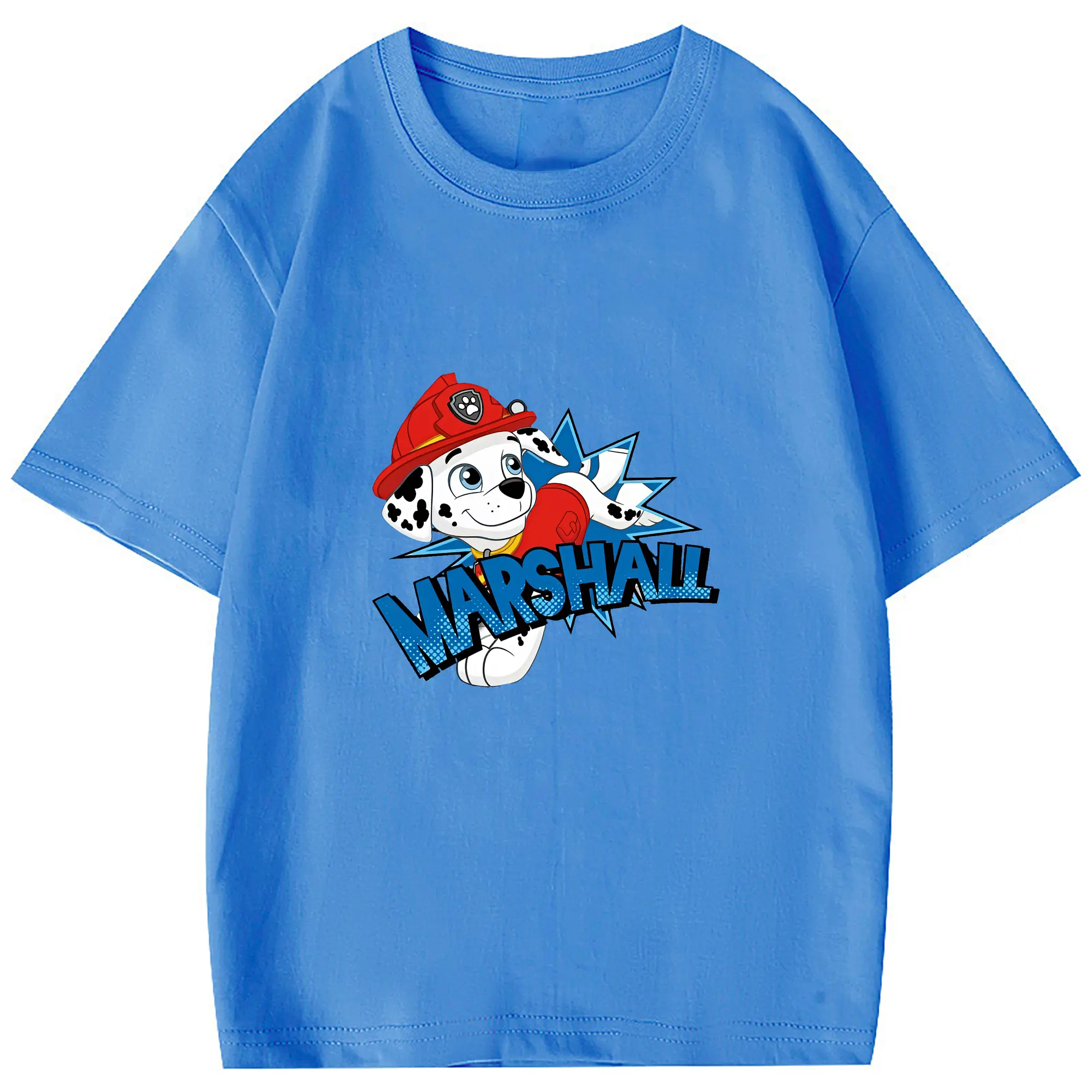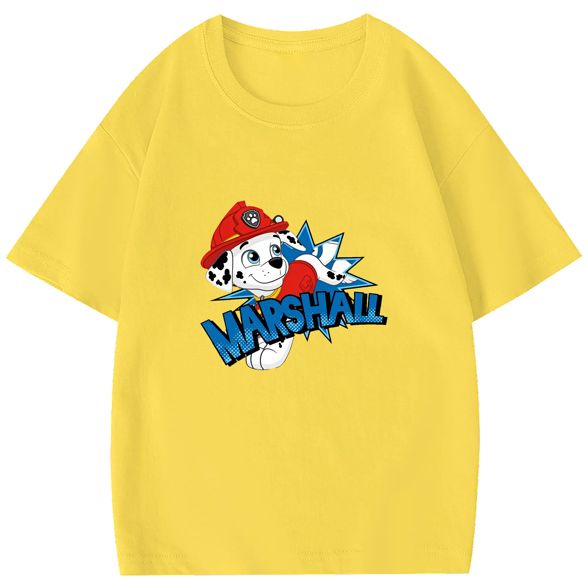 パウ・パトロール グッズ マーシャル - 綿100% 半袖Tシャツ ・ バックプリント ・ 快適 通気性 ・ 日常使い 散歩 スポーツ用