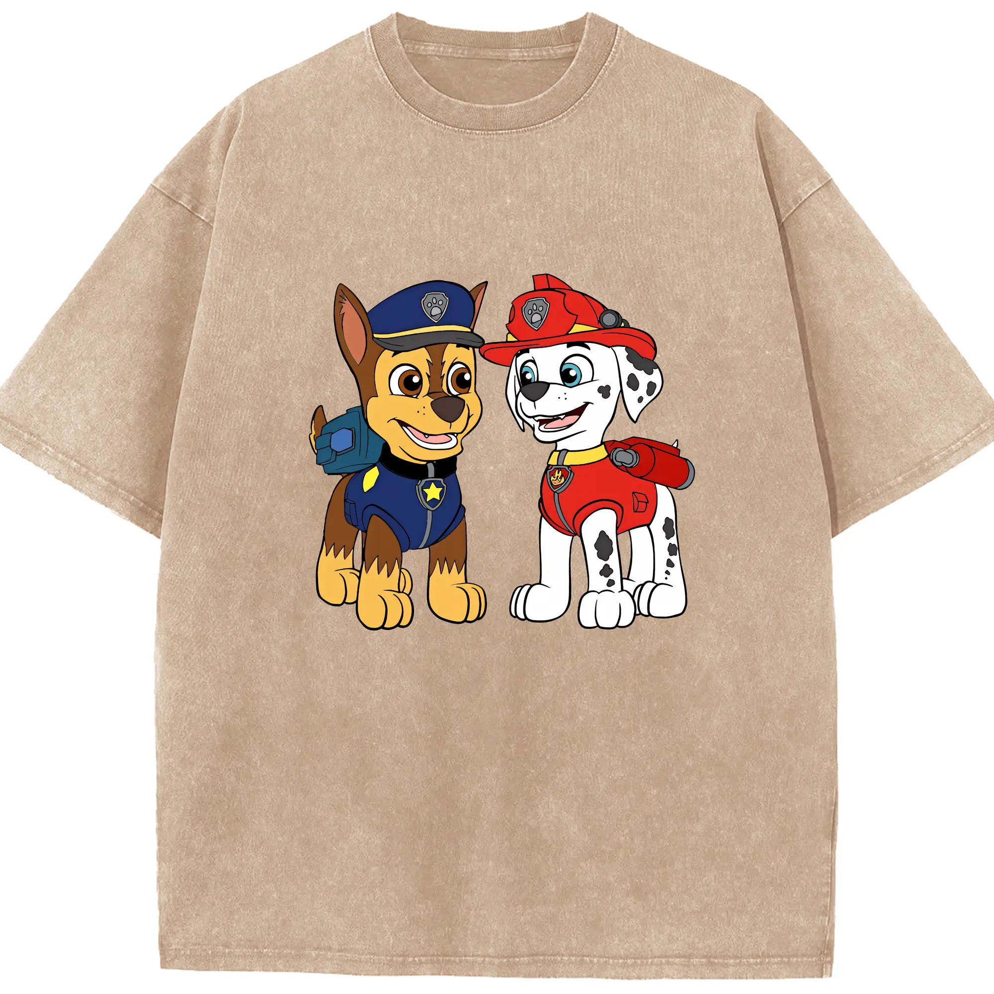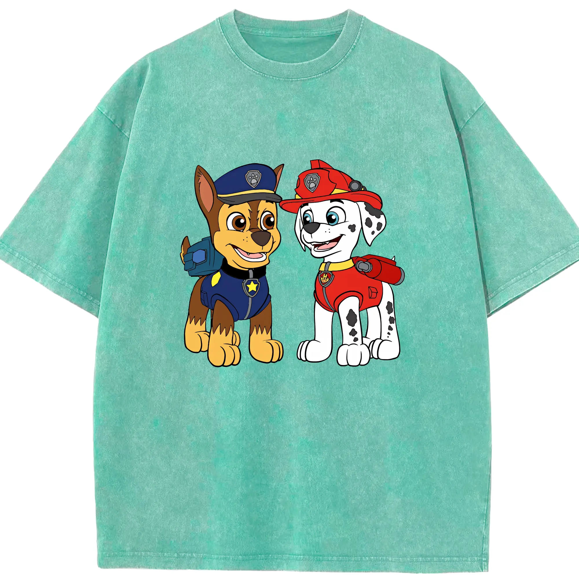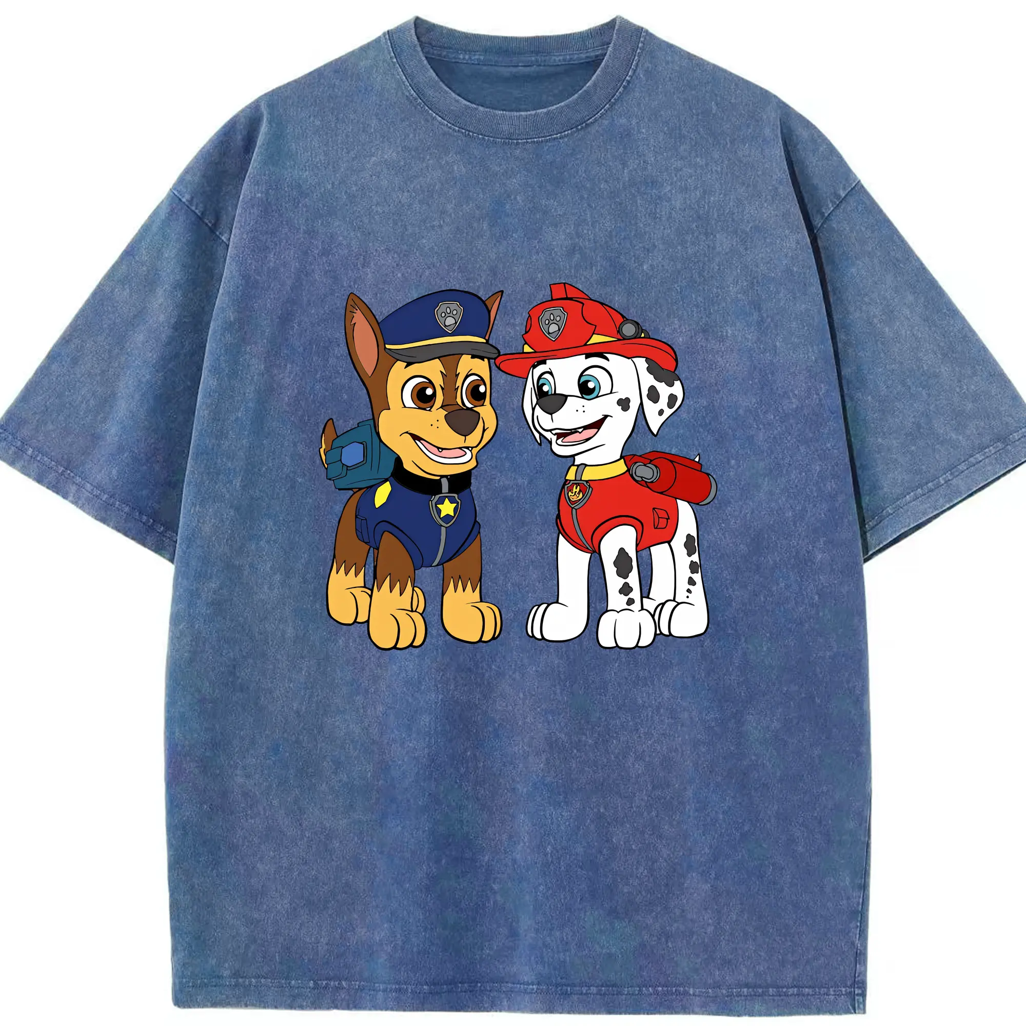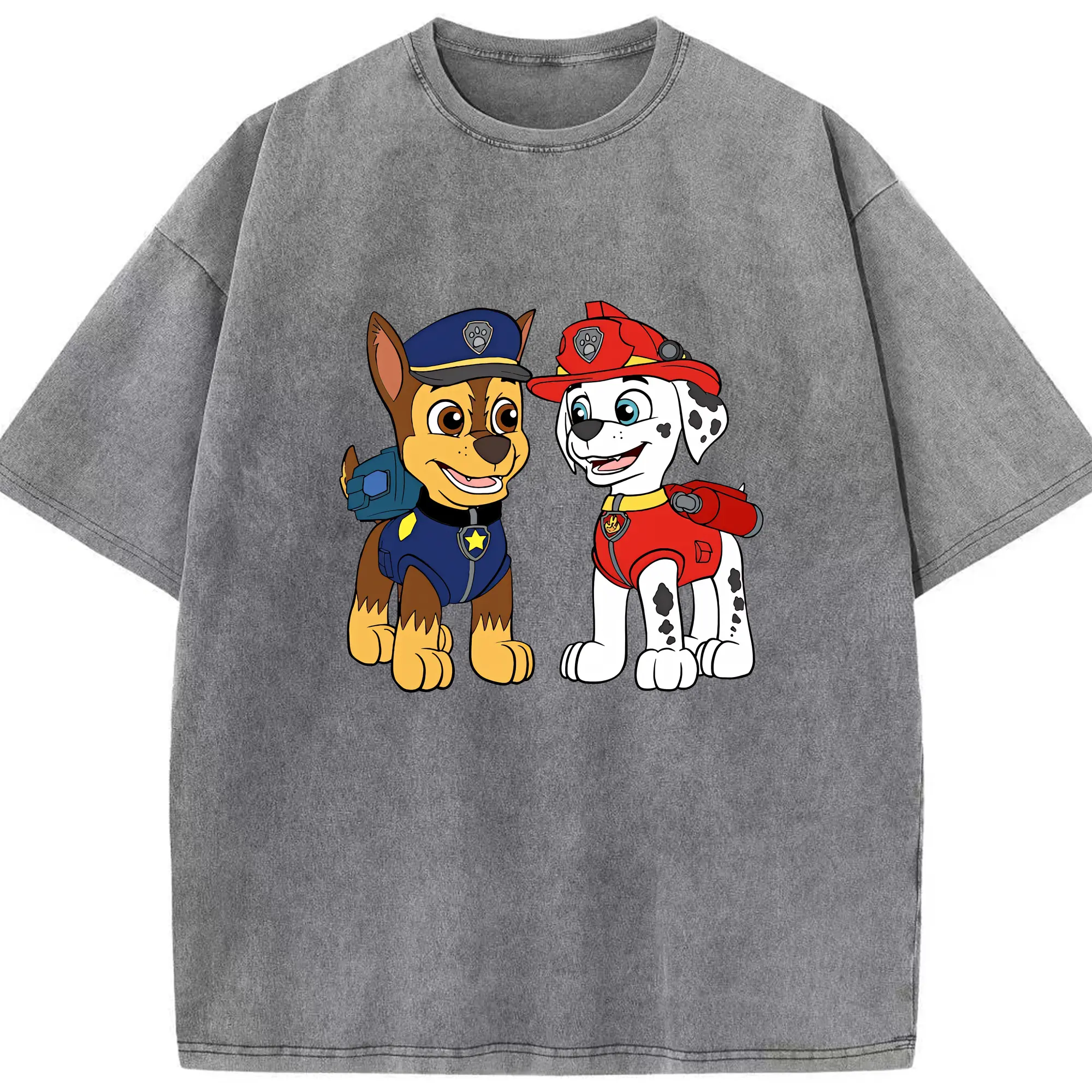 パウ・パトロール グッズ マーシャル - 綿100% ヴィンテージ風 半袖Tシャツ ・ 背面プリント ・ 柔らか肌触り ・ 通気性 快適 ・ スポーツ カジュアル 外出用