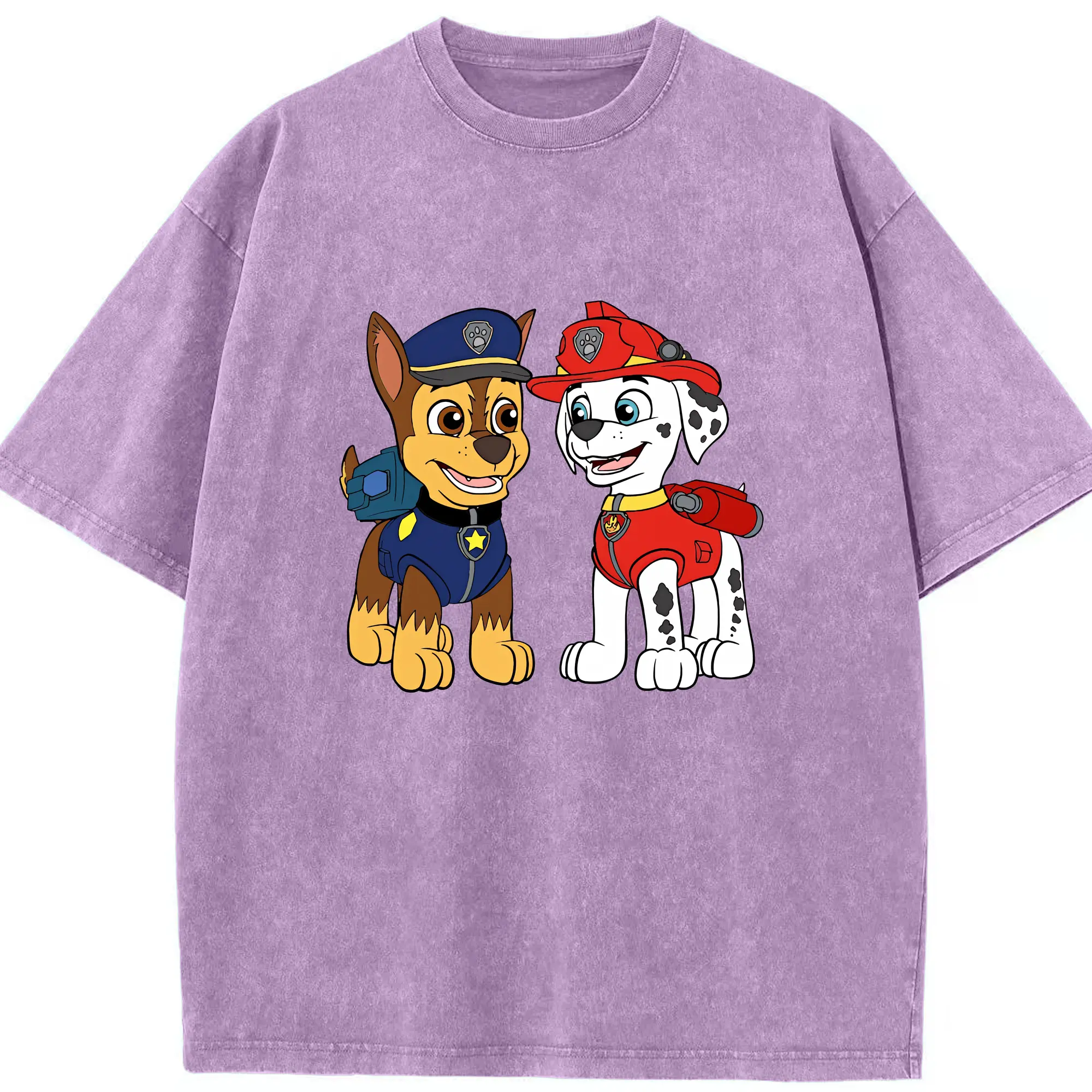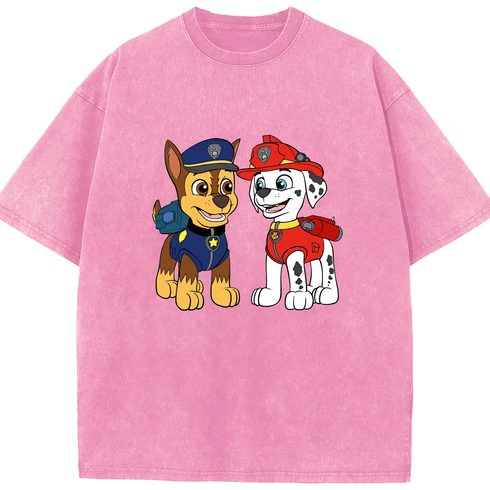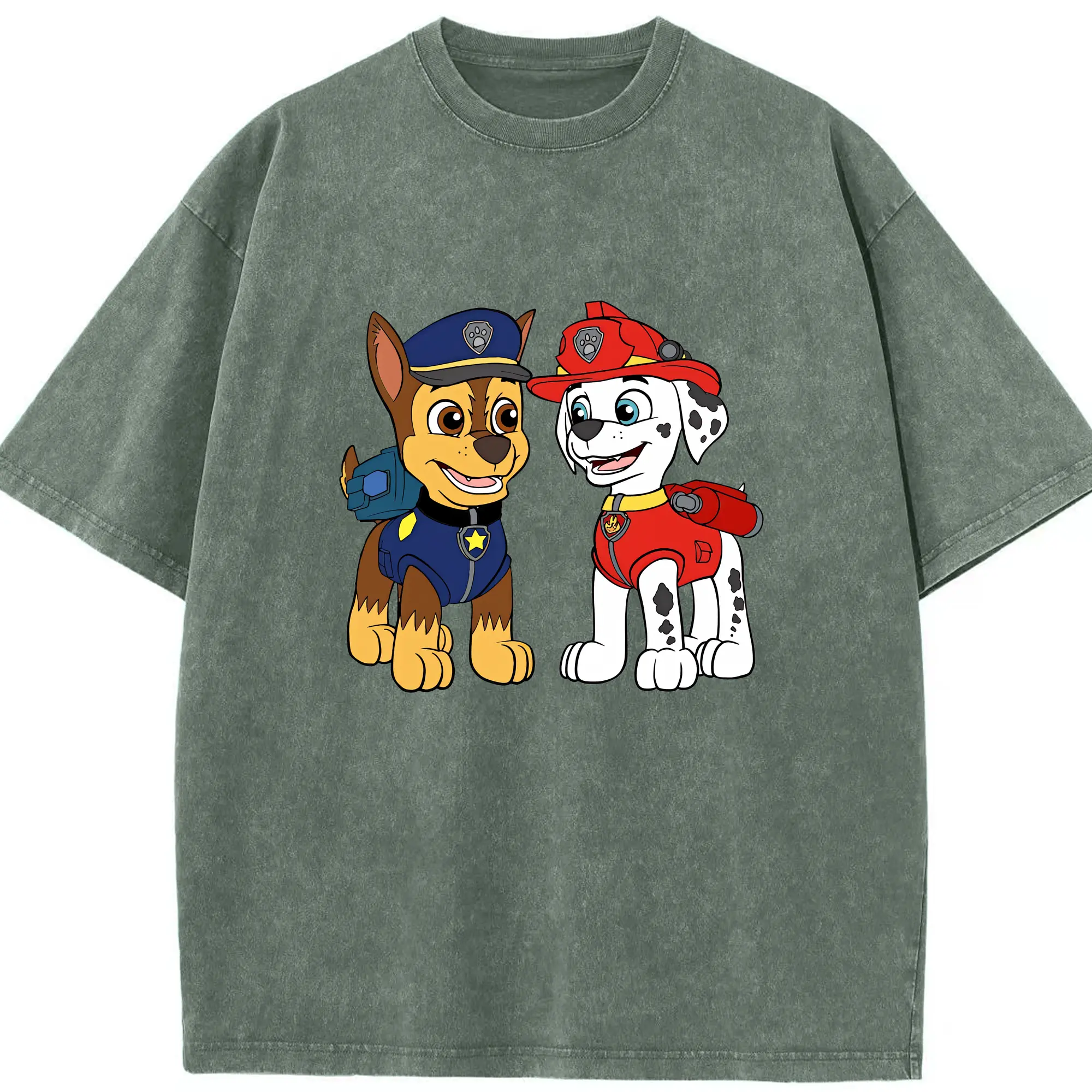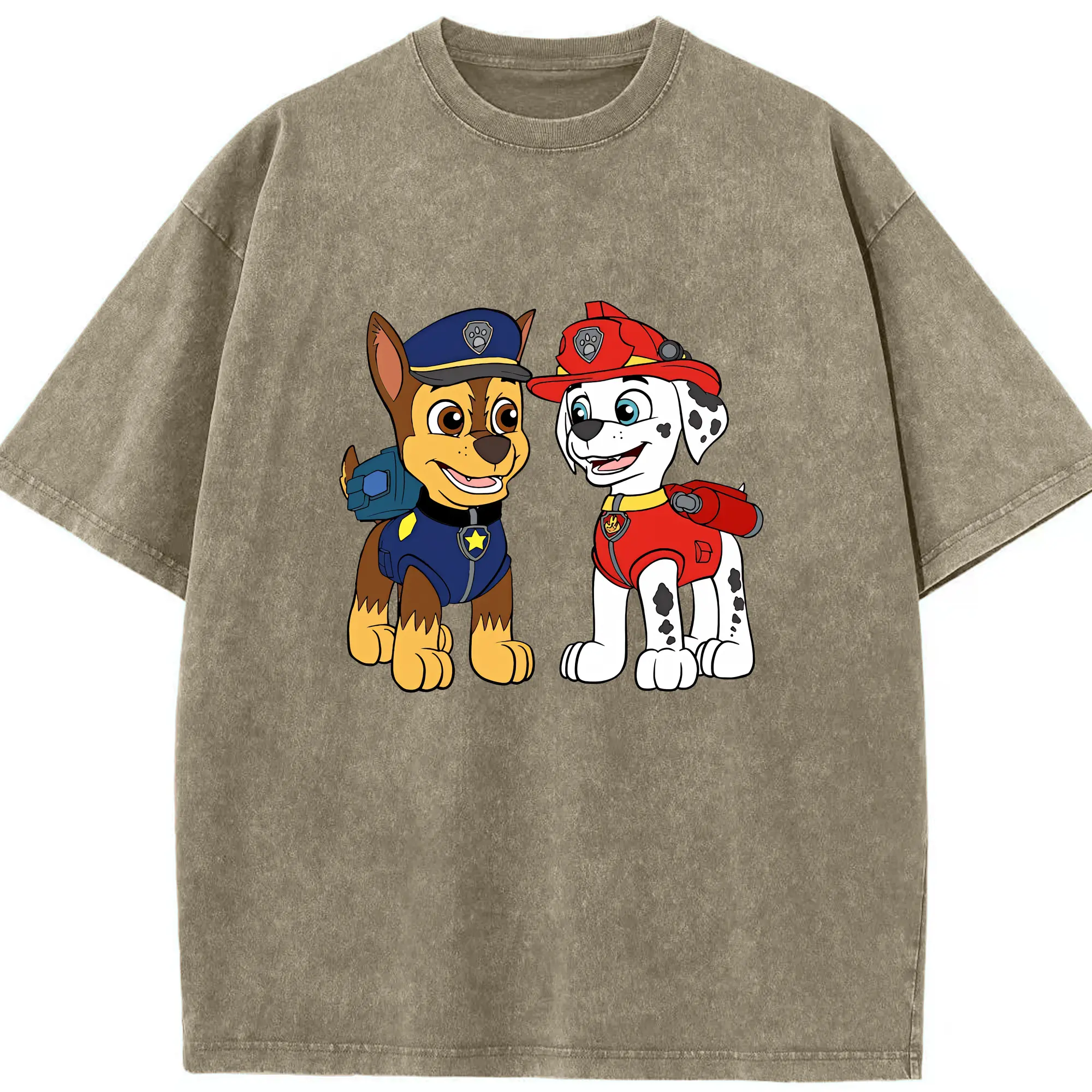 パウ・パトロール グッズ マーシャル - 綿100% ヴィンテージ風 半袖Tシャツ ・ 背面プリント ・ 柔らか肌触り ・ 通気性 快適 ・ スポーツ カジュアル 外出用