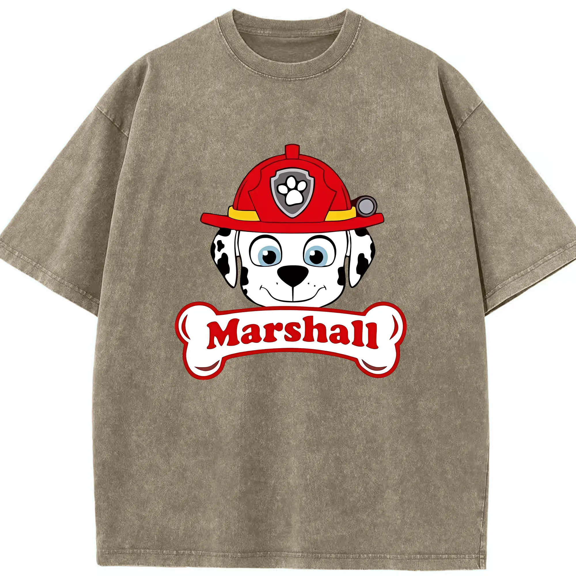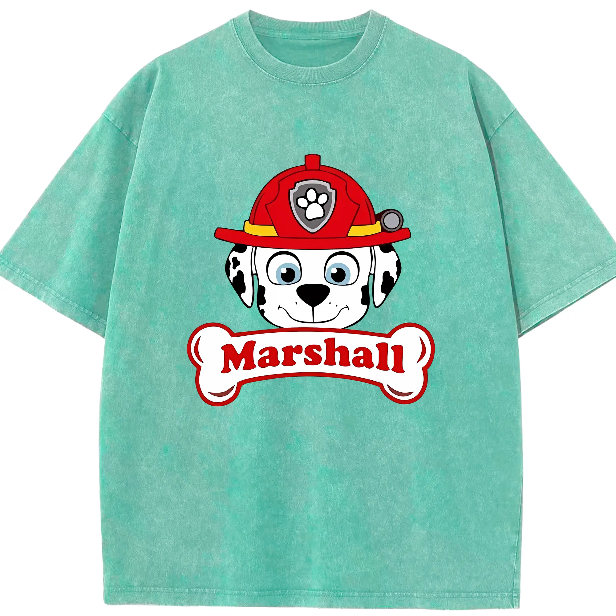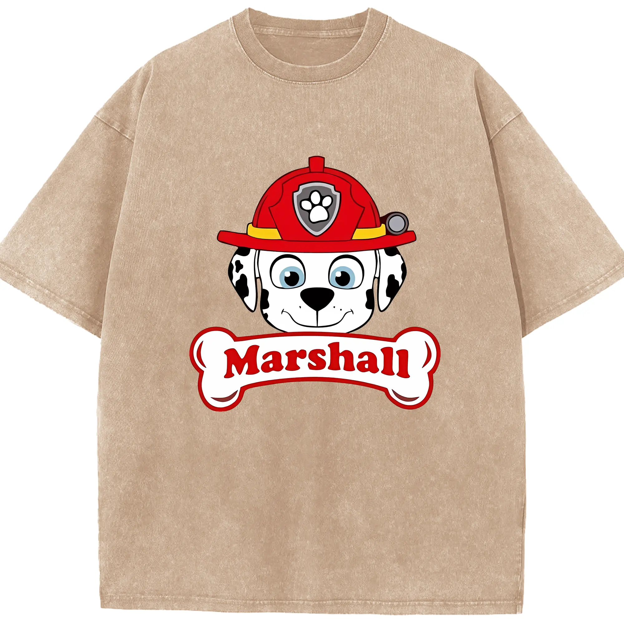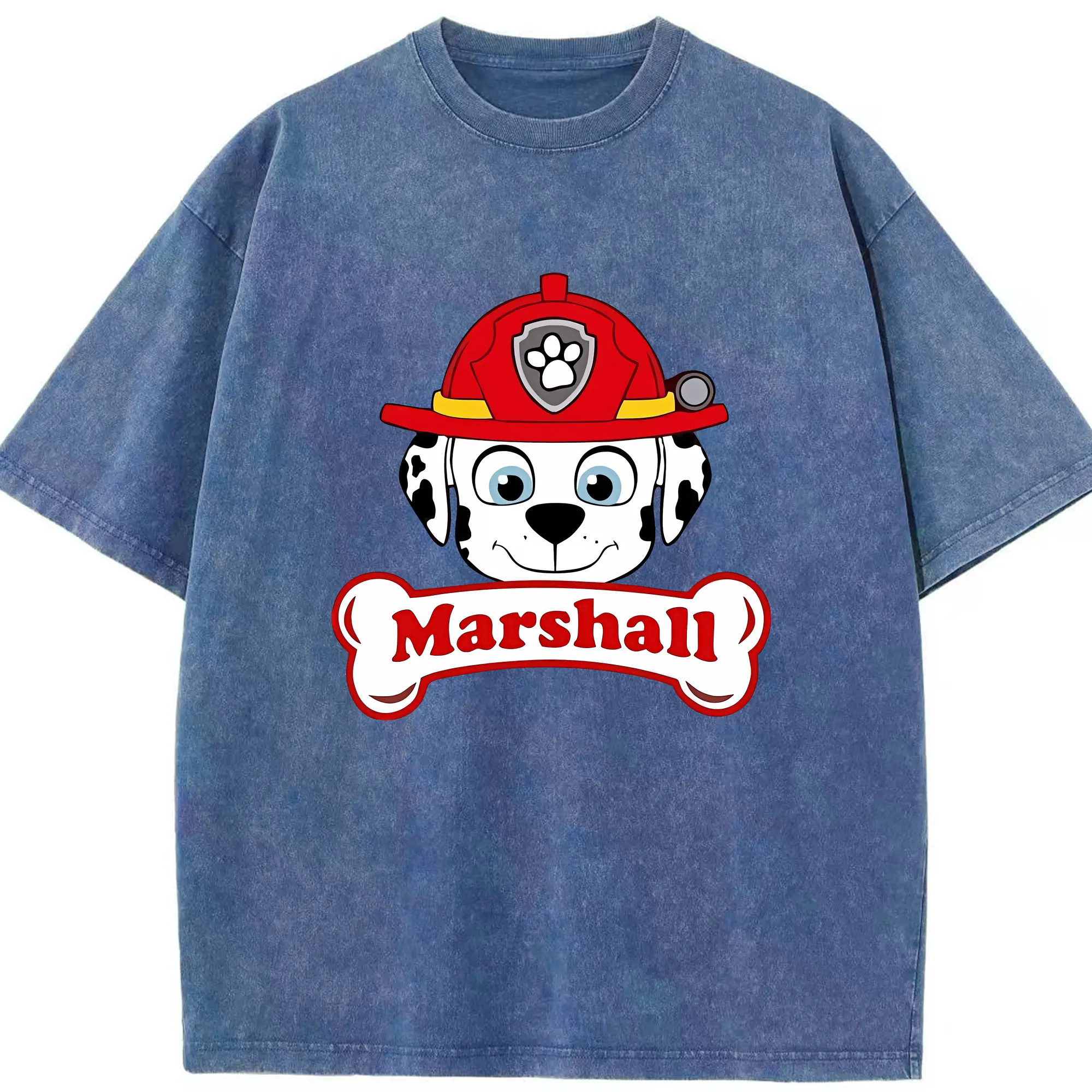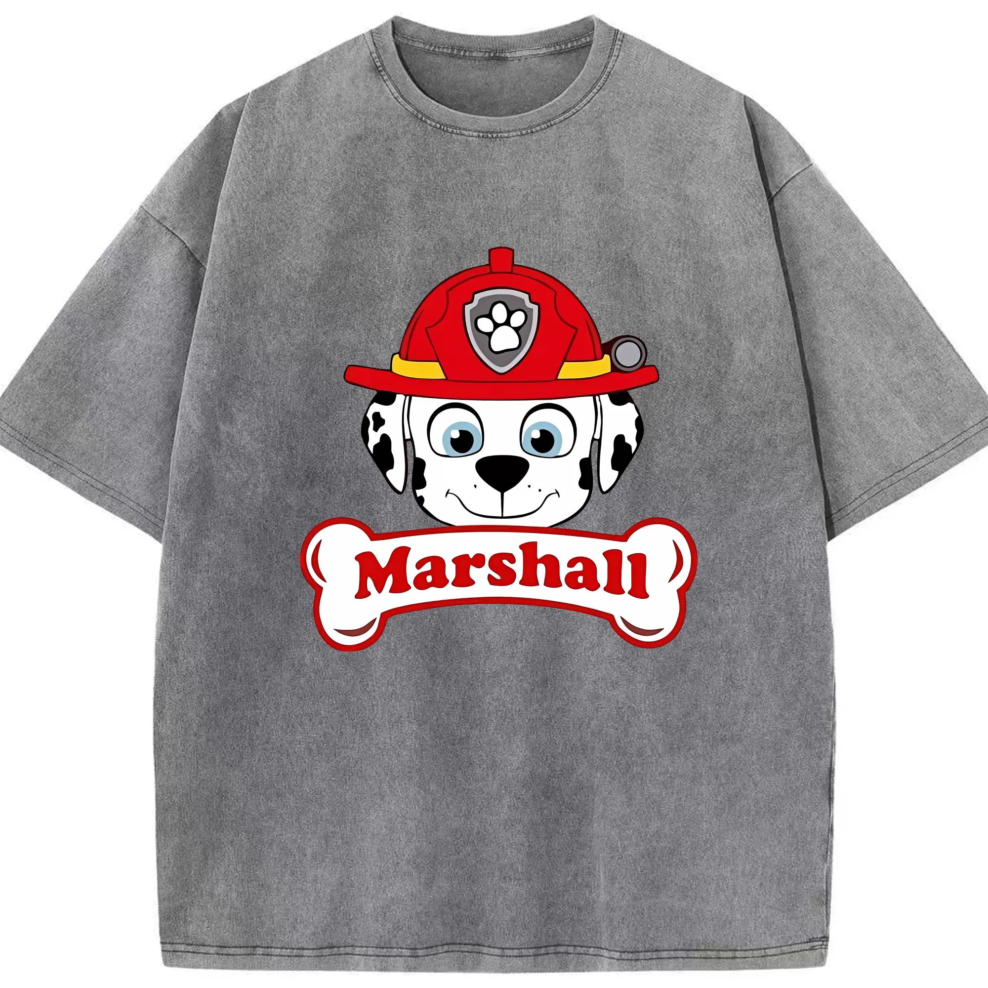 パウ・パトロール グッズ マーシャル - 綿100% ヴィンテージ風 半袖Tシャツ ・ 背面プリント ・ 柔らか肌触り ・ 通気性 快適 ・ スポーツ カジュアル 外出用