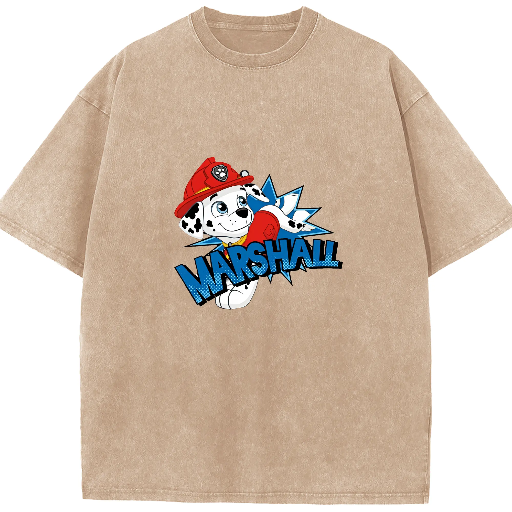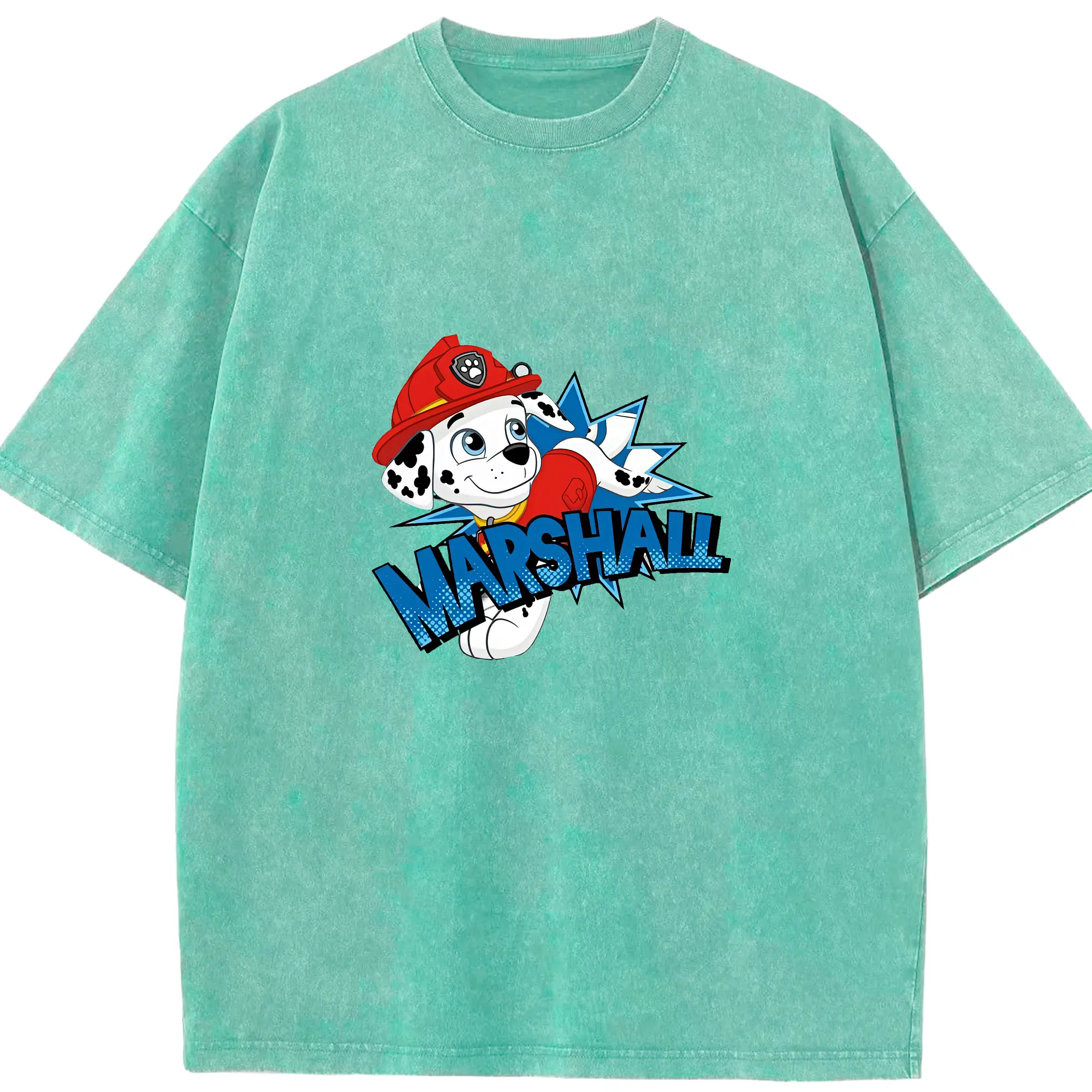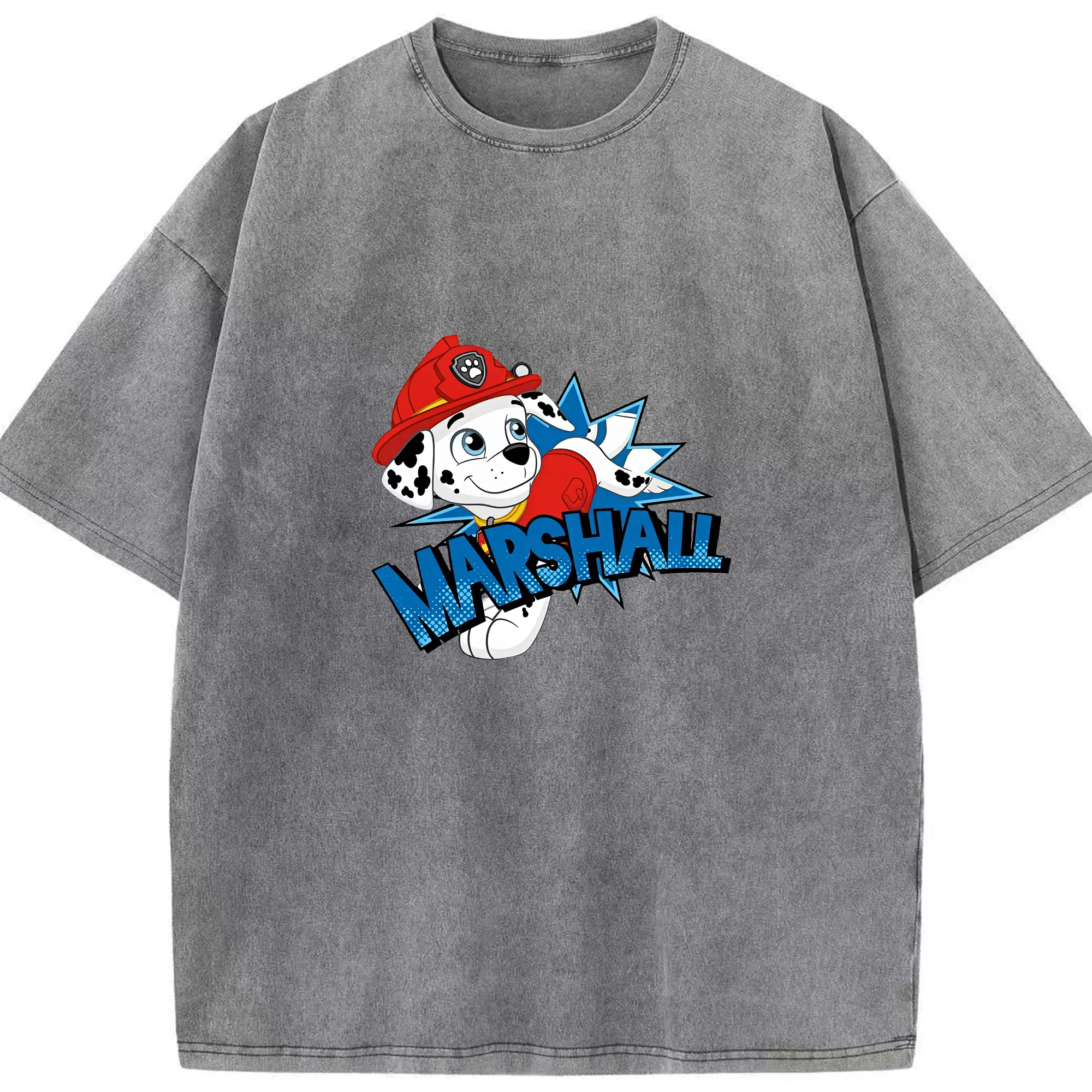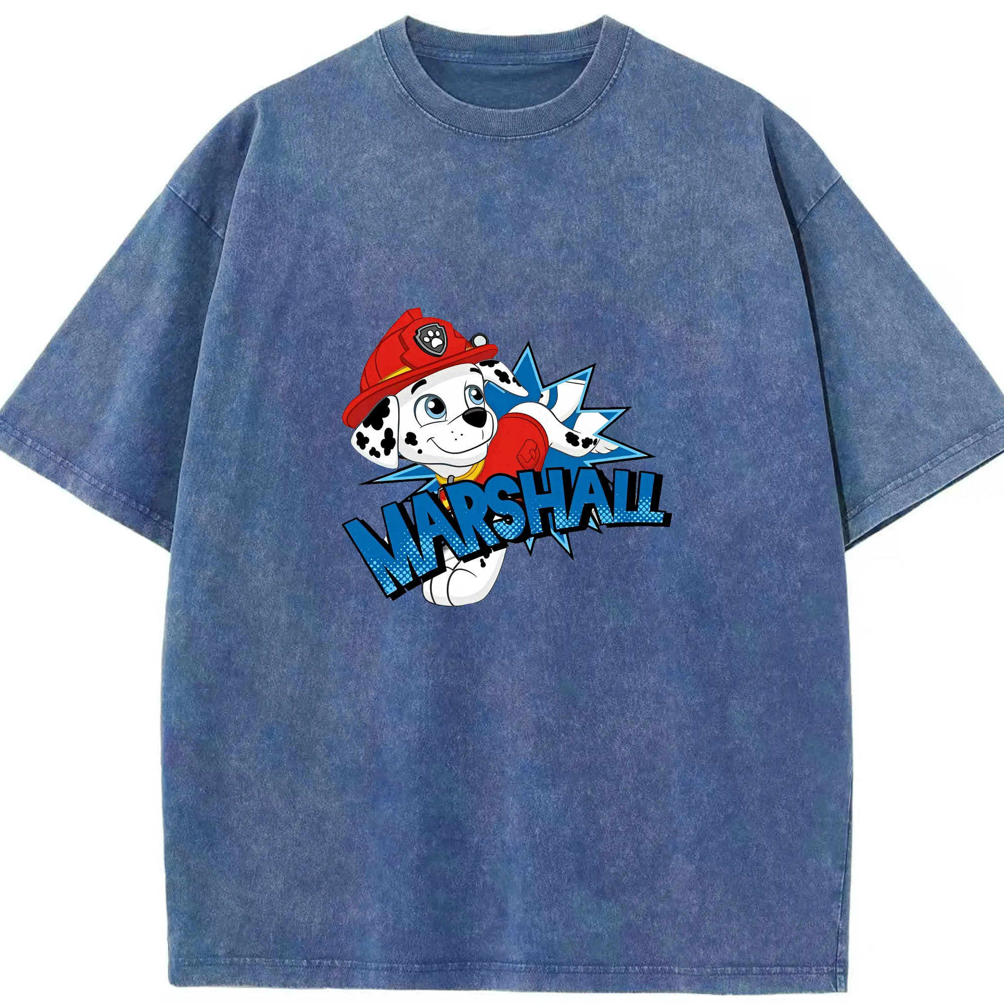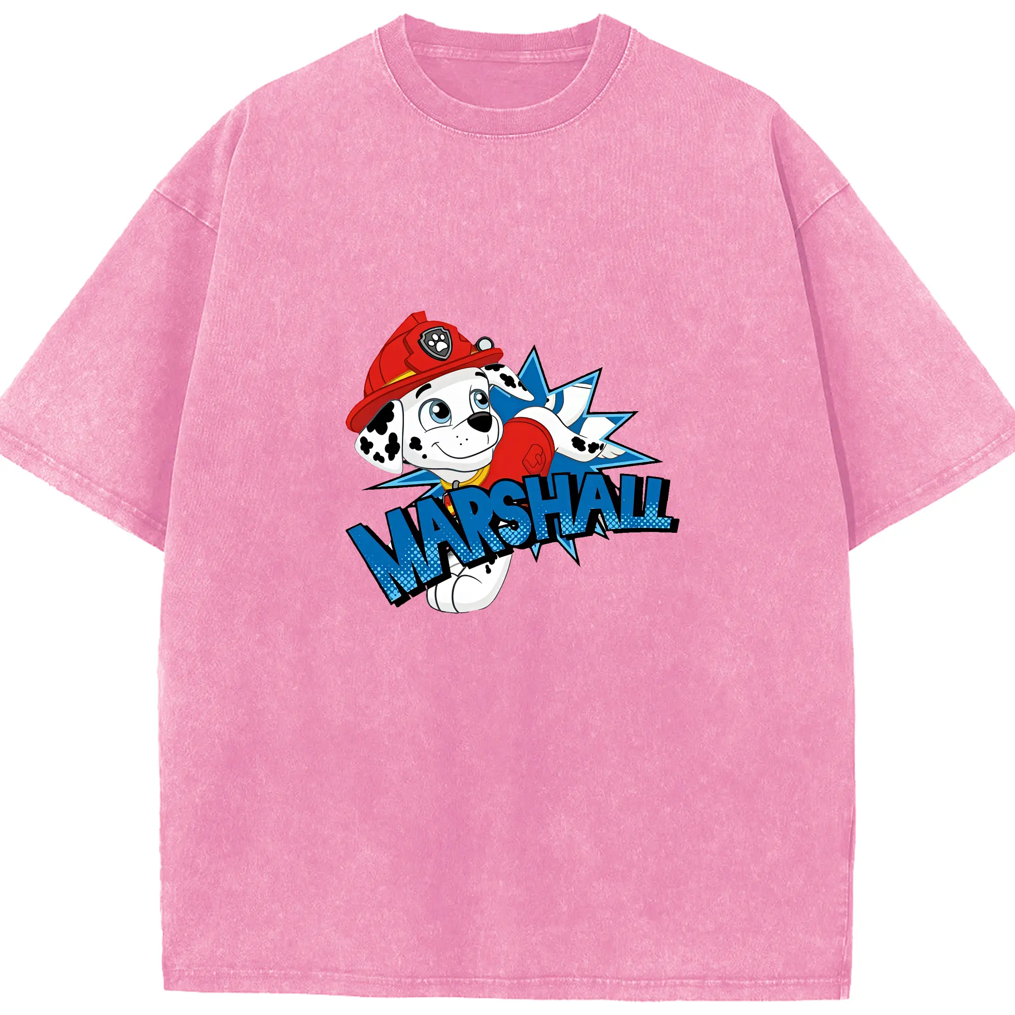 パウ・パトロール グッズ マーシャル - 綿100% ヴィンテージ風 半袖Tシャツ ・ 背面プリント ・ 柔らか肌触り ・ 通気性 快適 ・ スポーツ カジュアル 外出用