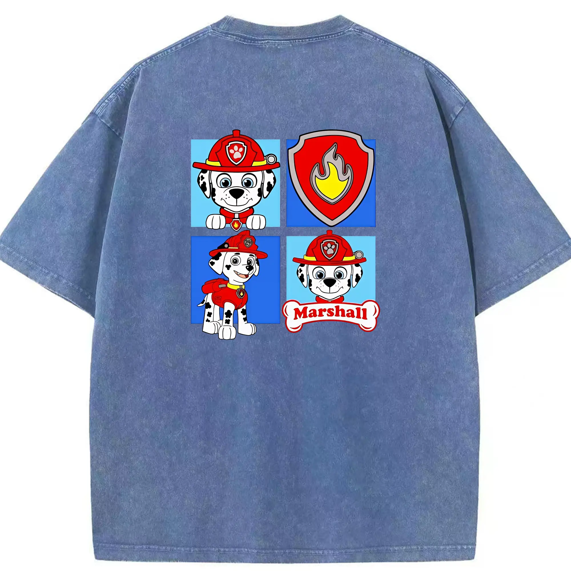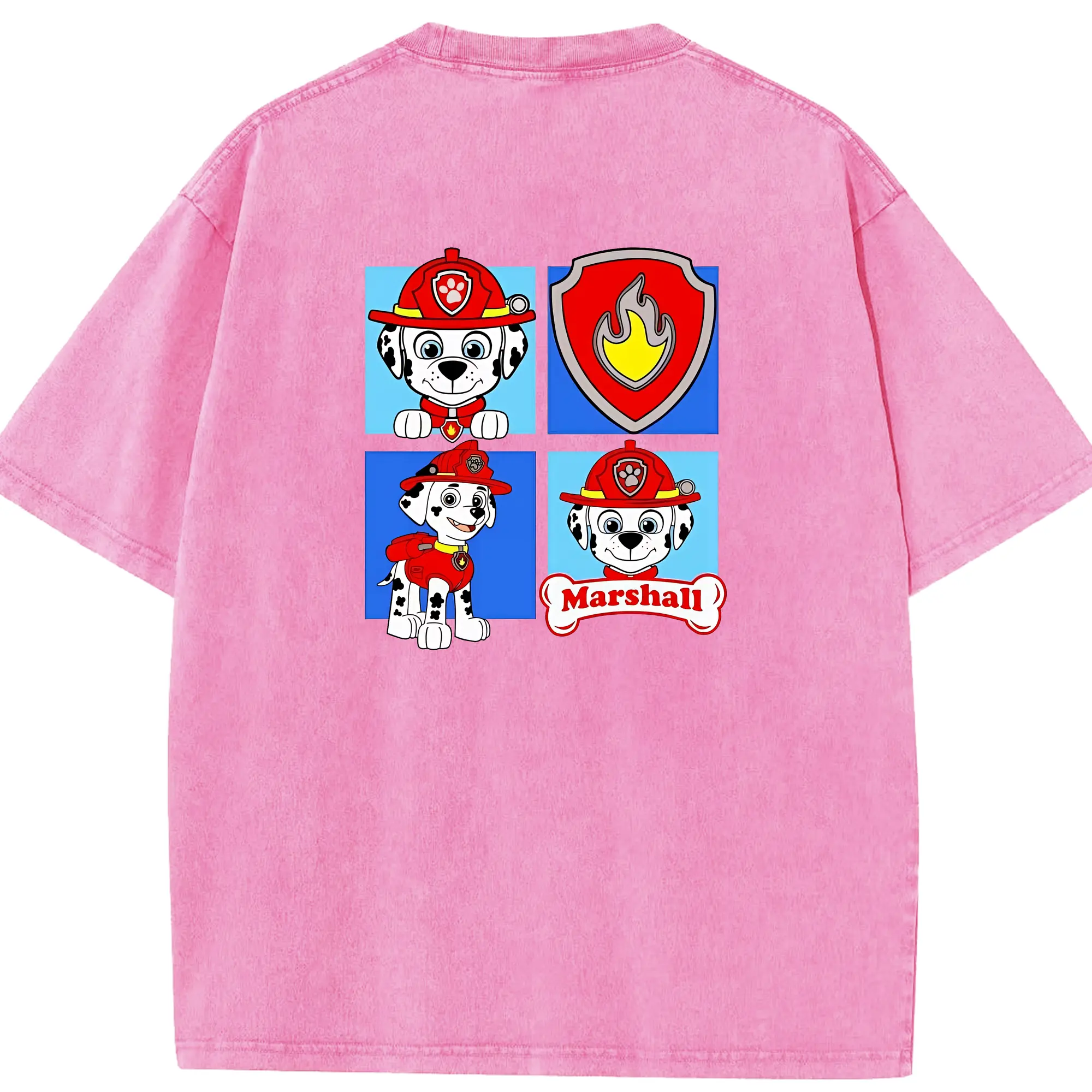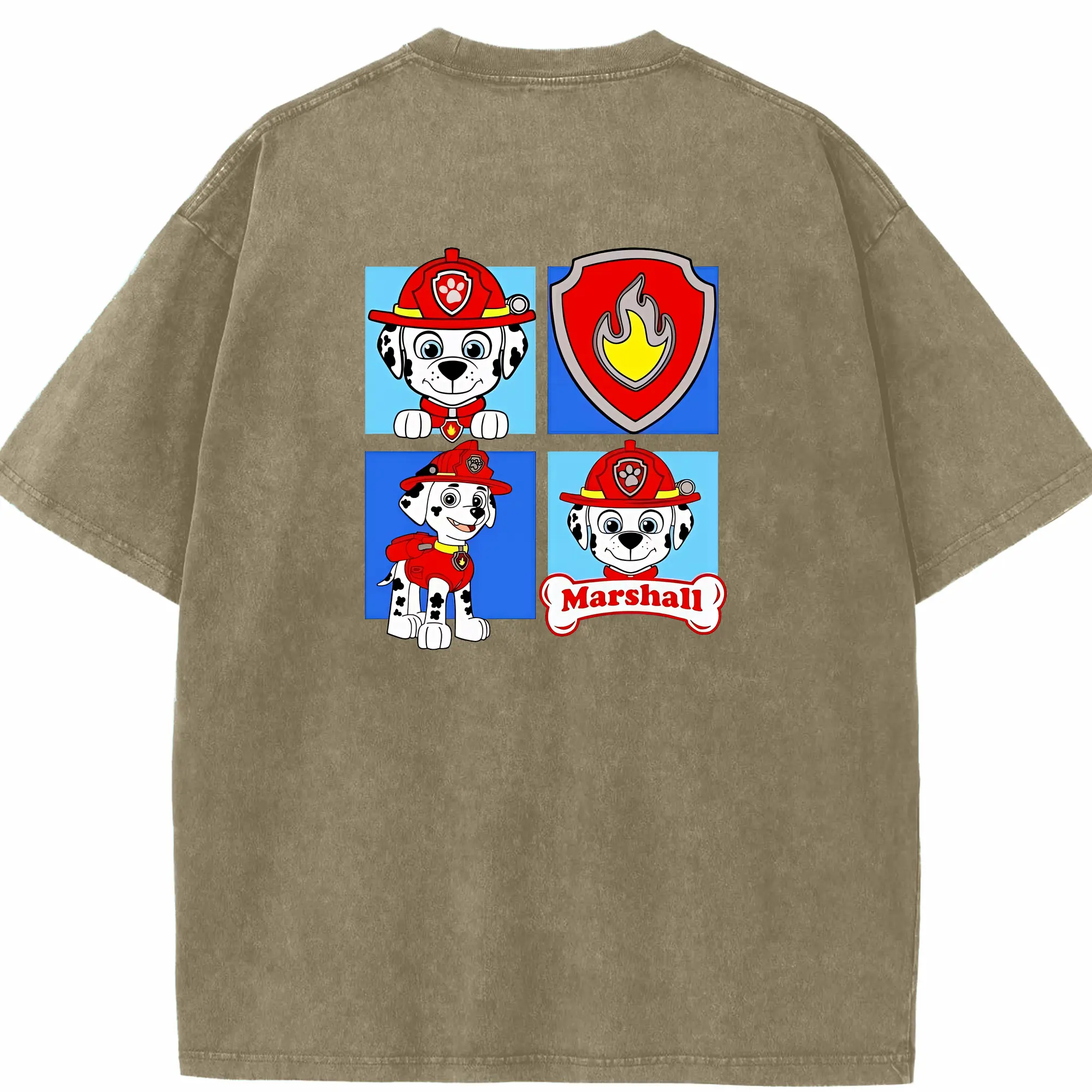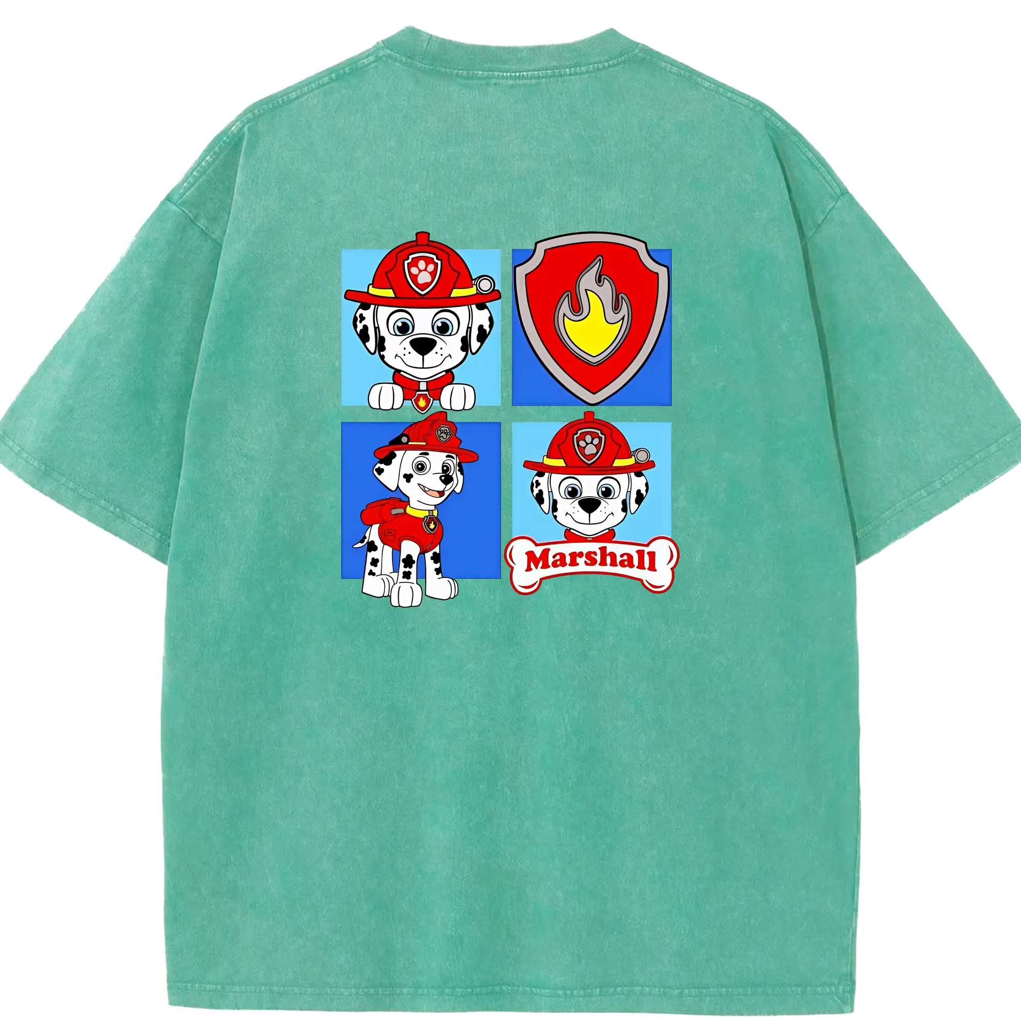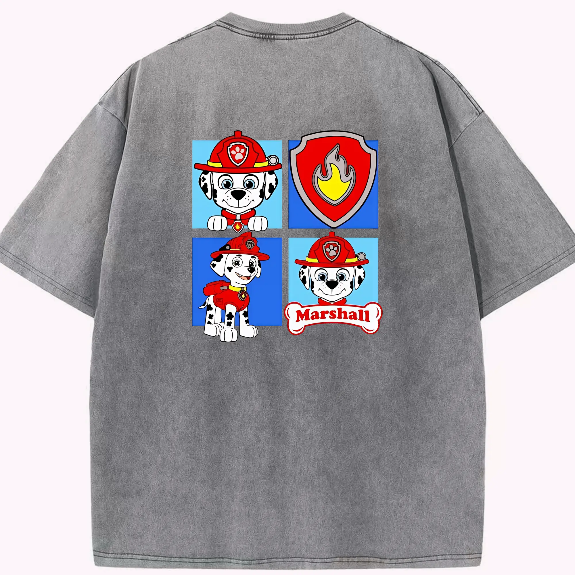 パウ・パトロール グッズ マーシャル - 綿100% ヴィンテージ風 半袖Tシャツ ・ フロントプリント ・ 柔らか肌触り ・ 通気性 快適 ・ スポーツ カジュアル 外出用