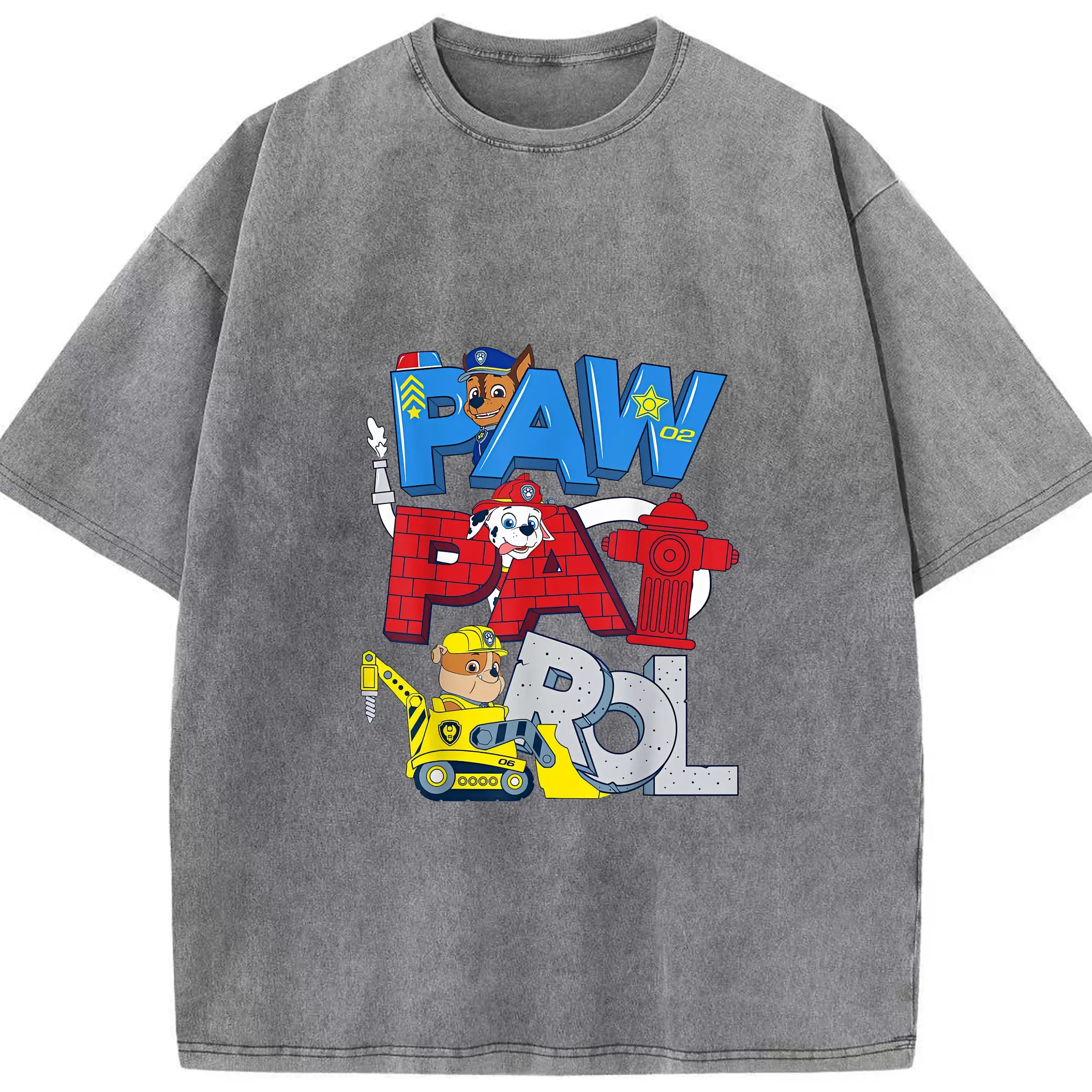パウ・パトロール グッズ ラブル - 綿100% ヴィンテージ風 半袖Tシャツ ・ 背面プリント ・ 柔らか肌触り ・ 通気性 快適 ・ スポーツ カジュアル 外出用