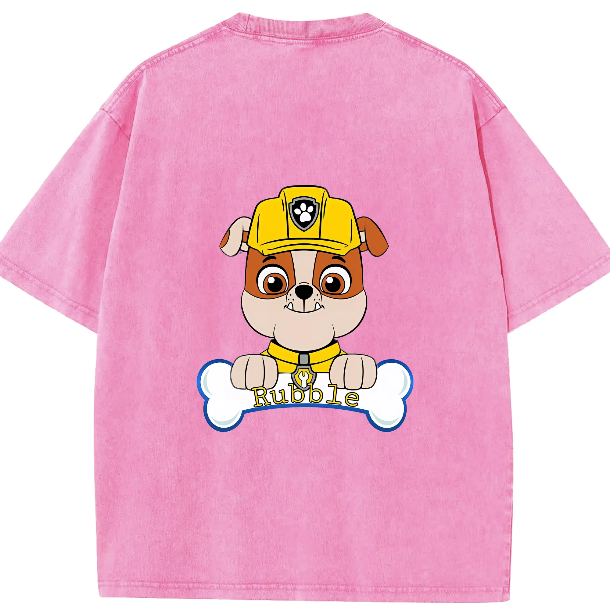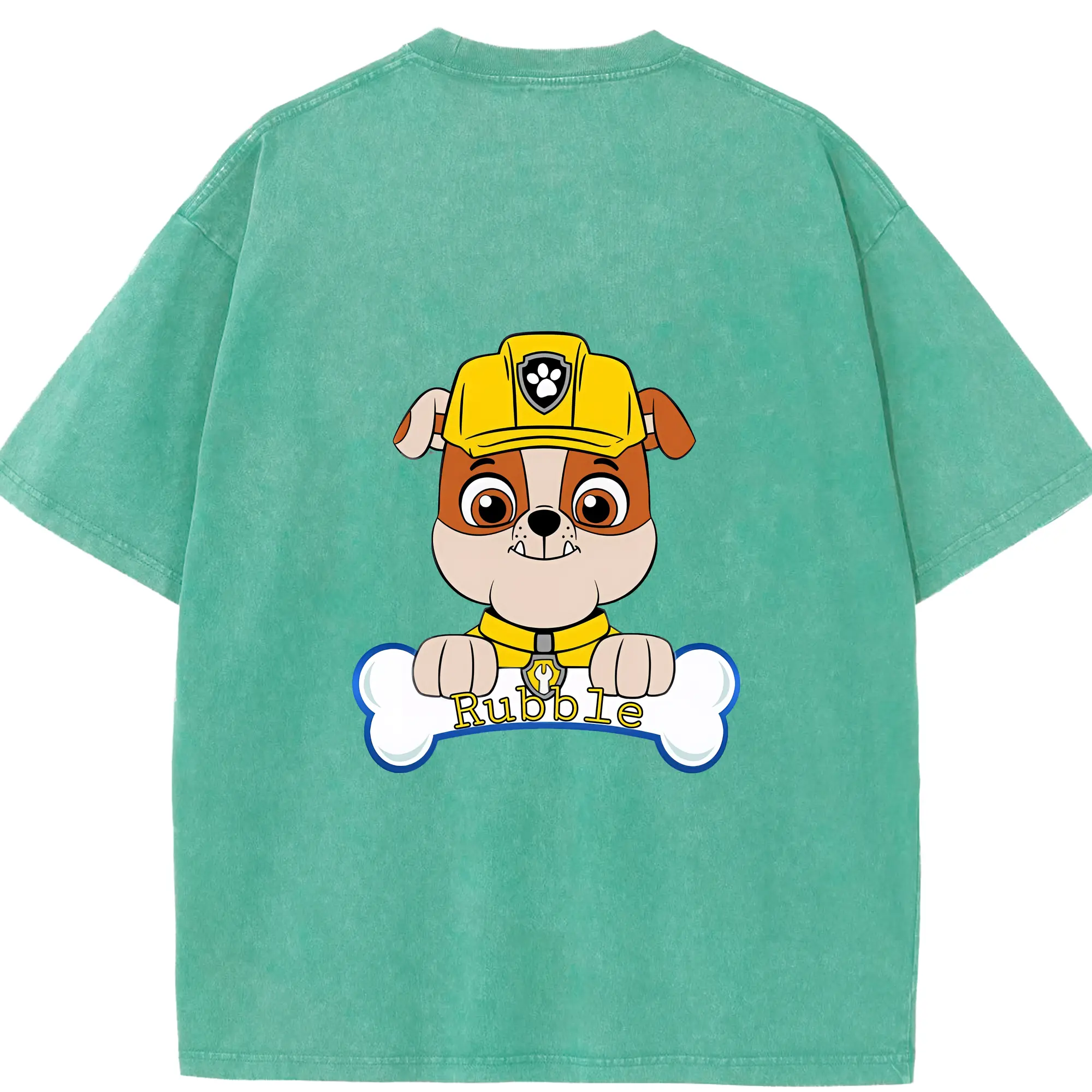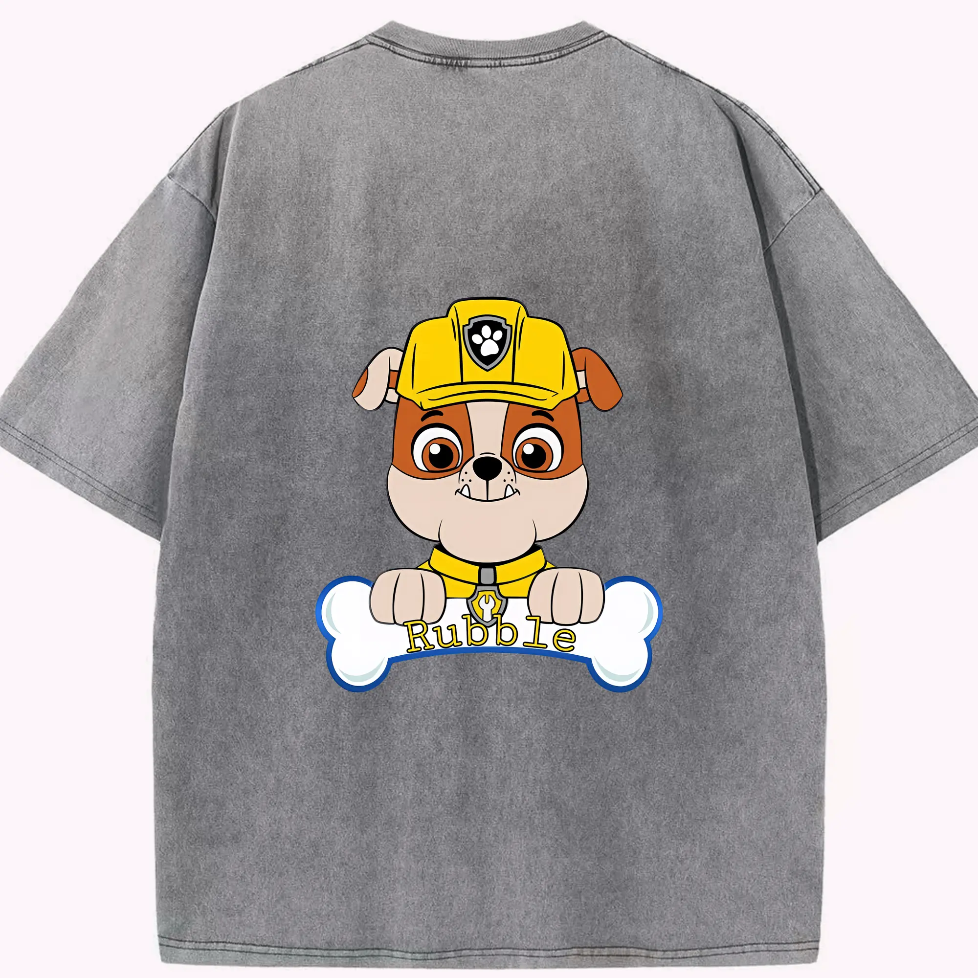 パウ・パトロール グッズ ライダー - 綿100% ヴィンテージ風 半袖Tシャツ ・ 背面プリント ・ 柔らか肌触り ・ 通気性 快適 ・ スポーツ カジュアル 外出用