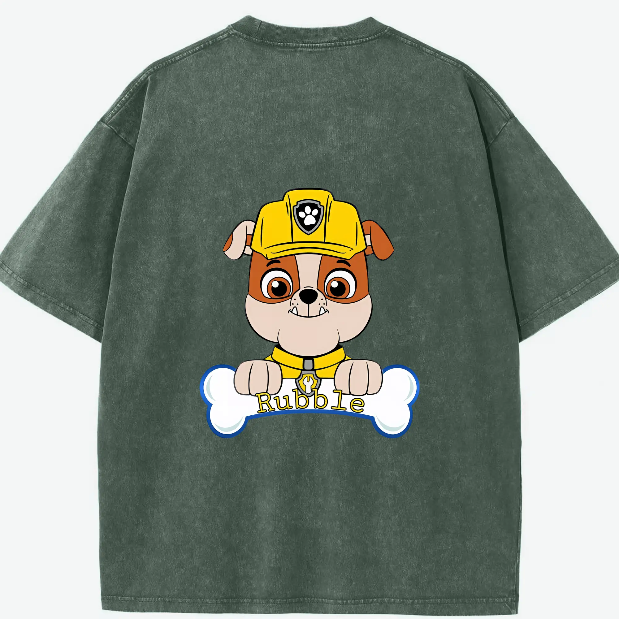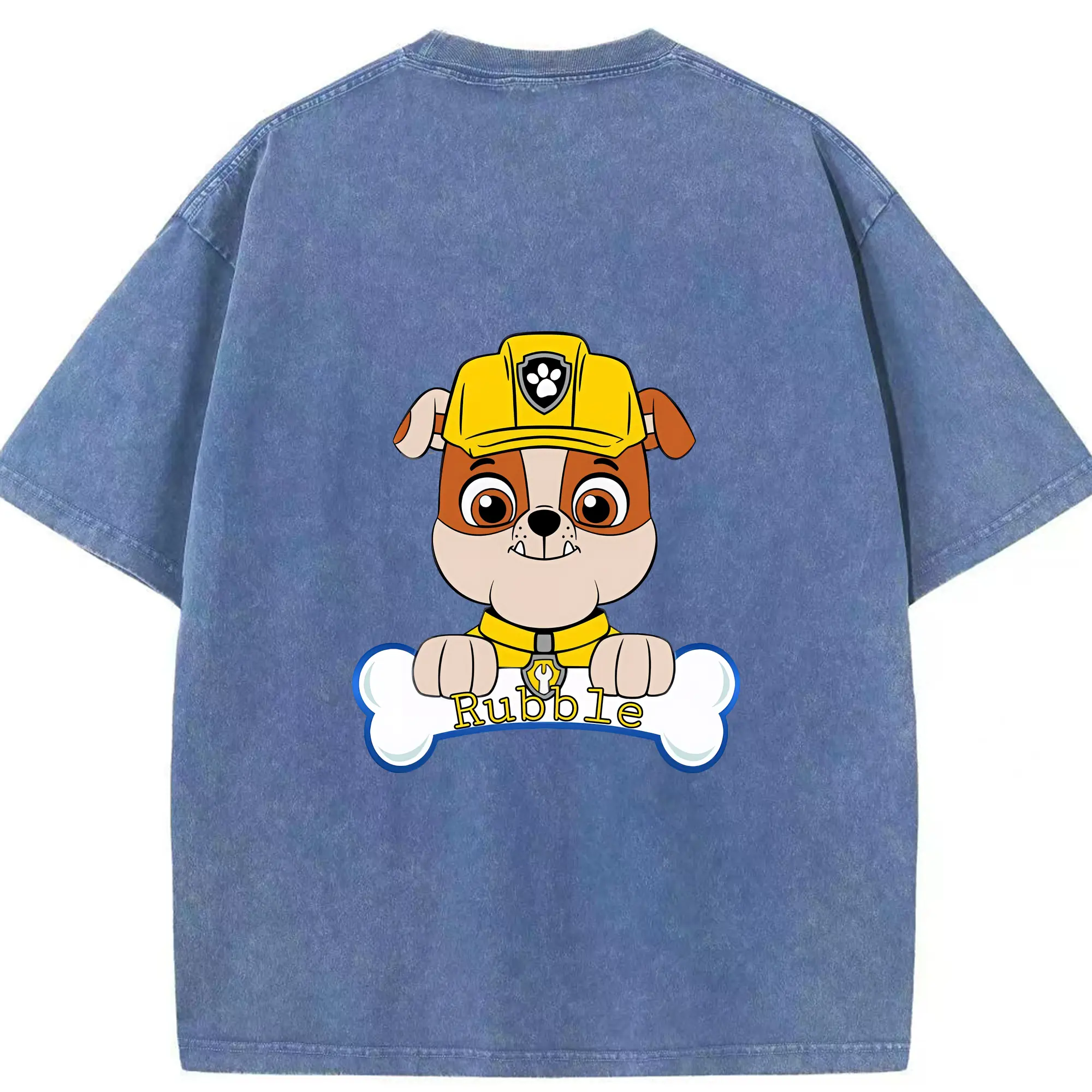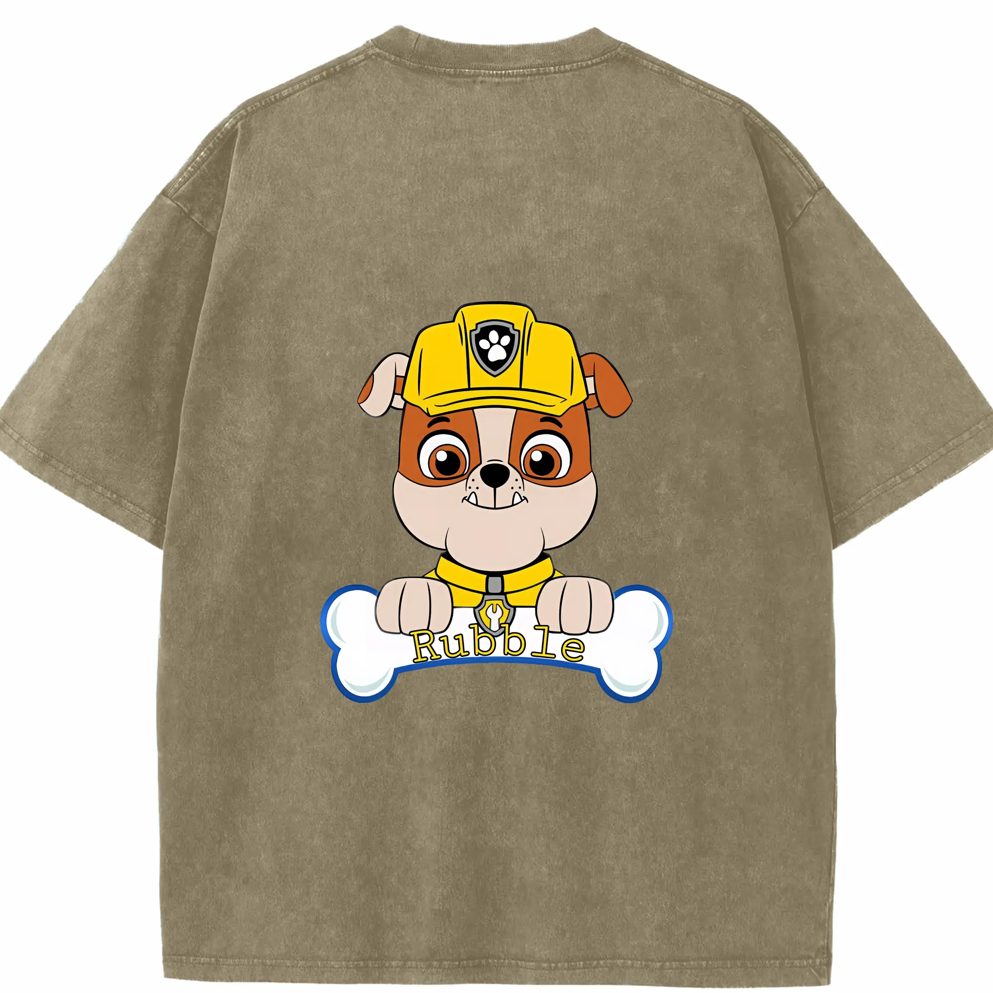 パウ・パトロール グッズ ライダー - 綿100% ヴィンテージ風 半袖Tシャツ ・ 背面プリント ・ 柔らか肌触り ・ 通気性 快適 ・ スポーツ カジュアル 外出用