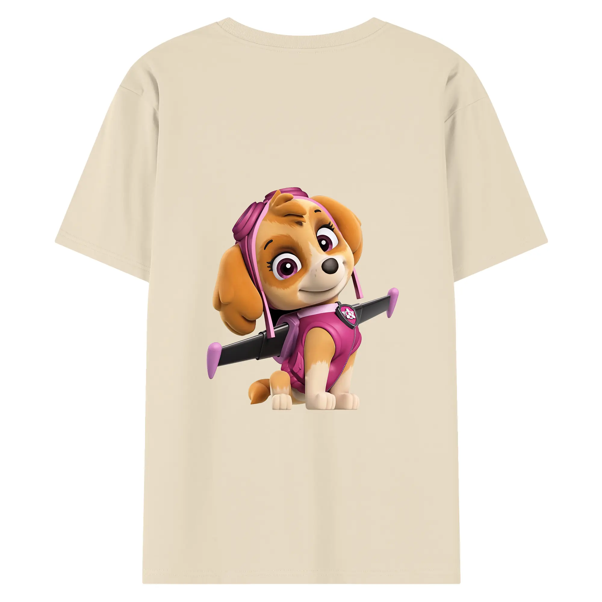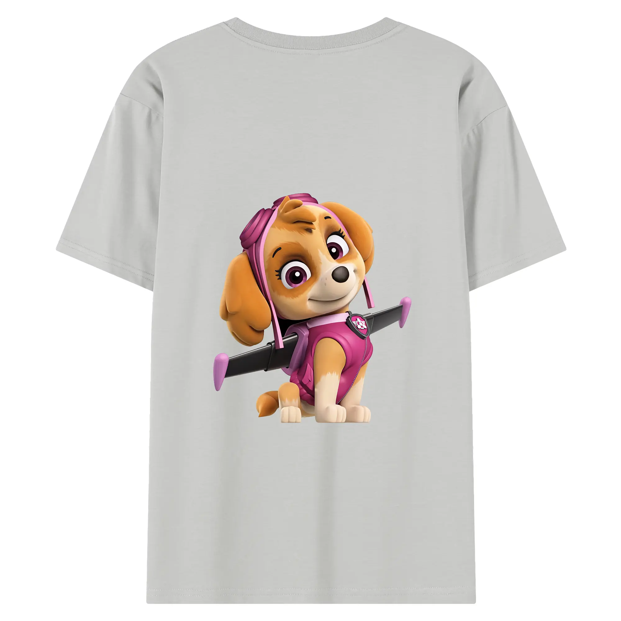 パウ・パトロール グッズ,スカイ - 綿100% ヴィンテージ風 半袖Tシャツ ・ 背面プリント ・ 柔らか肌触り ・ 通気性 快適 ・ スポーツ カジュアル 外出用